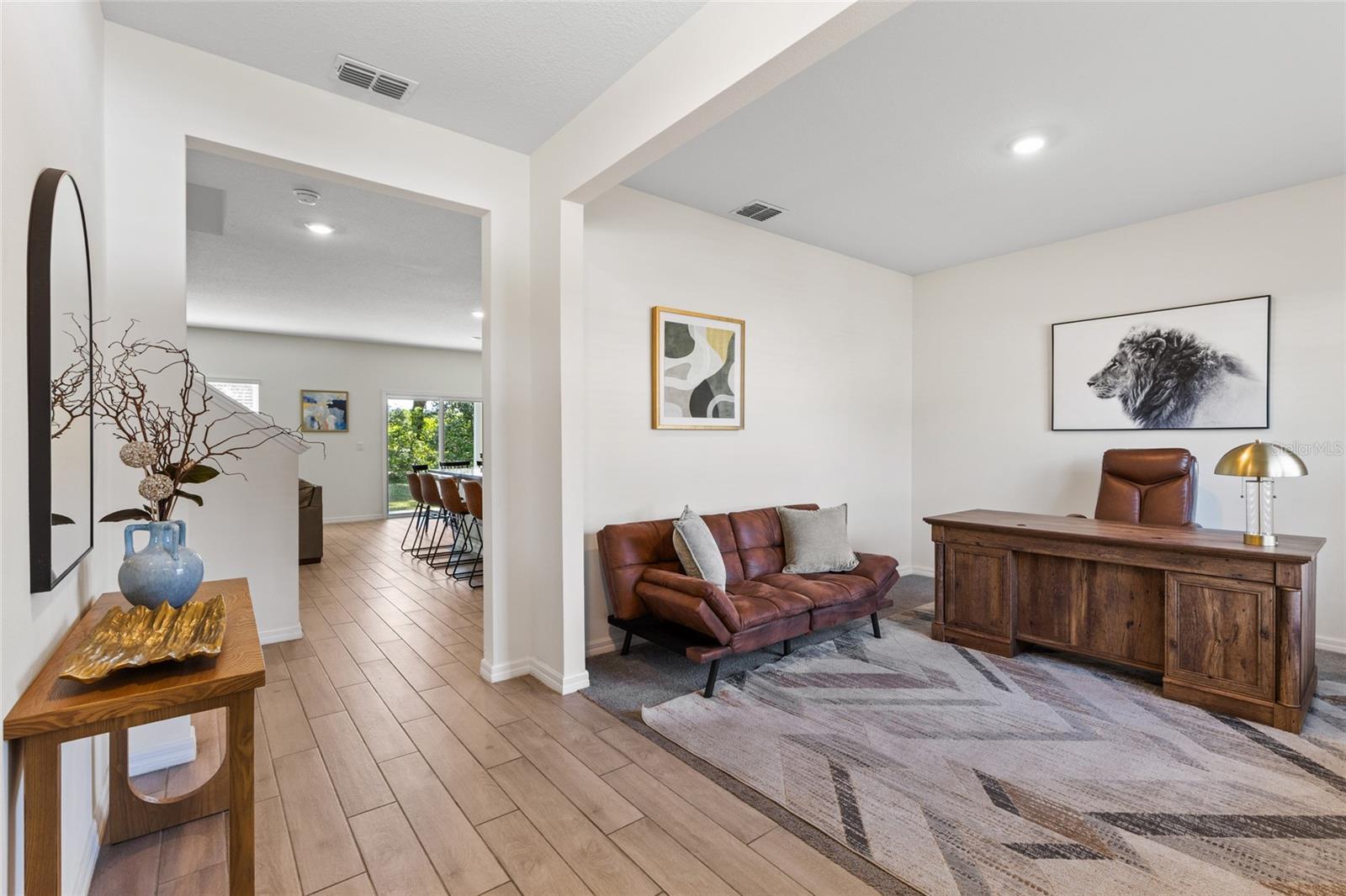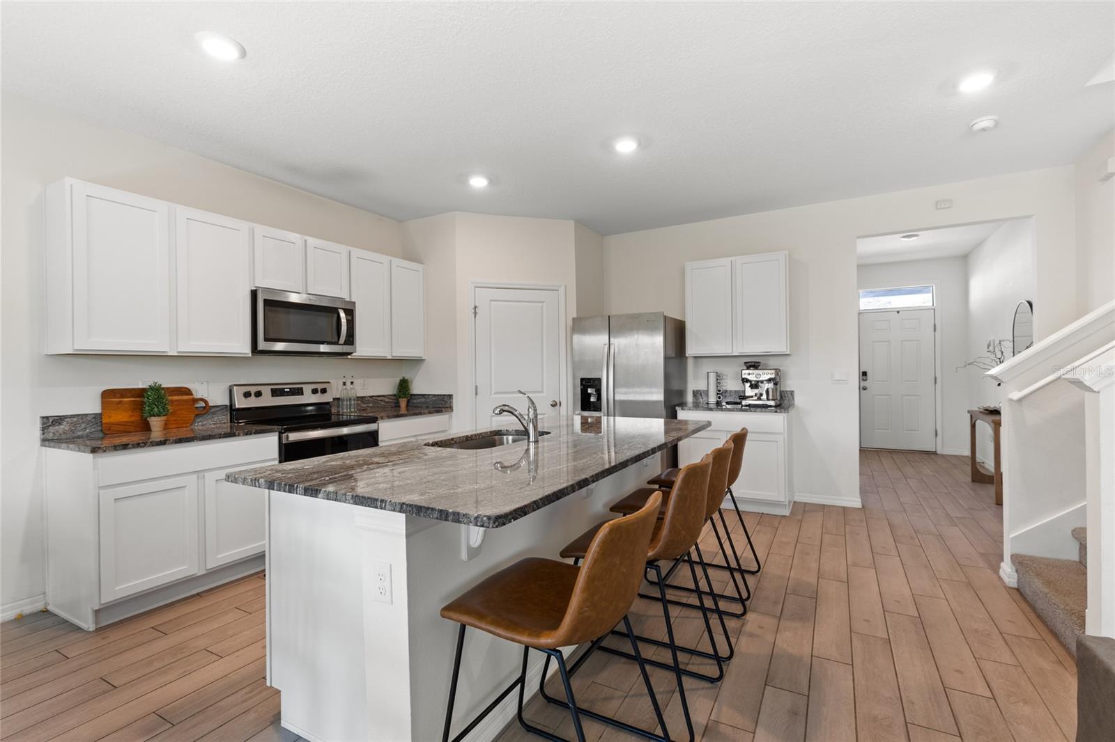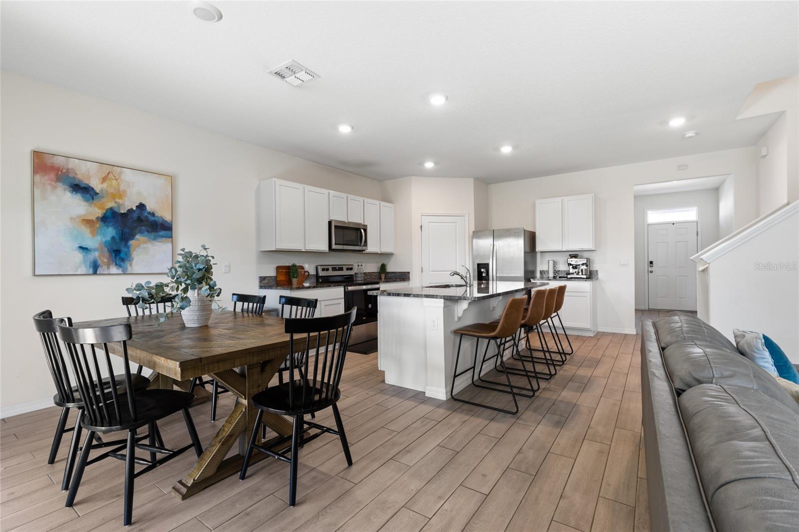 Bem -vindo à subdivisão Tara Esmeralda! Esta casa excepcional de cinco quartos e três banheiros, além de dois espaços flexíveis para o escritório em casa, a segunda sala de estar ou sala de jogos, construída em dezembro de 2023, está pronta e situada em um dos lotes mais desejáveis da comunidade. Oferecendo privacidade incomparável, a propriedade é delimitada por um lago de retenção sereno ao norte e uma exuberante área de conservação ao sul, sem vizinhos de ambos os lados. Convenientemente localizado na área de Jonesville, esta casa fica a menos de 5 minutos do incrível Jonesville Park, a menos de 6 minutos da vibrante cidade de Tioga e a menos de 1,6 km da Steeplechase, onde você encontrará um Publix, lojas e restaurantes. A propriedade possui uma planta baixa de conceito aberto com espaços flexíveis, uma ilha de cozinha central com bancadas de quartzo e utensílios de aço inoxidável. A espaçosa suíte primária no andar de cima inclui dois armários e um luxuoso banheiro privativo com vaidade dupla de quartzo. Quartos adicionais oferecem opções versáteis para escritórios ou hobbies. Um sistema doméstico inteligente de última geração garante conveniência e conectividade modernas. Ao ar livre, o pátio oferece um retiro pacífico cercado pela beleza da natureza. Não perca a chance de possuir essa casa pronta para casa em Tara Esmeralda. Agende um passeio hoje e experimente a tranquilidade desta propriedade notável!