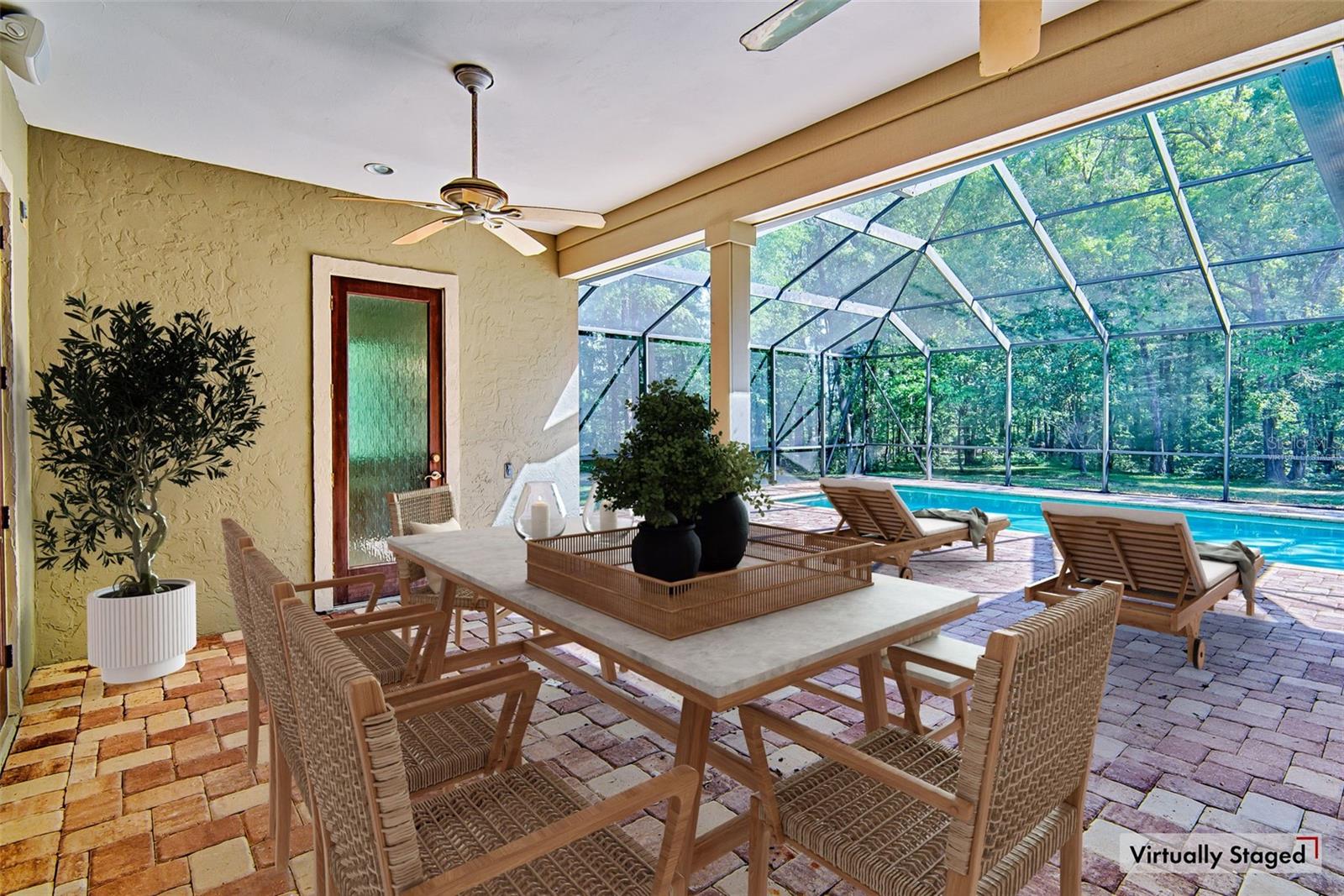 Uma ou mais fotos foram virtualmente encenadas. Casa com piscina de 4 quartos e 3,5 banheiros com casa de hóspedes! As oportunidades não aparecem com frequência para estar em uma das comunidades mais bonitas da área de Gainesville. The Trails é um condomínio fechado que aceita cavalos, com quilômetros de trilhas para passeios e caminhadas através de copas de carvalhos e madeiras nobres. Privacidade e natureza abundam nesta propriedade que está localizada em um beco sem saída e situada em 5 hectares arborizados. A casa principal de 3 quartos e 2,5 banheiros tem detalhes em estuque, pedra e tijolo. Suba as escadas e você será recebido por portas duplas de madeira personalizadas de 2,5 metros que se abrem para uma área de jantar com belas vistas da piscina e da varanda. Um espaçoso bar adjacente é perfeito para exibir seus bourbons e uísques favoritos ou uma estação de café expresso. O chef que há em você desfrutará da espaçosa cozinha gourmet equipada com eletrodomésticos Thermador, fogão a gás, exaustor de aço inoxidável, balcões de granito, despensa e armários de bordo personalizados. Divirta amigos e familiares com esta cozinha aberta e grande sala que possui uma ilha grande, balcão de cozinha, teto abobadado e armários embutidos de madeira. Saia para a varanda e aprecie as vistas pitorescas e os sons da natureza. Fuja para a suíte principal que tem um quarto separado, no final do corredor há um closet personalizado e no final está o banheiro principal com pias duplas, box amplo e banheira de jardim. A planta dividida permite privacidade e oferece 2 quartos espaçosos com tetos altos, um banheiro extra no meio com box amplo e vaso sanitário. A casa de hóspedes com 1 quarto e 1 banheiro possui sala de estar, cozinha compacta e garagem para 1 carro, perfeita para amigos, família ou escritório/estúdio. As características adicionais incluem novo telhado em 2022, garagem privada pavimentada, cerca perimetral com portão, garagem grande para 2 carros (3 no total), utilidades inferiores com Clay Electric, Well, Septic e Gas. Convenientemente localizado a menos de 10 minutos de Archer Rd., Jonesville Tioga Town Center e da cidade de Newberry. Aproveite a vida tranquila e bela no campo a poucos minutos das comodidades de compras e restaurantes. Fácil deslocamento para a Universidade da Flórida, UF Health, VA Hospital, HCA e I-75. Venha conhecer este imóvel e condomínio único, a oportunidade é agora!