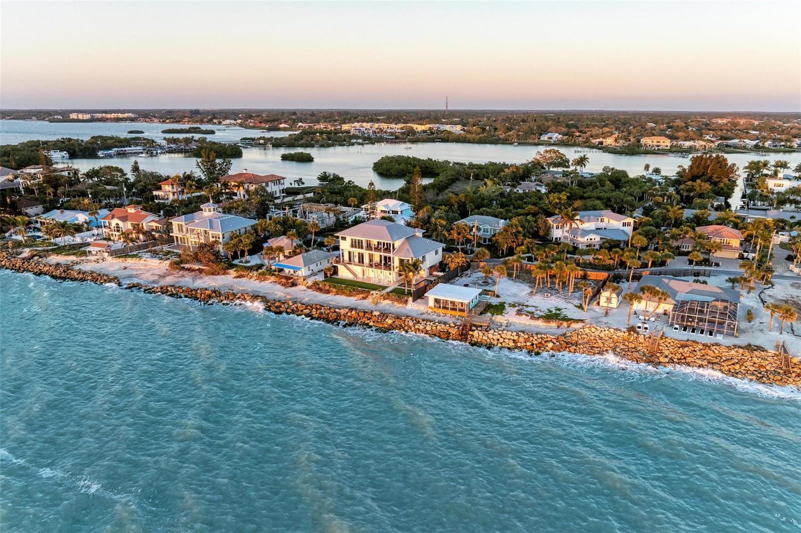 Situada ao longo das margens imaculadas de Casey Key, esta luxuosa residência otimiza a vida costeira no seu melhor. Com vistas panorâmicas deslumbrantes do Golfo do México, esta casa de 4 quartos, 4,5 banheiros e piscina com banheiro completo é uma obra-prima de design arquitetônico e conforto opulento. Ao entrar, os hóspedes são recebidos por um elegante hall de entrada que leva a uma espaçosa área de estar adornada com janelas do chão ao teto e varanda, permitindo que a luz natural caia em cascata por todo o espaço e oferecendo vistas ininterruptas das águas azul-turquesa. O layout de conceito aberto conecta perfeitamente a sala de estar, a área de jantar e a cozinha gourmet, criando um ambiente ideal para entretenimento ou simplesmente desfrutar de noites tranquilas com seus entes queridos. A cozinha é o sonho de qualquer chef, com eletrodomésticos de última geração, armários personalizados e uma ilha central com assentos de bar. Ao lado da cozinha está uma área de jantar inclusiva, perfeita para desfrutar do café da manhã enquanto aprecia as vistas deslumbrantes ou recebe convidados para jantares. Para maior comodidade, um elevador proporciona fácil acesso a todos os níveis da casa, garantindo acessibilidade para moradores e hóspedes. A suíte master, localizada no andar principal, é um santuário por si só, completa com um banheiro tipo spa com box amplo, pia dupla e closet. Com janelas panorâmicas do chão ao teto, é fácil acordar com as vistas serenas com persianas remotas para relaxamento e descanso ideais. No segundo andar, você descobrirá três suítes adicionais, cada uma oferecendo refúgios serenos. Uma suíte pode ser uma segunda suíte master com banheira de imersão, pia dupla, box amplo e closet que proporcionam uma fuga privada das amplas vistas do litoral. Adjacente a estes quartos, encontra-se uma sala familiar, ideal para acolher reuniões ou relaxar com conforto. Saia para a ampla varanda e mergulhe na melodia suave das ondas quebrando na costa, melhorando a atmosfera de relaxamento e tranquilidade. O amplo espaço ao ar livre é um paraíso para o entretenimento, com uma piscina aquecida de água salgada e spa com vista para o Golfo, um espaçoso deck para banhos de sol e um putting green para os entusiastas do golfe. A cozinha externa na área da piscina e no nível principal facilita o entretenimento em ambas as áreas observando o premiado pôr do sol de Casey Key. A sala da piscina com lava-louças, pia, máquina de fazer gelo e geladeira, além de banheiro completo, faz com que a diversão na piscina ou na praia seja facilmente limpa e não rastreada pela casa principal. Folha completa de recursos anexada, pois as atualizações são infinitas! Com sua localização incomparável, comodidades luxuosas e vistas incomparáveis, esta residência em Casey Key oferece uma rara oportunidade de experimentar a vida costeira no seu melhor. Quer seja como residência a tempo inteiro ou como retiro de férias, esta magnífica casa irá certamente superar as expectativas dos compradores mais exigentes.