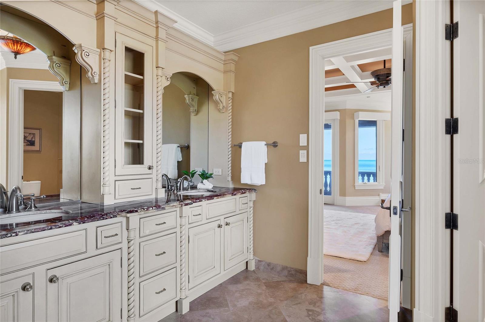 Esta propriedade requintada fica a 27 metros de praia ao longo da imaculada Costa do Golfo da Flórida, no exclusivo bairro de Casey Key. Esta linda mansão apresenta um exterior em estilo espanhol e toques do Velho Mundo no interior com detalhes em ferro, uma grande escadaria e colunas de pedra. Cada teto apresenta um teto em degrau, trey ou caixotões. Lindas janelas do chão ao teto banham as principais áreas de estar com luz natural. A cozinha gourmet possui bancadas atraentes, armários de madeira e eletrodomésticos de última geração. Duas suítes principais com varandas privativas, áreas de estar e banheiros luxuosos são o auge da vida luxuosa. Além do interior espaçoso, o exterior oferece muito espaço para entretenimento. A piscina e o spa são cercados por um belo deck de travertino com churrasqueira a gás e bar nas proximidades. Passeie pela bela calçada das dunas para acessar a praia ou desfrute de uma noite de cinema na sala de mídia. Esta casa deslumbrante combina características elegantes e comodidades modernas para criar o melhor refúgio tropical. O exterior fornece um sistema repelente de mosquitos em torno do perímetro da casa. Facilidade de entrada e saída com calçada circular que leva a um porte-cochere, e garagem lateral para três carros com arrecadação extra para caiaques e canoas para uso no acesso à baía escriturada que acompanha esta casa. Para maior tranquilidade e conforto, esta casa foi construída de acordo com os códigos de furacões em 2008, com todas as janelas e portas de impacto, um sistema completo de água por osmose reversa, gerador de gás industrial de longa duração, tanque de propano de 1.000 galões e um sistema de fossa séptica aeróbica com um campo de drenagem mais recente. Uma grande praia acessível a pé ao norte e ao sul, perto de ótimos restaurantes, uma marina com armazenamento para barcos nas proximidades e apenas uma curta distância de carro do centro de Sarasota fazem desta casa à beira-mar no refúgio tropical isolado e incomparável de Casey Key a propriedade única que você tem. estava esperando.