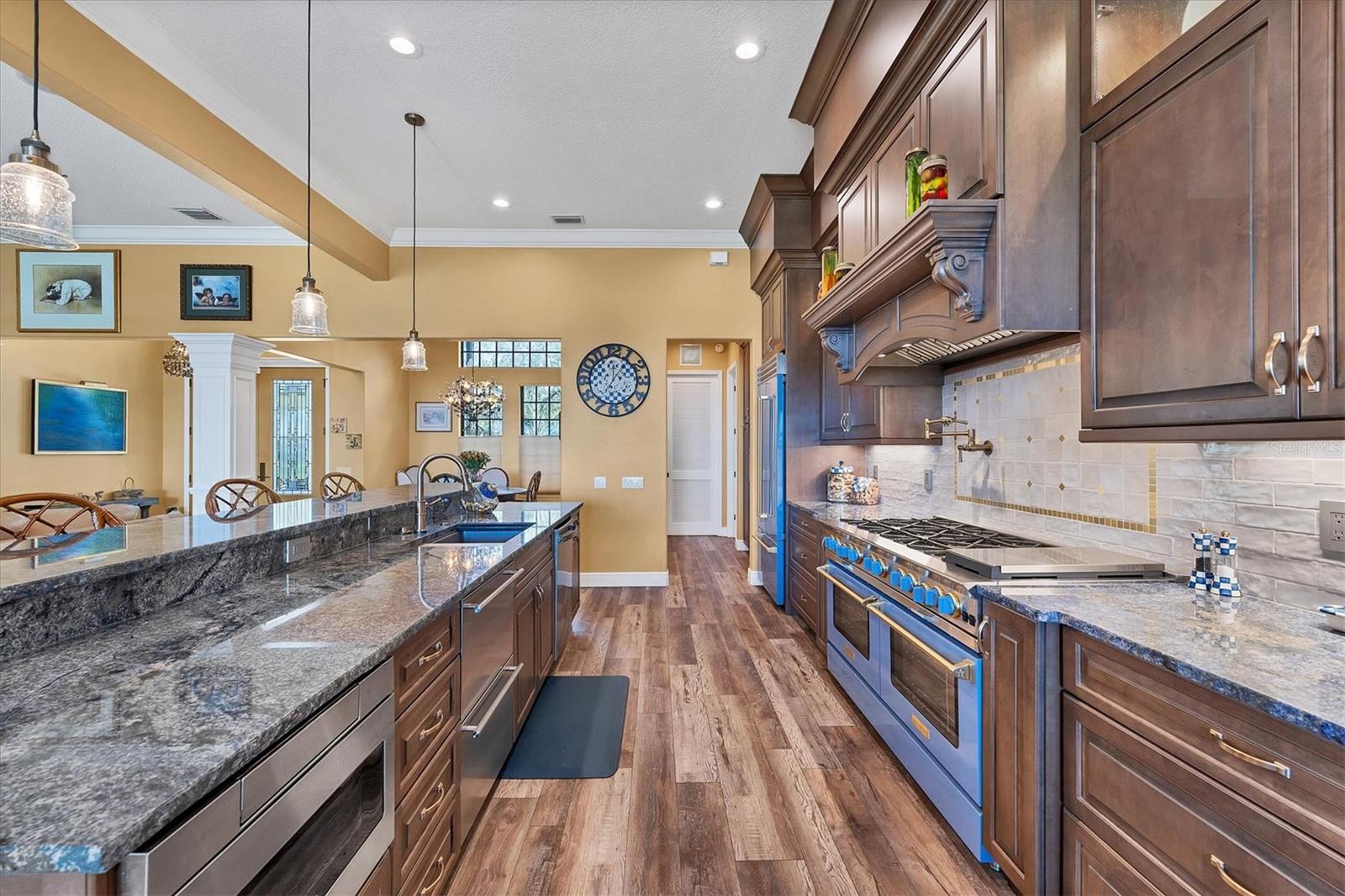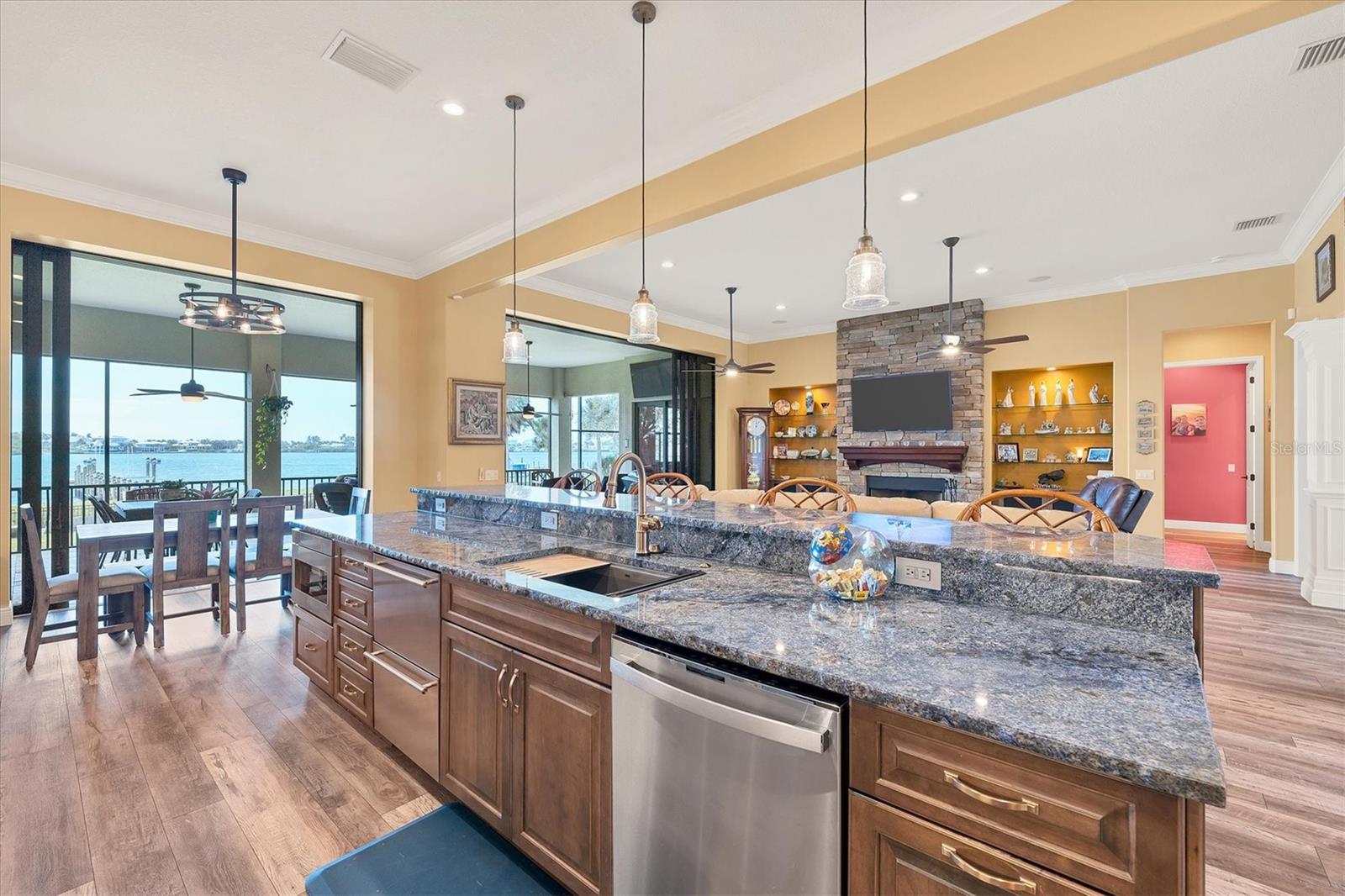 Situada em um extenso e exuberante oásis à beira-mar de meio acre, esta requintada residência unifamiliar apresenta uma rara mistura de sofisticação e sustentabilidade. Esta casa meticulosamente construída em 2012 abrange pouco menos de 3.000 pés quadrados de espaço elegante. Pensado para quem procura um estilo de vida inigualável, este imóvel dispõe de quatro quartos, um escritório, três casas de banho e garagem para três carros, tudo envolto no abraço da privacidade e do luxo. A casa foi totalmente reformada e remodelada há apenas 16 meses. Ao passar pela porta da frente, o calor do piso de madeira lhe dá as boas-vindas, preparando o cenário para uma viagem pela elegância refinada. Descubra tetos de 3,3 metros adornados com interiores recém-pintados. O coração desta casa é o sonho de qualquer entusiasta da culinária. Possui novos sistemas elétricos e hidráulicos e está equipado com eletrodomésticos de alta qualidade de nível comercial, incluindo um fogão BlueStar pombo azul de 10 bocas com fornos duplos convencionais / de convecção de 60 polegadas, refrigerador / freezer azul pombo de porta francesa BlueStar com interior em aço inoxidável e guarnição de latão. A cozinha é adornada com duas gavetas de geladeira em aço inoxidável da linha U, um enchimento de panelas Brizo em ouro luxuoso brilhante, uma pia Kraus Bellucci de 33 polegadas de granito composto sob montagem em cinza metálico, torneira de latão touch on/off, complementada por Bahia azul de 3 cm. bancadas de granito com bordas cinzeladas que exalam opulência. O entretenimento é fácil com um micro-ondas embaixo da bancada, uma máquina de fazer gelo e um refrigerador de vinho. Os puxadores/puxadores de gaveta MacKenzie-Childs aprimoram os embutidos da sala de jantar para criar uma atmosfera de hospitalidade sofisticada. Sustentabilidade e conforto são fundamentais aqui. Experimente o epítome da conveniência com um gerador para toda a casa e um aquecedor de água sem tanque, garantindo conforto ininterrupto. Delicie-se com a organização com Closets by Design, incluindo dois walk-ins no quarto principal. Unidades Aroma 360 são anexadas a cada manipulador de A/C para uma experiência sensorial envolvente, e um novo telhado de metal semelhante a telha equilibra apelo estético e durabilidade. O fascínio desta casa se estende ao ar livre até 30 metros da pitoresca e deslumbrante costa de Blackburn Bay, apresentando uma nova doca iluminada com um elevador de 16.000 libras, pré-cabeado para elevadores de jet ski e barreiras duplas de corda para segurança. O quintal, um refúgio de tranquilidade, é totalmente vedado com cerca de aço de mais de um metro e inclui piscina aquecida e banheira de hidromassagem, rodeada por uma fascinante iluminação paisagística. Divirta-se com facilidade na ampla varanda ampla, com vistas panorâmicas de Blackburn Bay e Casey Key. A piscina aquecida de água salgada oferece um retiro isolado para observar o pôr do sol majestoso. Aproveite a flexibilidade de duas zonas de ar condicionado, atendendo perfeitamente ao seu conforto. Viver à beira-mar nunca foi tão atraente. Abrace o estilo de vida costeiro nesta propriedade de meio acre, onde cada detalhe reflete um artesanato meticuloso e uma vida refinada. Toda a propriedade tem rega, incluindo os floreiros que se encontram na frente. Esta propriedade não é apenas uma casa, é uma promessa de estilo de vida, oferecendo privacidade numa estrada privada partilhada com apenas duas outras residências. Representa uma mistura harmoniosa de luxo, conforto e consciência ambiental, esperando para recebê-lo em uma vida de elegância incomparável e vida serena à beira-mar. Aproveite esta oportunidade única de possuir um pedaço do paraíso em Nokomis, Flórida, onde cada detalhe conta uma história de requinte e graça.