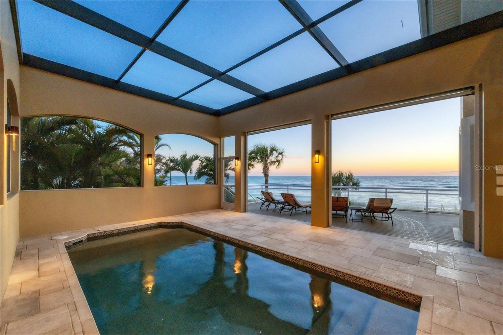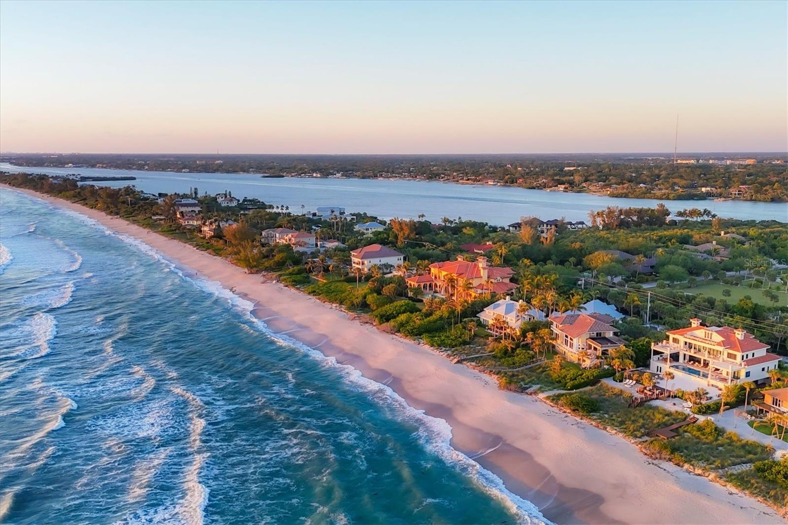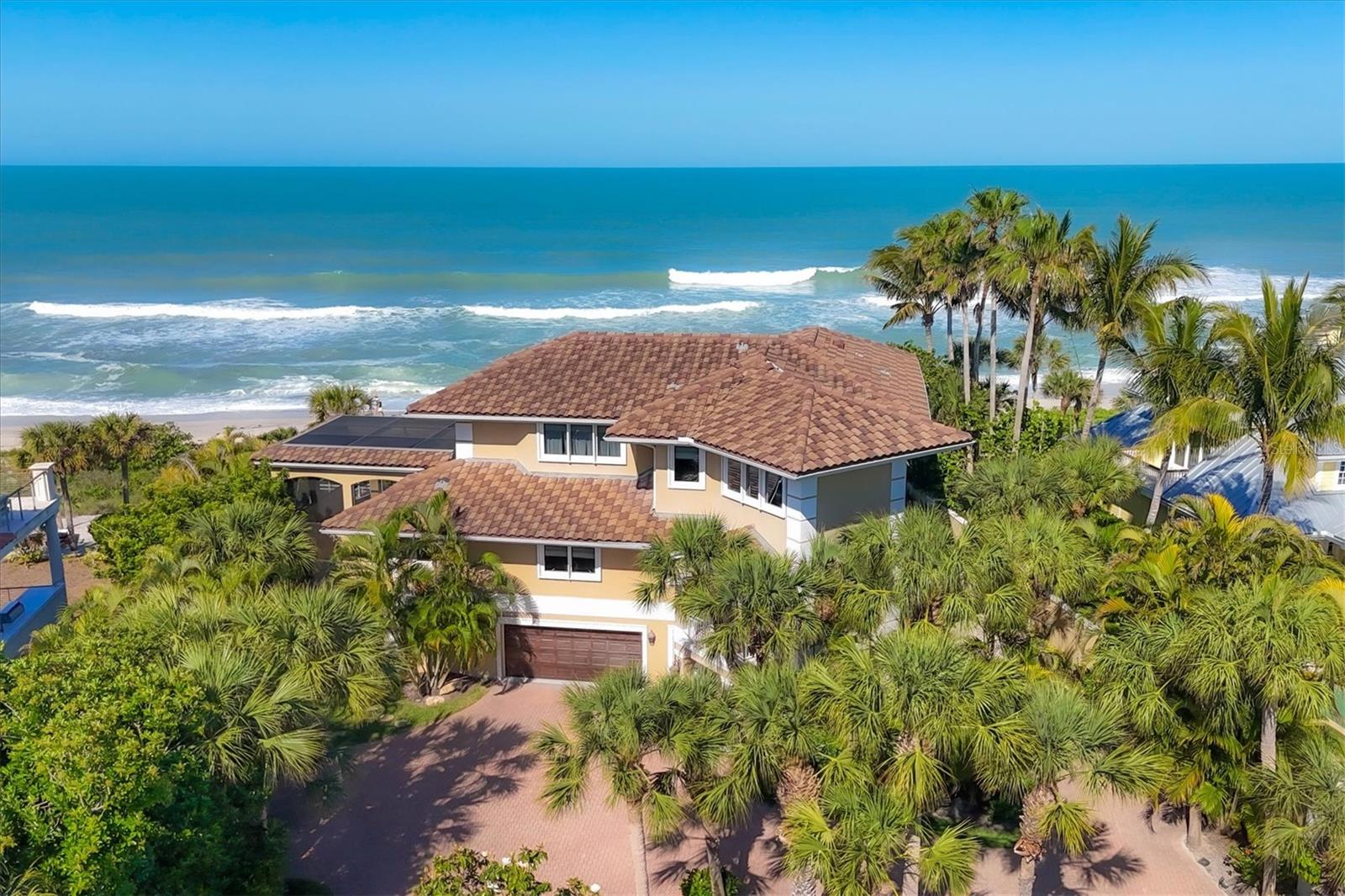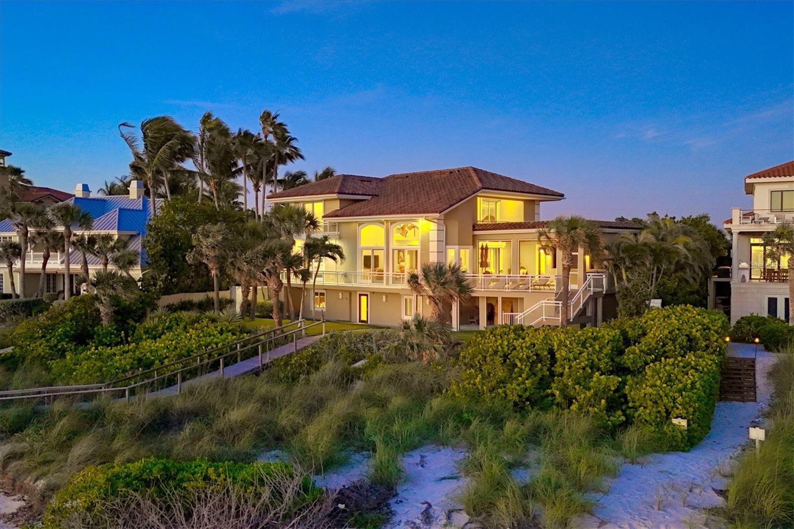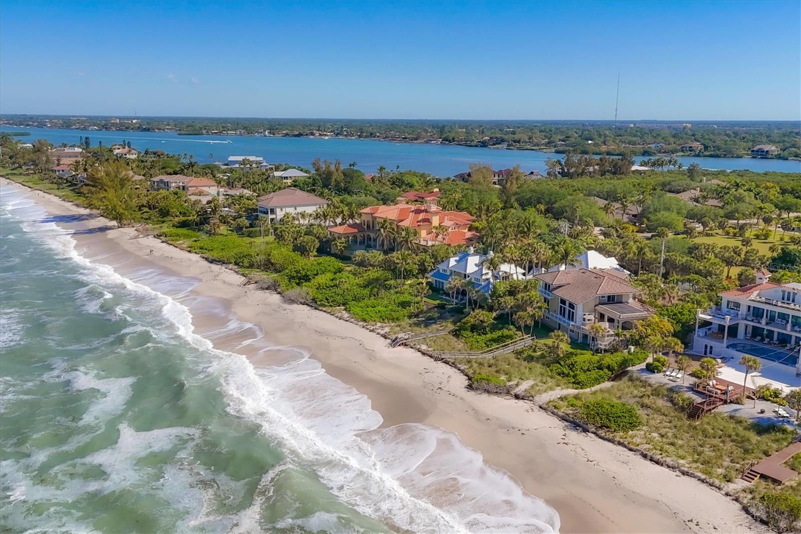 Delicie-se com a essência do luxo costeiro nesta requintada propriedade de três andares em Casey Key. Ao longo da Costa do Golfo, esta casa oferece uma mistura perfeita de elegância e conforto, com cada andar apresentando uma experiência única. Saia e sinta a areia fofa a seus pés, pois esta propriedade possui 30 metros de praia no golfo. O segundo andar funciona como o coração da casa, apresentando os principais espaços acessíveis por elevador ou pela grande escadaria. A cozinha do chef é adornada com armários de madeira neutra, bancadas de granito, eletrodomésticos Thermador de aço inoxidável e despensa. Pisos de cerâmica adicionam um toque de sofisticação, enquanto a sala de estar aberta possui tetos de dois andares e janelas grandes que oferecem vistas deslumbrantes do Golfo do México. A cozinha e a grande sala convenientemente abertas para o pátio e varanda com piscina com deck de travertino e deck adicional, tornando-o o local interno e externo ideal para relaxar ou um mergulho rápido e refrescante. Telas controladas remotamente cercam a área da piscina para maior conforto e conveniência. A suíte principal neste andar é completa com pé direito alto, sancas e acesso privativo a uma varanda compartilhada com a sala, acentuando a vista do mar e do pôr do sol. O banheiro privativo dispõe de box amplo com paredes de box sem moldura, penteadeira espaçosa com duas pias, closet grande e personalizado e armário de roupas de cama. Um lavabo e um armário de grandes dimensões completam a oferta deste andar. O acesso pelo elevador ou pela grande escadaria leva você ao terceiro andar, onde uma área de estar e uma cozinha compacta com refrigerador de bebidas, pia, micro-ondas e armário adicionam conveniência. Este nível possui uma segunda suíte principal, refletindo a elegância da suíte principal no nível inferior. A suíte de hóspedes neste nível oferece vistas incríveis do Golfo do México a partir da varanda privativa, um closet espaçoso e um banheiro privativo com penteadeira, banheira e chuveiro, além de armário de roupa de cama. O amplo quintal com calçadão que leva à praia pode ser acessado a partir do segundo nível ou do térreo. A exuberante paisagem da Flórida, repleta de palmeiras e uvas marinhas, é um oásis sereno. Além disso, há uma casita separada para hóspedes que inclui cozinha com fogão, geladeira, pia, despensa e muitos armários e balcão. A área de estar e jantar aberta, o quarto espaçoso com acesso à varanda e o banheiro completo fazem desta casita o refúgio ideal para os hóspedes. O rés-do-chão da casa principal também oferece uma espaçosa lavandaria, juntamente com muito espaço de arrumação e espaço adicional. Experimente a melhor vida à beira-mar nesta deslumbrante propriedade na Costa do Golfo, onde cada detalhe foi projetado para oferecer elegância e conforto.