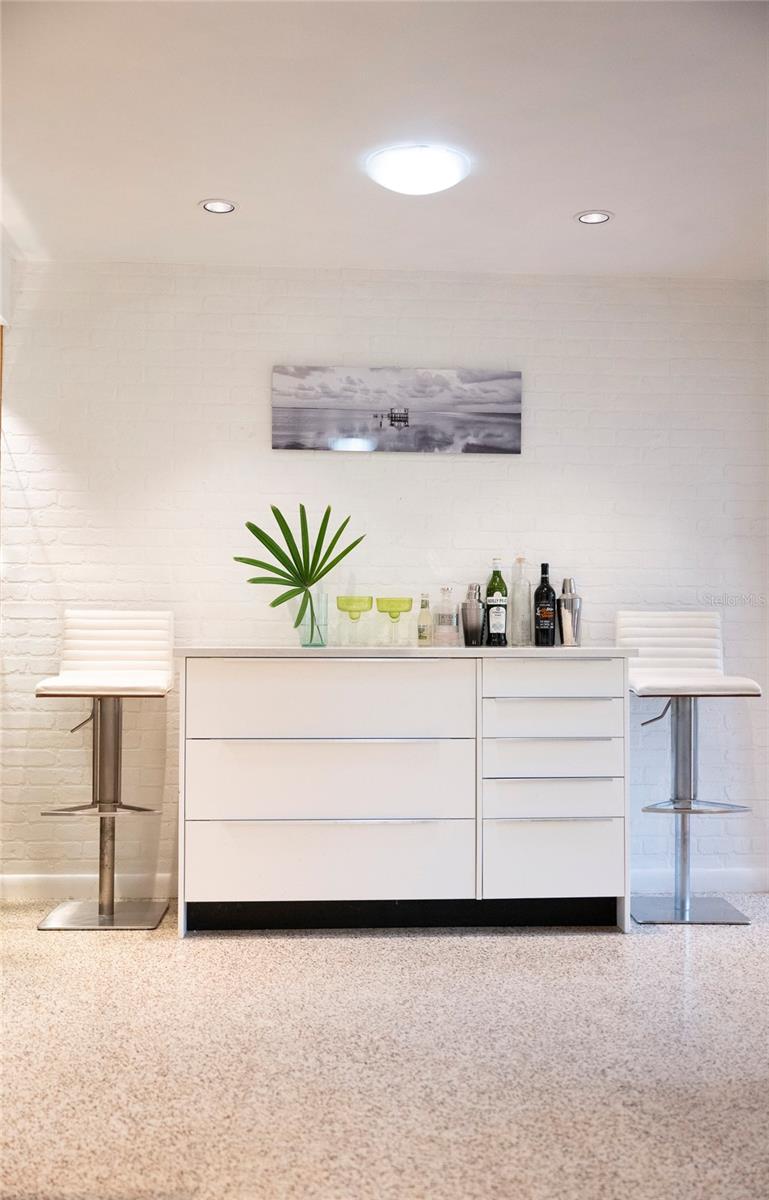 Desejando algo diferente? Acenda sua musa boêmia neste jungalow moderno do século, um passeio de bicicleta de cinco minutos sobre a ponte até as praias mais bonitas do condado de Sarasota. Localizada a oeste de Tamiami Trail, no bairro tranquilo de Baypoint, esta comunidade não-hoa é uma jóia bem conservada de orla multimilionária e casas antigas no estilo da Flórida. Construído em 1958, este Ranch Atomic apresenta pisos de terrazzo originais, janelas de jalousie trabalhando e uma garagem clássica e balançada. As atualizações incluem um novo telhado de metal e TPO, um sistema de mini-split com eficiência energética, cozinha Ikea moderna com bancadas de quartzo e um banheiro de estilo zen com vaidade de concreto artesanal e banheira japonesa de Ofuro. Atualmente, a casa está configurada com dois quartos e um banheiro sob o ar, mas existe a possibilidade de reconverter facilmente a sala de armazenamento de volta ao quarto e adicionar um segundo banheiro, restaurando a pegada original 3/2 que está nos registros de imposto sobre a propriedade. Uma enorme marquise também pode ser fechada para a vida de quatro temporadas. Os marceneiros e os artistas apreciarão o espaço de trabalho adicional do pátio traseiro. O Carport Tiki Lounge é o lugar favorito para relaxar com um livro e café da manhã ou convidar seus amigos para um Mai Tai. Revelça em sua própria selva botânica, através de vias sinuosas sombreadas por carvalhos maduros, bambu azul e milhares de dólares em paisagismo tropical. Depois de fazer uma aula de ioga da praia da manhã e um mergulho no Golfo, retorne ao chuveiro privado, fechado e quintal. A uma distância de passeio da casa, há dois parques pequenos, à beira -mar, onde você pode lançar uma tábua de paddle ou caiaque. Sem danos causados pelo vento ou inundação nesta propriedade de qualquer furacão, nunca! Em suma, traga seu maiô e coquetéis e comece a viver sua melhor vida aqui.