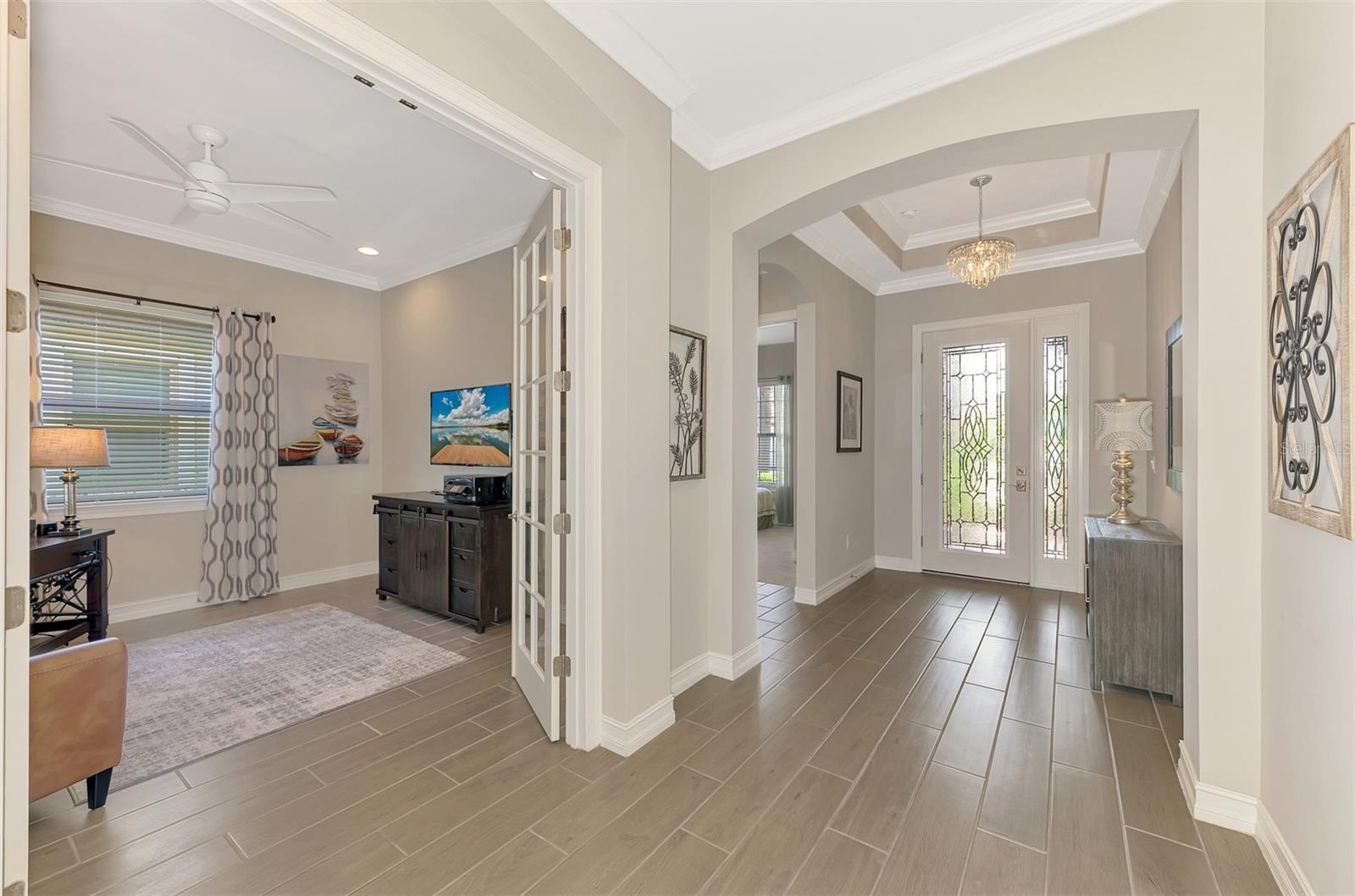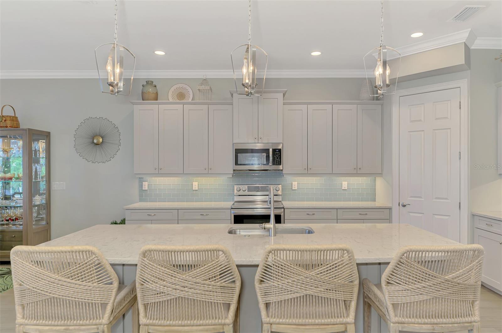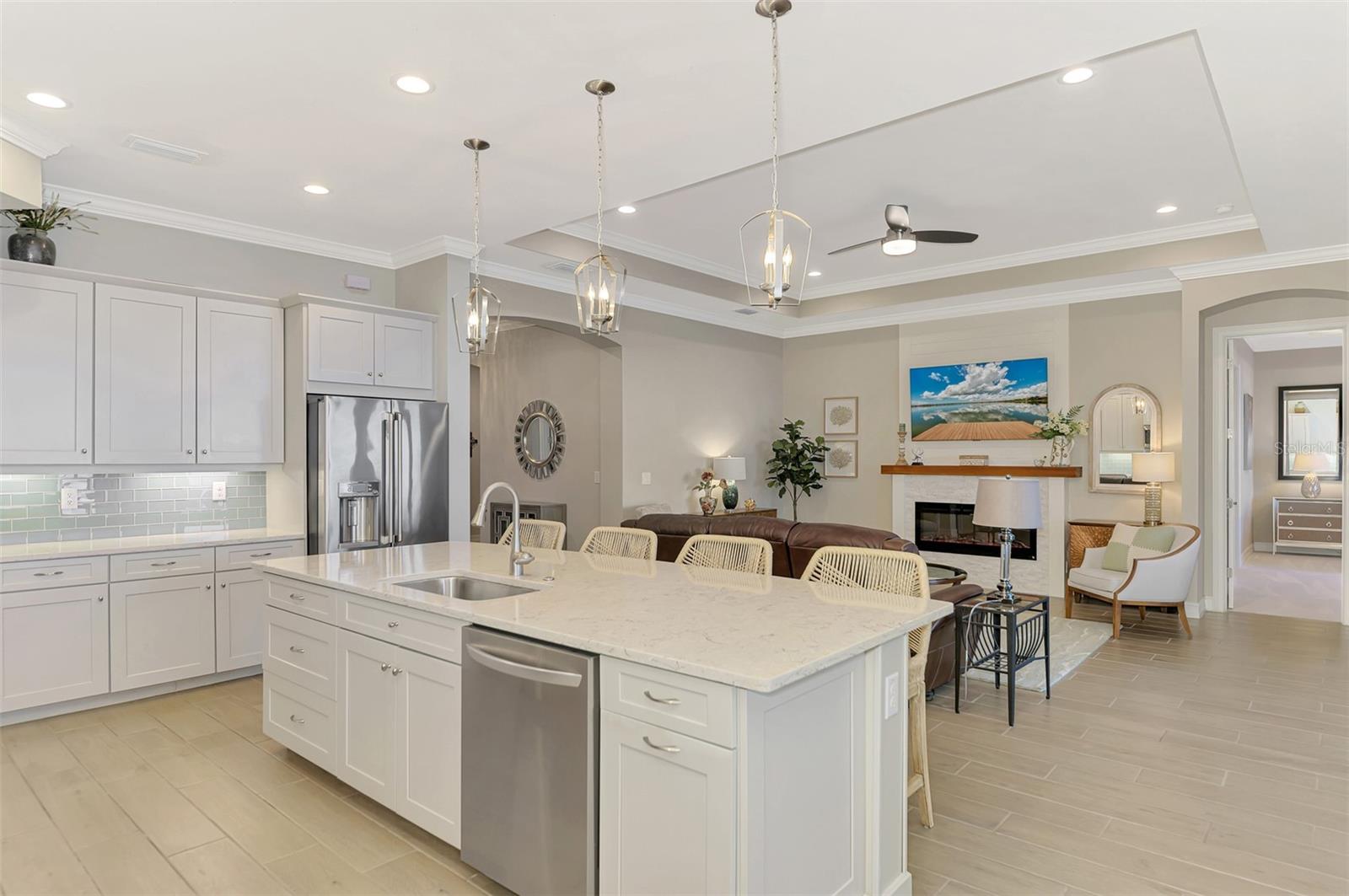 Ilhas Toscana com ocupação imediata disponível! Esta linda casa de 3 quartos e 6 banheiros no condomínio fechado das Ilhas Toscana oferece uma rara vida à beira-mar com vistas espetaculares para o lago e pôr do sol inesquecível. Situado em um lago natural de 65 acres, os residentes podem desfrutar de pesca, caiaque, canoagem e passeios de barco elétrico diretamente de seu cais privado. A piscina infinita aquecida de água salgada com spa tem vista para o lago, criando o cenário ideal para a vida ao ar livre. A ampla varanda com tela ampla, cozinha externa e um raro lavabo à beira da piscina oferecem o cenário perfeito para entretenimento. No interior, a casa foi projetada com elegância e funcionalidade em mente. A cozinha gourmet possui uma grande ilha de quartzo, armários abundantes, eletrodomésticos mais recentes em aço inoxidável e se abre para uma sala de jantar com uma janela em estilo aquário emoldurando o lago e a piscina. As atualizações incluem tetos de bandeja, sancas, portas de 2,5 metros, lustres de cristal, arcos arquitetônicos, uma nova porta frontal de impacto, preenchimento automático de piscina e uma lareira elétrica. A suíte do proprietário oferece um retiro espaçoso com banheiro luxuoso e closets duplos personalizados. As características adicionais incluem um escritório separado, lavanderia bem equipada com pia e armários e garagem para 3 carros. O segundo nível é o sonho de qualquer artista - completo com cinema de 9 lugares (com porta-copos iluminados), sala de jogos, cozinha compacta e banheiro completo. Toscana Isles oferece um estilo de vida de resort com comodidades de classe mundial, incluindo tênis, pickleball, bocha, academia de ginástica, clubhouse, piscina de resort, fogueira e vida adequada para carrinhos de golfe. Esta casa é simplesmente única - uma propriedade impressionante e única à beira-mar que oferece luxo, estilo de vida e pôr do sol inesquecível. Acesso rápido à praia, comércio, Legacy Bike Trail, parques e ao novo Sarasota Memorial Hospital. Você tem tudo!