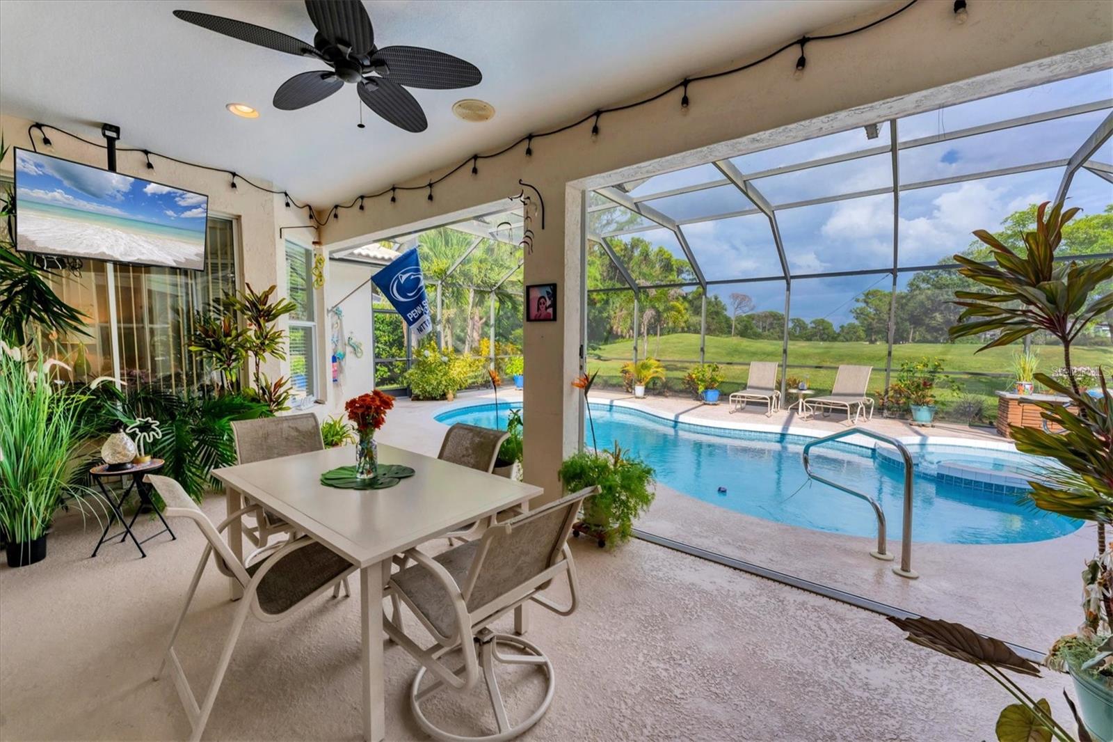 Vendedor motivado! Bem-vindo ao seu próprio pedaço de paraíso escondido dentro dos bem estabelecidos Lagos Calusa. Nada é melhor do que uma casa amada e tão convidativa quanto esta joia. Desde que adquiriram a casa, os vendedores investiram quase US$ 60.000 em atualizações cuidadosas, incluindo características externas, paisagismo e acabamentos internos que realmente tornam esta casa espetacular. A planta baixa foi projetada pensando na vida cotidiana. O layout dividido oferece privacidade, enquanto os espaços abertos oferecem muito espaço para se reunir. Cada lado da casa possui seu próprio quarto principal com banheiro completo, proporcionando a rara conveniência de duas suítes privativas. Há também uma suíte separada para sogros com entrada própria e banheiro, ideal para parentes, amigos que visitam ou hóspedes que desejam um pouco mais de privacidade. Para sua tranquilidade, a casa está equipada com um gerador para toda a casa e venezianas sanfonadas fáceis de usar, para que você esteja protegido quando necessário. Cheia de belezas naturais e incrível privacidade, esta casa é cercada por um paisagismo maduro que não só cria um ambiente tranquilo, mas também oferece ótima sombra. Saia e descubra o seu próprio retiro no quintal, onde vistas serenas da vegetação exuberante e um cinturão verde tranquilo se abrem para a beleza do campo de golfe. Uma piscina aquecida, uma banheira de hidromassagem relaxante e uma cozinha externa completa tornam o entretenimento ou simplesmente desfrutar de uma noite na Flórida um verdadeiro prazer. Viver em Calusa Lakes significa mais do que apenas uma casa, é um estilo de vida. Associações de golfe opcionais, quadras de tênis e um clube acolhedor reúnem os vizinhos. Esta é uma área tranquila e altamente desejável, onde você está a apenas 10 minutos da Praia de Nokomis e perto o suficiente para um passeio de bicicleta rápido e agradável. Venice Beach e Siesta Key também são de fácil acesso quando você estiver pronto para um dia na água. Você também encontrará ótimos restaurantes, lojas e todos os serviços que precisa nas proximidades. Este pedaço de paraíso é uma rara mistura de conforto, privacidade, estilo e localização, tudo esperando por você em uma das comunidades mais desejáveis do condado de Sarasota.