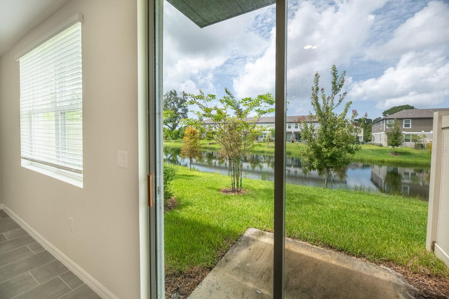Persianas contra furacões, sistema de irrigação, calçada, portas deslizantes