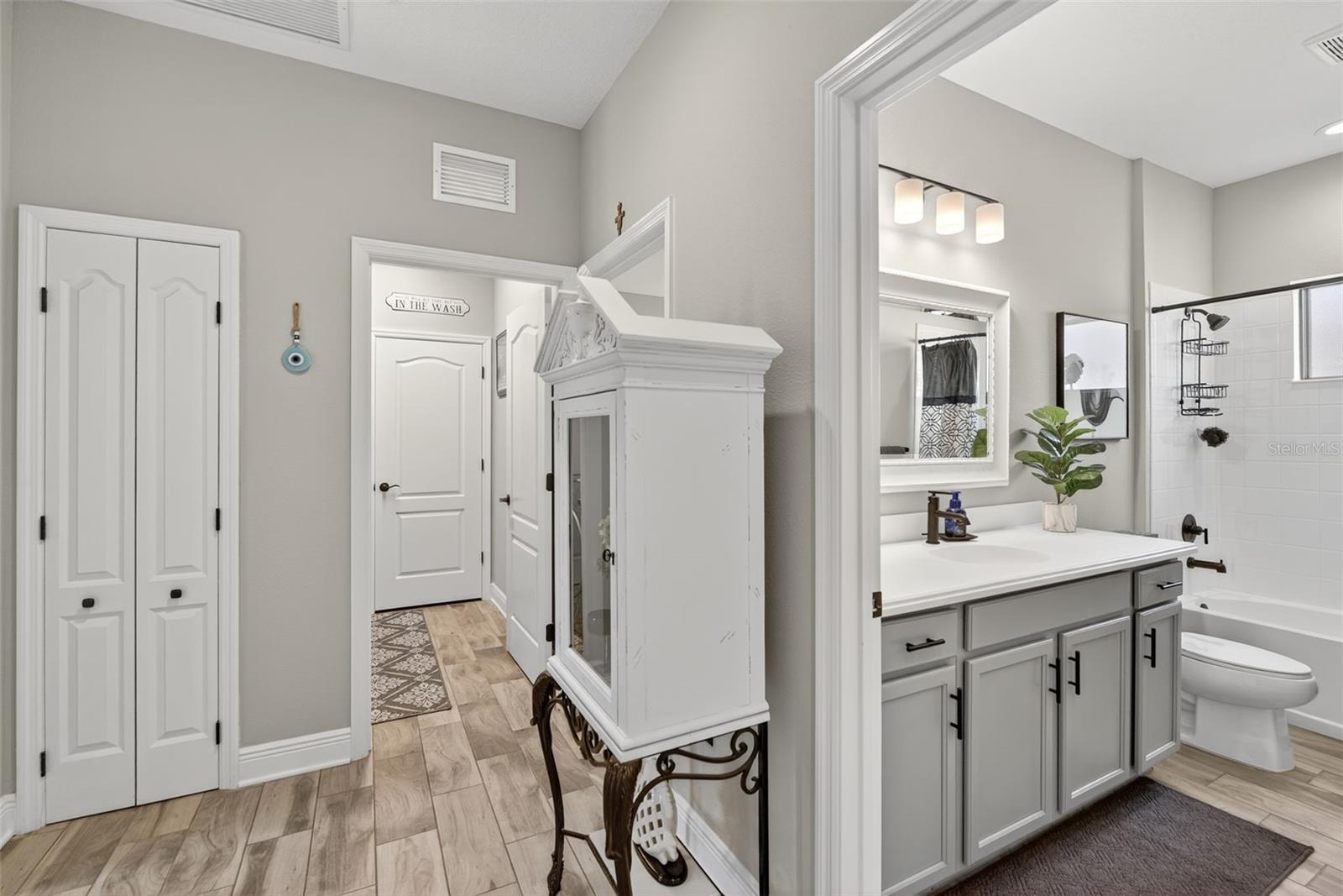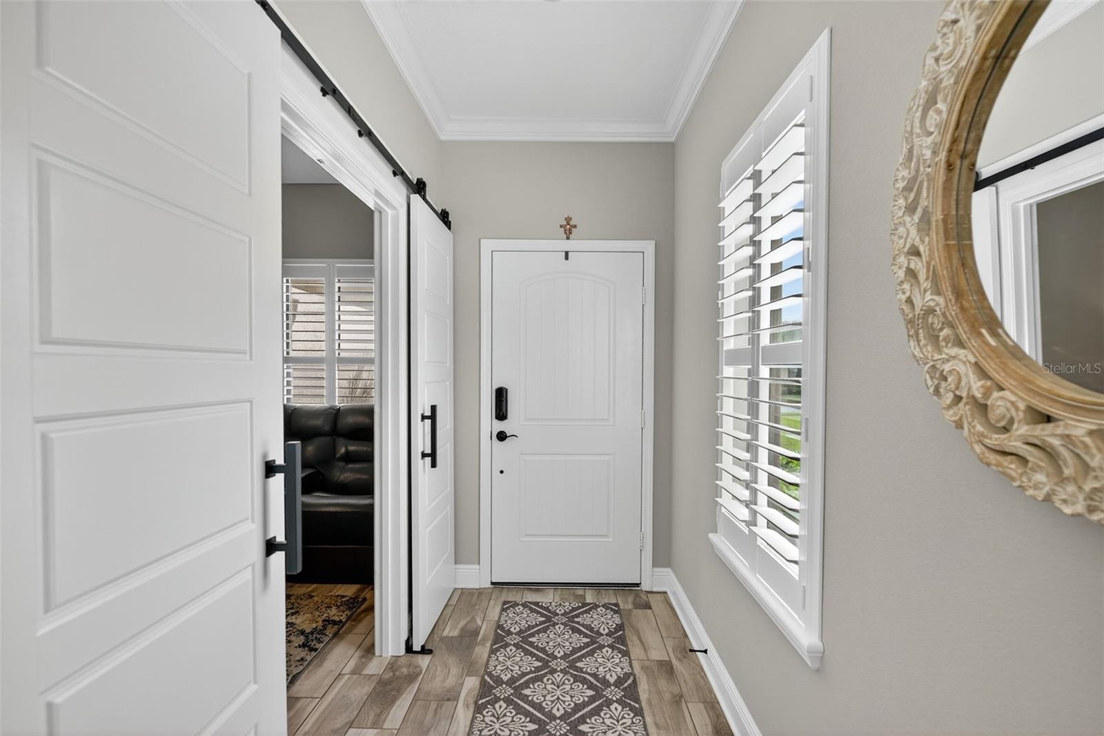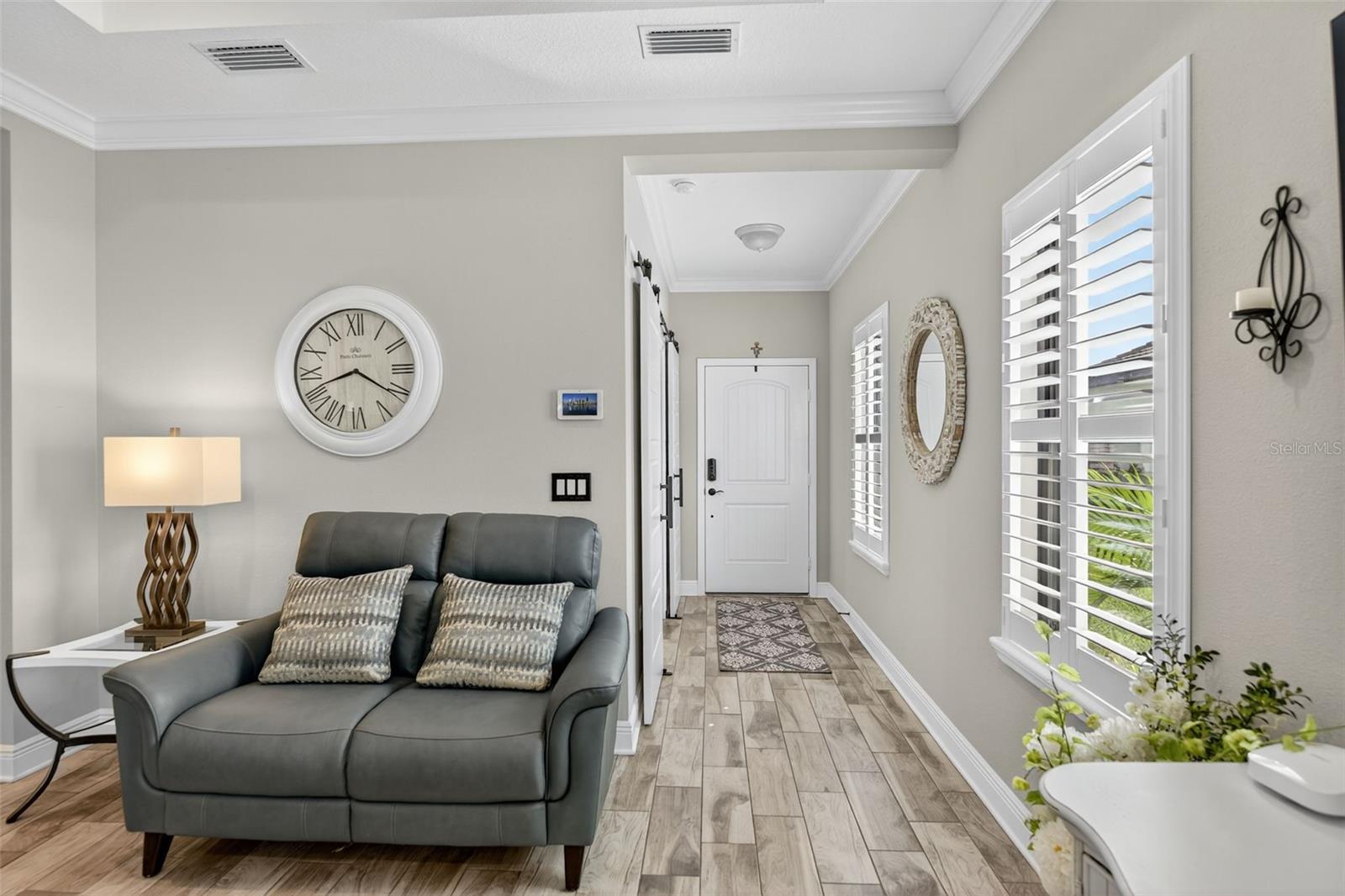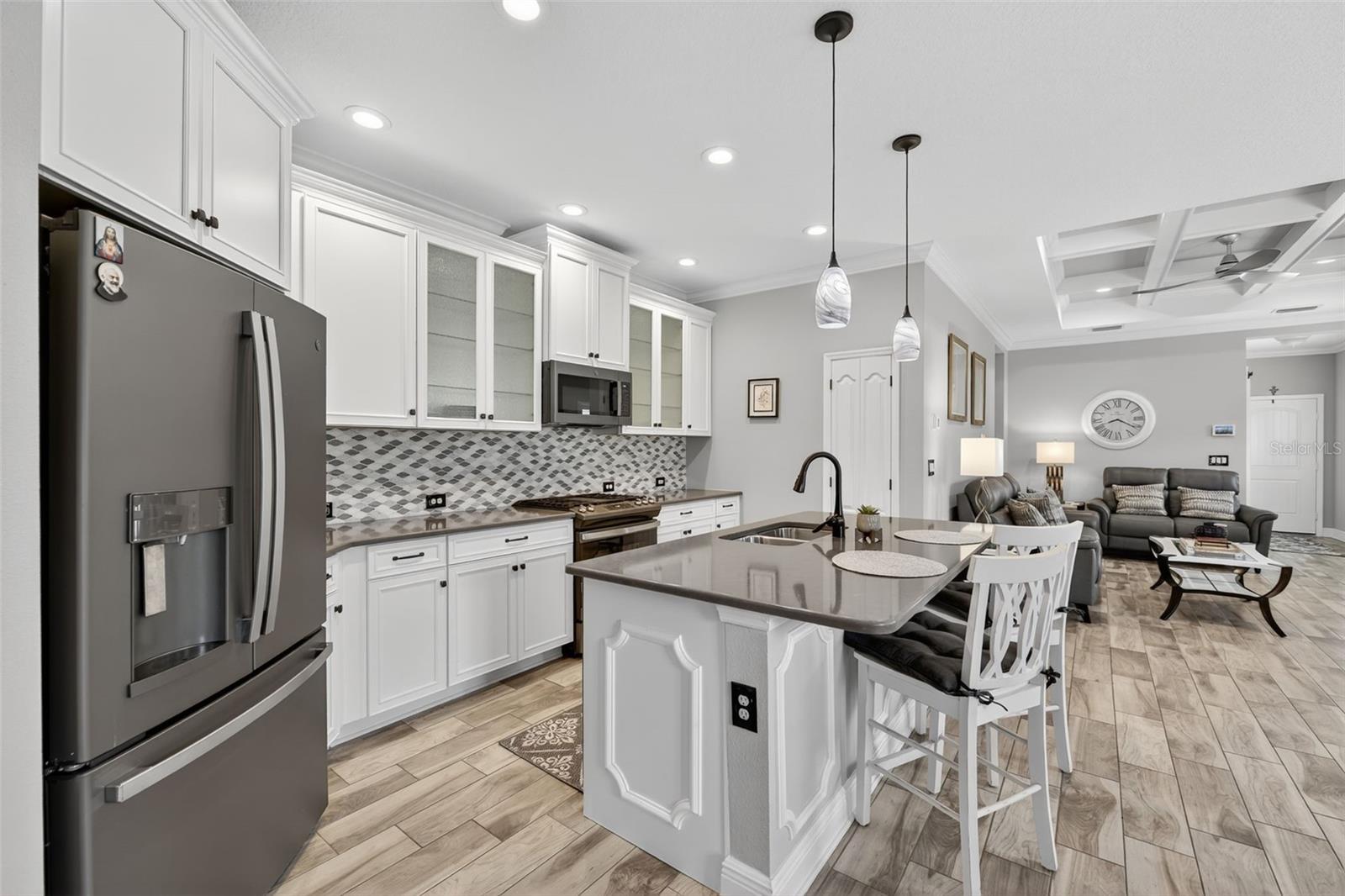 Para venda: impressionante 2021 Patriot Model Home-Move-in Ready! Descubra a elegância moderna nesta casa lindamente criada de 3 quartos e 2 banheiros, projetada com um layout de conceito aberto perfeito para entretenimento. Esta jóia possui detalhes requintados, como moldagem por coroa, um teto com madeira personalizada e persianas de plantação em toda a área de estar. A cozinha gourmet brilha com bancadas de quartzo, backsplash atualizado com armários de vidro personalizados, cozimento a gás para o chef da família, todos complementados por pisos de ladrilhos atualizados em tons de cinza neutra para concluir a lista. Relaxe na Lanai estendida com pavimentadora selada e uma cozinha ao ar livre, ideal para jantar ao ar livre em seu lote premium e cercado com paisagismo profissional. Destaques adicionais incluem um estudo/estudo com uma porta de celeiro elegante, tapete atualizado em dois quartos, ventiladores de teto por toda parte e todos os quartos prontos para a cabo. Desfrute de tranquilidade com sarjetas, um sistema de segurança doméstica, garantia de HVAC remanescente e uma garagem prolongada com piso epóxi. Localizado perto do centro de amenidade, esta casa de telhado de azulejos não está em uma zona de inundação, possui baixas taxas de HOA e nenhum CDD. Não perca esta oportunidade de possuir uma casa meticulosamente atualizada, construída para conforto e estilo! #DreamHome #ForSale
