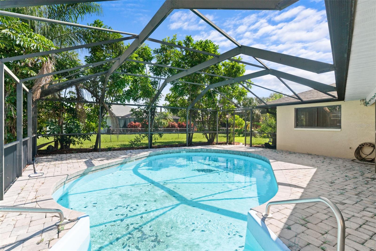 Grande piscina em casa em Lochmoor desejável! Linda 3/3 com sala de estar separada, sala de jantar, sala de estar e cozinha de comer; Lindas portas de entrada dupla de madeira maciça; Tetos abobadados com feixes abertos com clarabóias duplas, teto de bandeja personalizada na cozinha; Grande quarto principal com acesso direto à área da piscina, pias duplas no banheiro principal; Enorme piscina de fibra de vidro com gaiola de tamanho grande, a área da piscina tem grande lanchone com um conveniente banho de bilhar; Closetes de Walk-in; Muitos pisos de ladrilhos; Garagem terminada com piso acabado de epóxi; Ventiladores de teto de níquel escovados (alguns com controles remotos) e luminárias; Paisagismo tropical exótico, cobertura de palha vermelha e lava e coalhada de concreto que envolve toda a casa; Novo telhado, banda nova bomba de piscina; sistema de segurança. Localizado perto de compras, jantares, serviços de saúde e centro de Cape Coral e Fort Myers. INCRÍVEL!!!