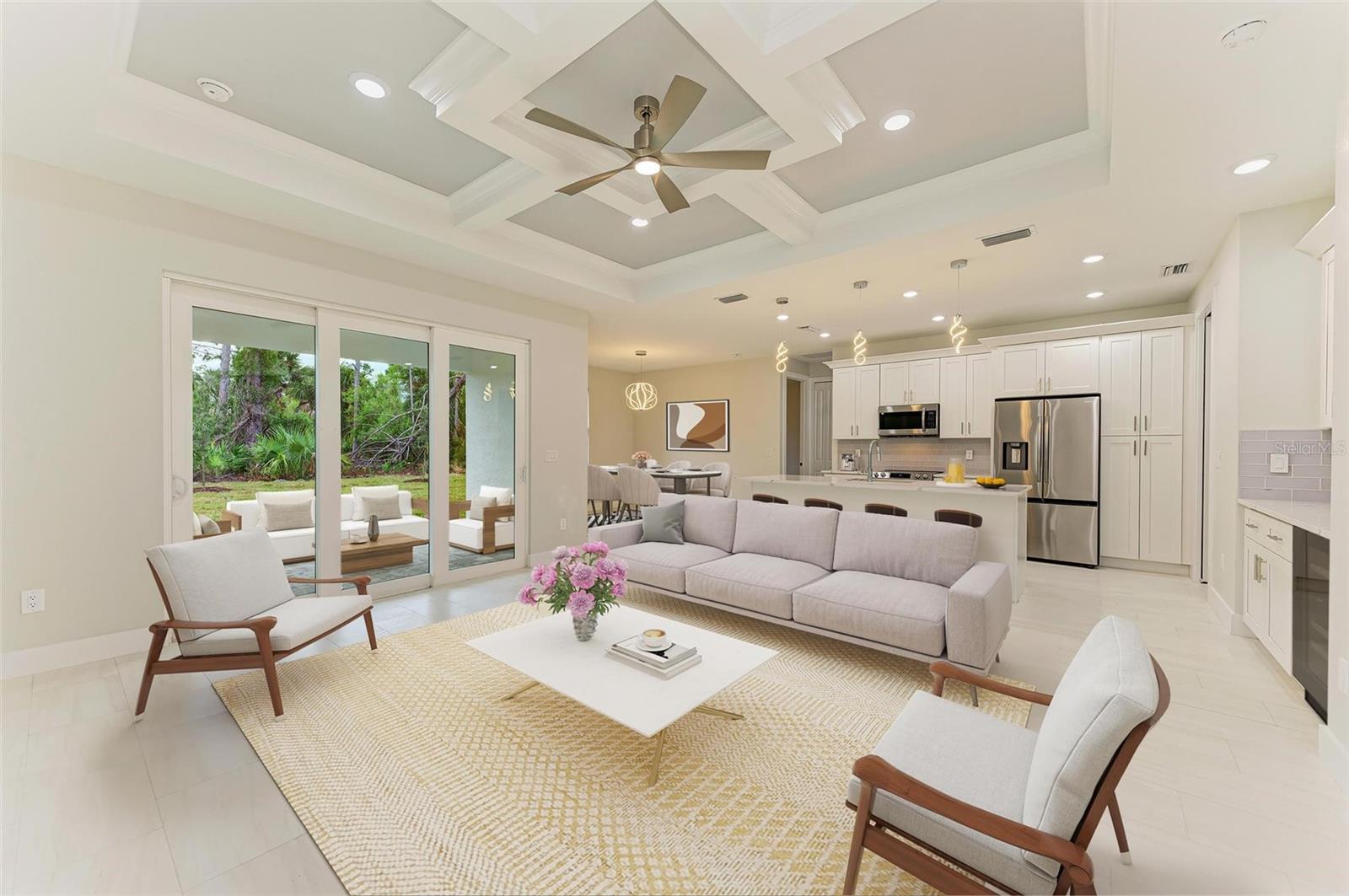 Uma ou mais fotos foram praticamente encenadas. (Sob Video Surveillance) Mudança pronta. Bem-vindo ao auge da moderna Flórida que vive nesta nova construção de 4 quartos e 2 banheiros que combina sem esforço estilo, conforto e funcionalidade. Entre no espaço de estar de conceito aberto, com piso laminado e um teto alto e dividido, criando uma atmosfera convidativa para a vida diária. O coração da casa, a bela cozinha, é uma delícia de chef doméstica com uma ilha de grandes dimensões, bancadas de quartzo, utensílios de aço inoxidável, luminárias modernas e um café conveniente - um cenário perfeito para entusiastas e artistas culinários. O quarto principal possui um closet, chuveiro de pé, vaidades duplas e acesso direto ao Lanai, oferecendo um retiro tranquilo. A planta baixa oferece privacidade para os hóspedes, e um espaço flexível versátil pode ser adaptado às suas necessidades, seja como uma sala de conter, escritório ou área de estar. A segurança é fundamental com janelas de impacto do furacão, garantindo a paz de espírito durante o mau tempo. Lá fora, o paisagismo exuberante personalizado não apenas fornece privacidade, mas também cria um cenário idílico para apreciar o sol da Flórida. A casa é estrategicamente levantada, mantendo -a fora das zonas de inundação e contribuindo para estimativas de seguro mais baixas. O lote de canto cercado oferece privacidade adicional e tem espaço suficiente para uma piscina. As características práticas incluem uma lavanderia de grandes dimensões, pavimentadoras na frente e nas costas, calhas completas, filtração de água e um sistema de poço e séptico. Como uma marca de confiança na qualidade da construção, uma garantia de estrutura de 10 anos está incluída. Convenientemente localizado com fácil acesso à I-75 e South Tamiami Trail, esta casa oferece proximidade às praias locais e atrações próximas, tornando todos os dias umas férias. Não perca a oportunidade de possuir esta propriedade incrível - agende sua visualização privada hoje! Incentivos adicionais disponíveis, ligue -nos hoje para perguntar