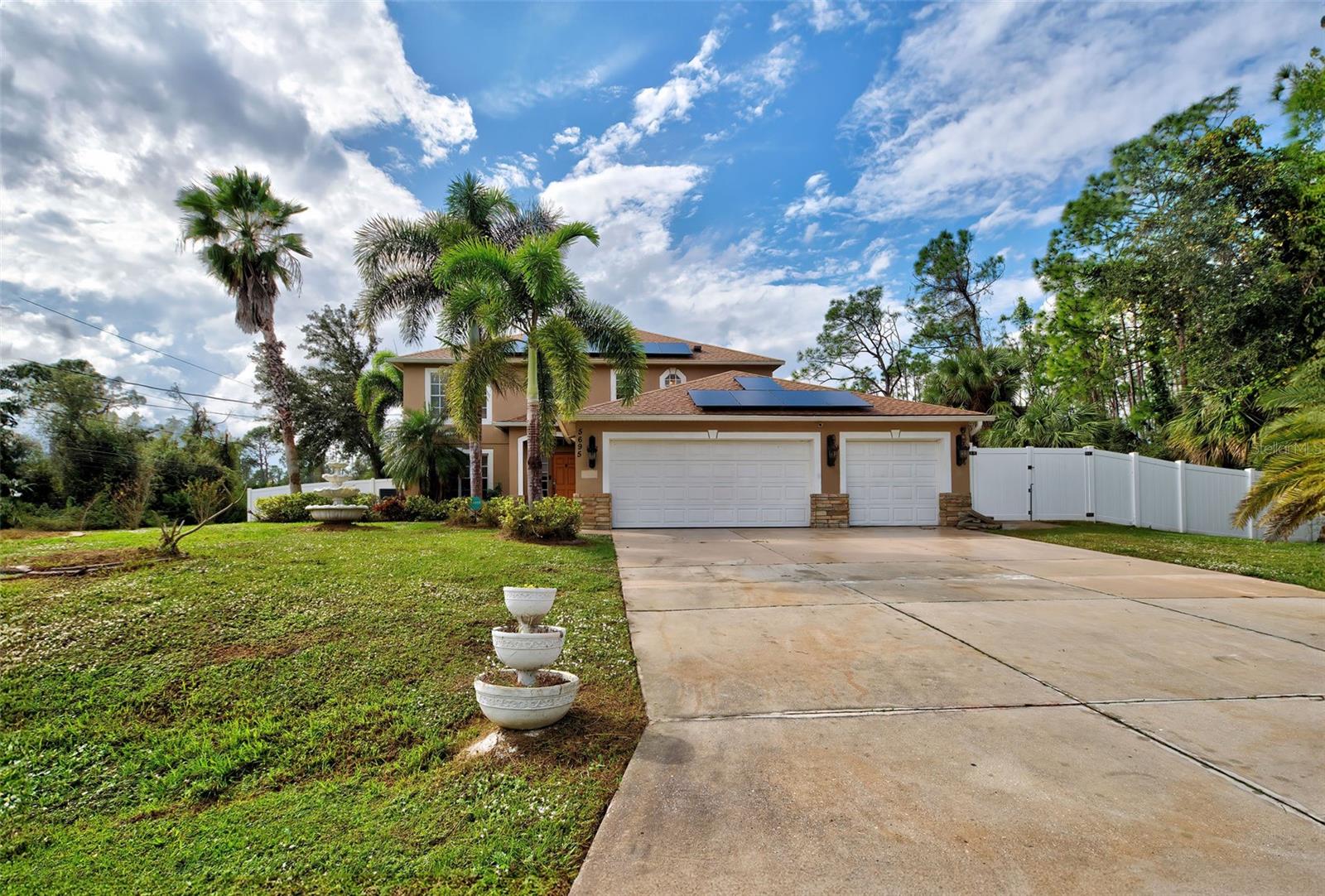 Aqui está uma ótima chance de possuir uma ótima casa de 4 quartos com uma garagem de 3 carros, está em um lote duplo de 0,65 acres do tamanho de uma propriedade. O novo sistema elétrico solar oferece o potencial para contas de energia elétrica muito baixas ou nenhuma. O telhado de um ano, garantindo anos de serviço e baixas taxas de seguro. Reserva de água de 1000 galões, fornecendo amplo armazenamento de água. Um painel elétrico é pré-conectado para um gerador de toda a casa, acrescentando conveniência e tranquilidade. Localização e comunidade: localizado em uma zona de inundação X, eliminando a necessidade de seguro contra inundações. Sem regras ou taxas do HOA, nenhuma taxa de CDD ou nenhuma restrição de ação fornece liberdade e flexibilidade para o seu estilo de vida sem aborrecimentos. Convenientemente perto das opções de compras e restaurantes, aumentando a conveniência geral do estilo de vida. Recursos interiores: cozinha bem equipada com utensílios de aço inoxidável, balcões de granito, despensa e armários de madeira. O primeiro andar inclui uma sala de estar, banheiro completo, covil/estudo, quarto de hóspedes e lamroom adjacente à garagem. O segundo andar compreende a suíte primária, dois quartos adicionais com armários e um loft aberto e arejado. A suíte master primária apresenta vaidades duplas, uma banheira de jardim e um armário separado de chuveiro e água. As atualizações incluem persianas de furacões, uma nova bomba de água, um sistema de condicionamento mais recente e pisos de madeira de madeira nos banheiros, mudroom e lavanderia no segundo andar. Espaços ao ar livre: as áreas externas abundantes incluem um deck do segundo andar, oferecendo vistas principais da propriedade, um lanai aberto da cozinha e um lanai exibido excepcionalmente espaçoso. Dado o grande tamanho do lote, há muito espaço para comodidades adicionais, como piscina, loja, barco, trailer ou jardim. Geral: Esta propriedade oferece uma mistura perfeita de comodidades modernas, eficiência energética, amplo espaço e liberdade de regulamentos restritivos. Com seus recursos desejáveis, localização conveniente e potencial de personalização, parece ser uma jóia imperdível no porto norte. *** Opção de lucro de arrendamento de até 12 meses a US $ 4000 / mês com preço de compra fixo ***