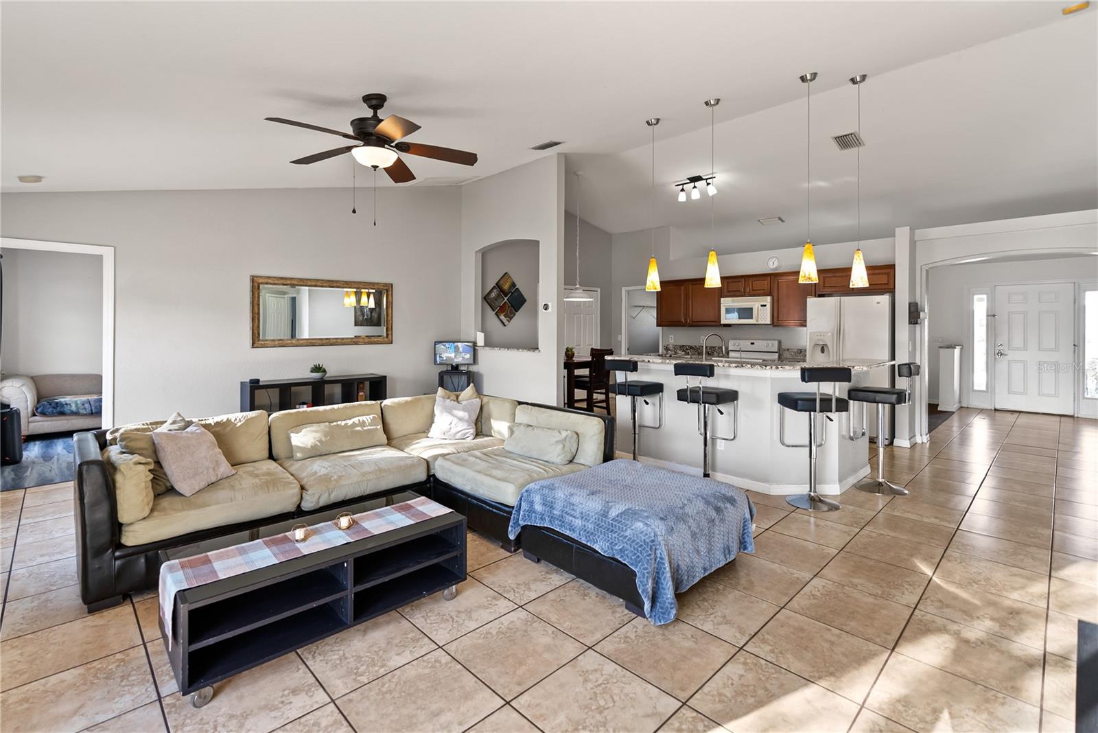Bem -vindo à sua casa de sonho! Este paraíso meticulosamente mantido de 3 leitos e 2 banheiros é uma verdadeira jóia. Possui um piso plano aberto que exala calor e charme. À medida que você se aproxima, seja recebido por grandes pilares que deram o tom para a elegância que aguarda dentro. Entre em um mundo de possibilidades através de um arco atraente, levando você a espaços versáteis que podem ser transformados em um covil, escritório ou sala de bônus, permitindo que você adapte o espaço ao seu estilo de vida. A sala de jantar, ou potencialmente uma espaçosa sala de bônus, oferece flexibilidade para suas necessidades exclusivas. O coração desta casa é a grande sala adornada com tetos altos que criam um ar de grandeza. A cozinha atualizada é uma delícia de chef, com armários refinados, bancadas em granito e uma ilha generosamente de tamanho - perfeita para quem gosta de entreter e cozinhar com estilo. As conveniências adicionais incluem uma despensa dupla e um recanto de café da manhã encantador. Além disso, os painéis solares estão disponíveis para um pequeno pagamento mensal. A planta baixa garante a privacidade, com dois quartos de um lado e um grande quarto principal do outro. A suíte master é um santuário, completo com um closet, uma banheira de jardim rejuvenescedor e um chuveiro-um retiro perfeito após um longo dia. À medida que você explora ainda mais, descubra um quintal cercado de vinil com um pátio de pavimentador de tijolos, oferecendo um oásis privado para diversão ao ar livre. Esta casa não é apenas uma habitação; É um estilo de vida. A localização é imbatível, com fácil acesso à interestadual, supermercados, shopping center, postos de gasolina, parques e muito mais. Os fins de semana se tornarão uma delícia com uma rápida viagem até o novo Wellen Park e várias praias bonitas, oferecendo inúmeras oportunidades de lazer. Além disso, aproveite a liberdade de nenhuma taxa de HOA, dando a você a flexibilidade de personalizar e manter sua propriedade sem restrições adicionais. Painéis solares, 2 anos, o vendedor pagou US $ 32.000 não incluídos na venda. Não perca a chance de chamar essa residência requintada de sua - uma mistura perfeita de estilo, conveniência e conforto. Aja agora e torne a casa dos sonhos uma realidade!