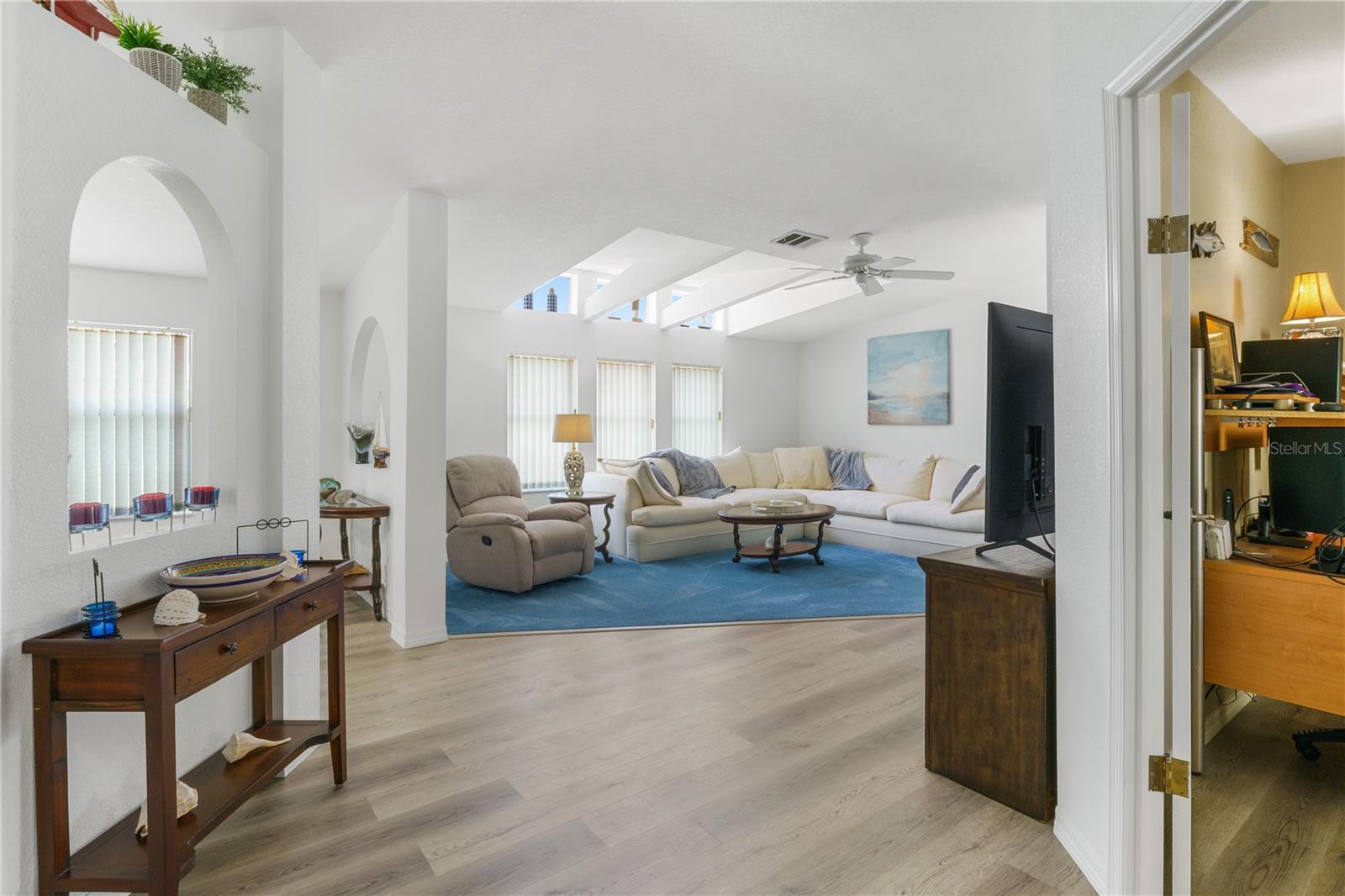 Lindamente atualizada e imaculada Palm Harbor Triple Wide Manufacted Home na adorável comunidade boutique da vila em Riverwalk. Esta casa é enorme a 2200 sf de área de estar e um total de 3600 sf no total. Plano de piso aberto muito espaçoso possui uma grande sala de estar com sala de jantar separada e uma sala familiar grande separada com um lanai. Dividir a planta baixa para a privacidade, o que é ótimo para os visitantes. Três quartos, o quarto principal tem uma caminhada extra grande no armário. A cozinha é fabulosa com seu próprio recanto de café da manhã. A cozinha tem acesso direto à sala de jantar, sala de família e lanai, tão divertido é fácil e divertido! Novo piso de tábua de vinil de ponta, tinta nova, paredes interiores da rocha e o quarto principal tem uma enorme caminhada no armário! Você desfrutará de uma garagem larga dupla e uma grande área de armazenamento anexada com muitas prateleiras. Nada mais a fazer a não ser começar a desfrutar do estilo de vida semelhante ao resort que esta comunidade vital tem a oferecer. Atividades e comodidades em abundância! Conveniente para praias, compras, estágio de estádio, restaurantes e aeroportos. A Village at Riverwalk é uma comunidade de mais de 55 residentes sombreada por árvores maduras e cercada pela natureza. Situado ao longo de Salt Creek, o lançamento de caiaque também fornece acesso ao rio Myakka. O Riverwalk oferece muitas comodidades, incluindo um clube, biblioteca/sala de cartas, piscina aquecida, quadras de pickleball, shuffleboard, sala de fitness, doca de pesca e trilha natural. Riverwalk é uma comunidade muito ativa, com muitos grupos e atividades. É uma comunidade que aceita animais de estimação e sua taxa HOA de US $ 205/mês inclui cuidados com o gramado, cabo básico, todas as comodidades e coleta de lixo.