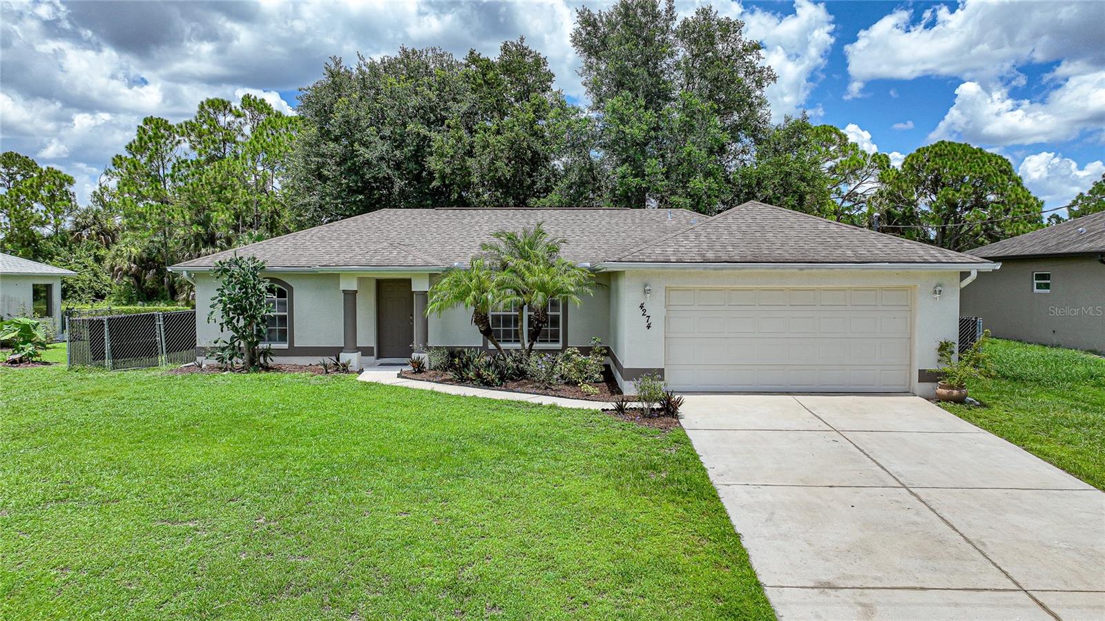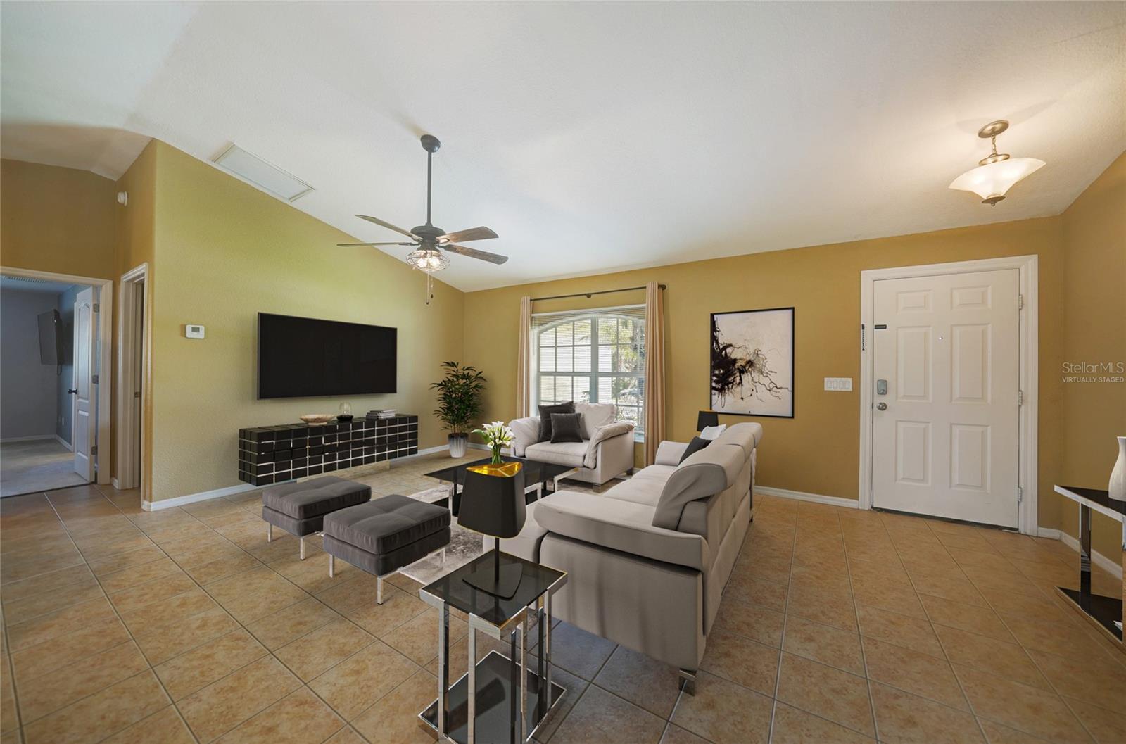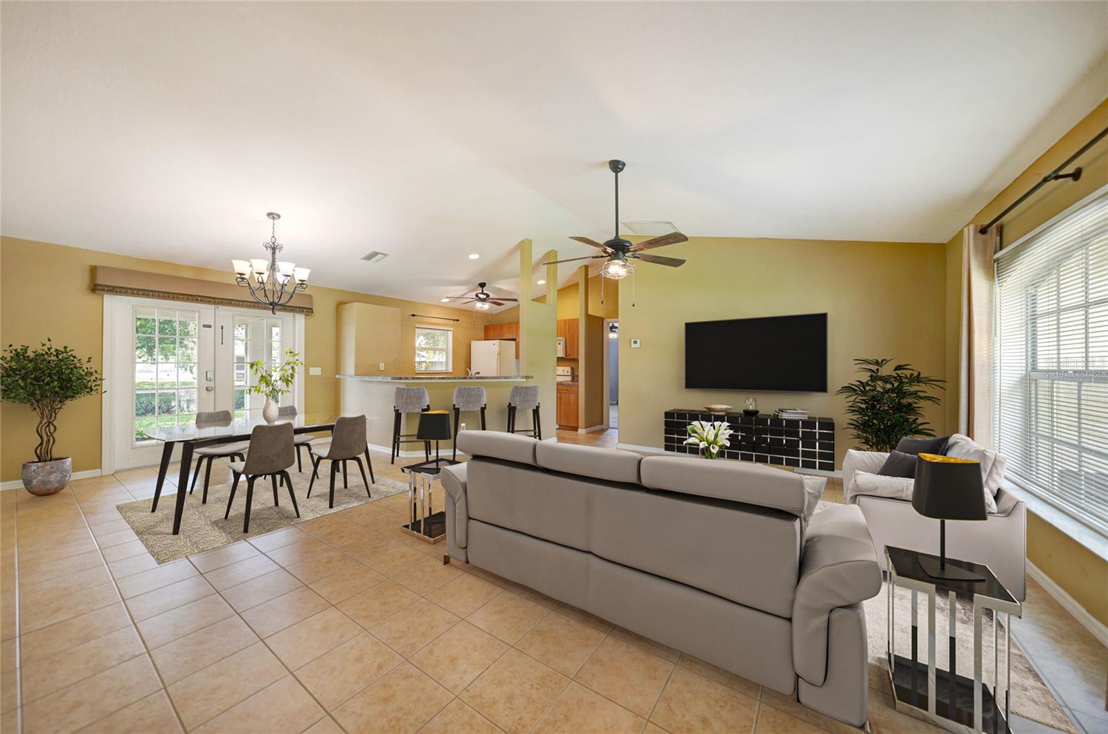 Uma ou mais fotos foram praticamente encenadas. Haven encantadora de família sem HOA: sua primeira casa perfeita aguarda! Descubra a casa dos seus sonhos nesta deliciosa propriedade de 3 quartos e 2 banheiros, cuidadosamente projetada para compradores iniciantes e famílias em crescimento. Esta jóia de um andar possui uma planta convidativa de piso aberto que combina sem esforço conforto e estilo. Destaques: - Espaçosa área de estar de conceito aberto com tetos abobadados - Tile brilhante em todos os espaços principais - Dividir a planta de privacidade e conveniência - Suite primária com um generoso closet - Dois quartos adicionais bem proporcionados - cozinha do artista com assentos de bar e área de jantar adjacente - Portas francesas que levam a um oásis de quintal particular - Lanai grande com vista para o espaço verde sereno - Bônus: galpão com ar condicionado com eletricidade - perfeito para um escritório em casa ou sala de hobby! Entre e seja recebido por tetos abobadados que criam uma atmosfera arejada e expansiva. O coração da casa é a cozinha de conceito aberto, ideal para hospedar reuniões ou refeições familiares casuais. Quer você prefira assentos nas fezes de bar ou uma configuração de refeições formais, esse espaço versátil cobriu você. Retire para o seu santuário privado na suíte primária, completa com um luxuoso closet. Dois quartos adicionais oferecem amplo espaço e privacidade para membros da família ou convidados. As portas francesas acenam você para o oásis do quintal, onde um Lanai de tela grande oferece o local perfeito para o relaxamento durante todo o ano. Aproveite a sombra e a privacidade oferecidas pelo espaço verde exuberante além da sua linha de propriedades. Como bônus, a propriedade inclui um galpão espaçoso com ar condicionado e eletricidade - um espaço ideal para um escritório em casa, estúdio criativo ou simplesmente armazenamento extra com espaço de sobra! Livre das taxas de HOA, requisitos da zona de inundação e restrições de escrituras, esta casa oferece a liberdade de torná -la realmente sua. Com as opções de compras e restaurantes a poucos momentos de distância, você gastará menos tempo e mais tempo aproveitando sua nova casa. Não perca esta oportunidade de possuir seu pedaço do paraíso. Agende sua visualização hoje e comece a viver sua melhor vida nesta encantadora e encantadora casa pronta para casa!