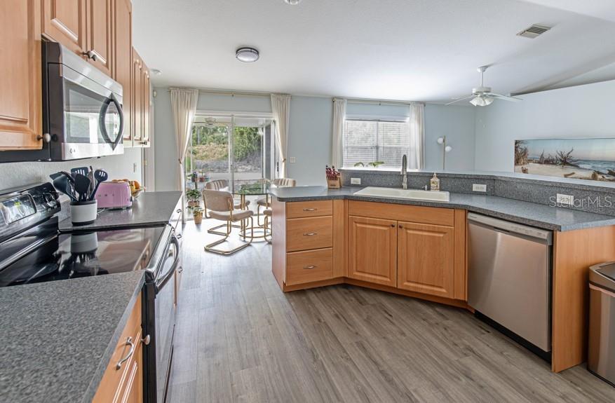 Descubra esta casa lindamente mantida com 3 quartos, 2 banheiros e uma garagem de 2 carros, com uma entrada exibida. Recentemente atualizado, esta casa inclui um novo sistema de tratamento de água da casa inteira, novo piso LVP, nova tinta externa e interior, acabamentos interiores e pisos epóxi de garagem. O piso aberto possui tetos da catedral, iluminação embutida e um layout de quartos divididos, com uma combinação de sala de jantar e sala de jantar, prateleiras de plantador e uma lavanderia equipada com uma lavadora e secadora. A cozinha oferece um amplo armário e espaço de balcão, uma barra de café da manhã, uma nova máquina de lavar louça e um armário de despensa. O espaçoso quarto principal inclui piso LVP, um ventilador de teto e um closet, enquanto o banheiro principal possui uma única pia e um chuveiro. Ambos os quartos de hóspedes também têm fãs de piso laminado e teto. As janelas são espelhadas para maior privacidade. O AC foi substituído em 2020. Desfrute de entretenimento em sua lanai exibida, acessível através de portas de vidro deslizantes da cozinha e aproveite o espaçoso quintal com muito espaço para uma piscina. Esta casa não tem HOA, nenhuma restrição de ação e não está localizada em uma zona de inundação! Convenientemente situado em um bairro agradável perto de restaurantes, compras, praias e muito mais!