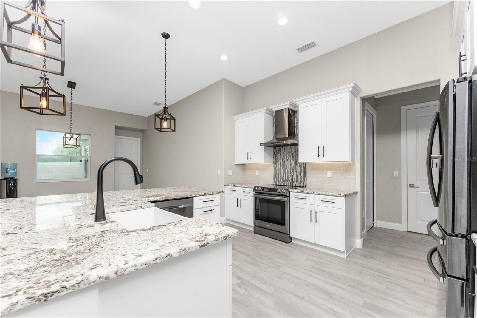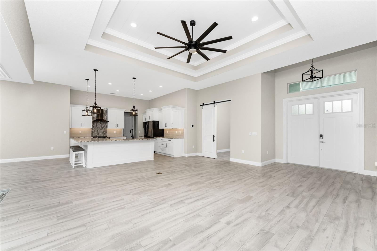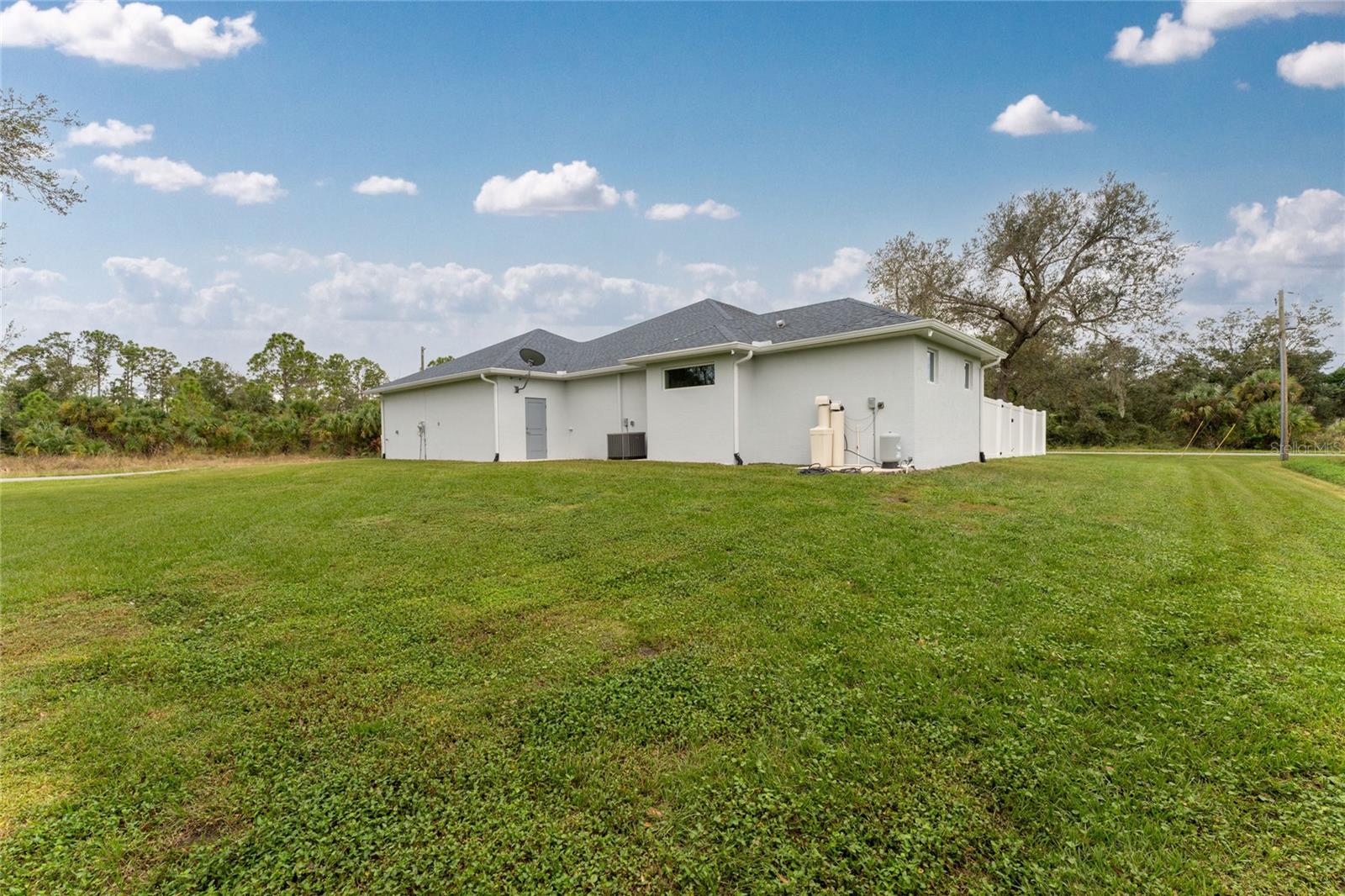 Esta casa de 3 camas 2 Bath +Den 2021 construiu a casa personalizada fica em um hectare, onde você terá amplo espaço e privacidade. A impressionante entrada de hall de entrada de duas portas duplas se abre para os tetos altos com planta baixa que conecta a grande sala, cozinha e área de jantar. A cozinha possui uma grande ilha, balcões de granito, backsplash moderno, utensílios de aço inoxidável e armários brancos de madeira macia e macia. A grande sala apresenta um conjunto de portas deslizantes de vidro e fácil acesso à sua área de pátio. O quarto principal tem um closet grande e o banheiro primário tem uma combinação de chuveiro/banheira de grandes dimensões. O acesso à lavanderia interna da suíte primária fornece conveniência. Mais dois quartos, com armários walk-in, estão localizados no lado oposto da casa, garantindo a privacidade para membros da família ou convidados com o segundo banheiro servindo esses quartos. Um espaço privado de den está situado na frente da casa, que pode ser facilmente dobrada em um quarto quarto, se desejar. Finos atualizados, como tetos de bandeja dupla, molduras de coroa, portas de um metro e oitenta, shiplap, acessórios atualizados e materiais, adicionam estilo e funcionalidade, enquanto a atenção aos detalhes garante uma experiência de vida confortável e moderna. A garagem de três carros anexada oferece amplo espaço e possui pisos recém-epóxios. Completo com um chuveiro externo com uma lanai espaçosa já encanada para uma cozinha ao ar livre, além de pronta elétrica, sem mencionar muito espaço para adicionar uma piscina. Localizado em um hectare (4 lotes) em um beco sem saída, faz deste um local privilegiado. Certificado de elevação removeu a pegada de casa da zona de inundação de AE. Não perca a oportunidade de comprar uma casa mais nova sem a espera de construir novas.