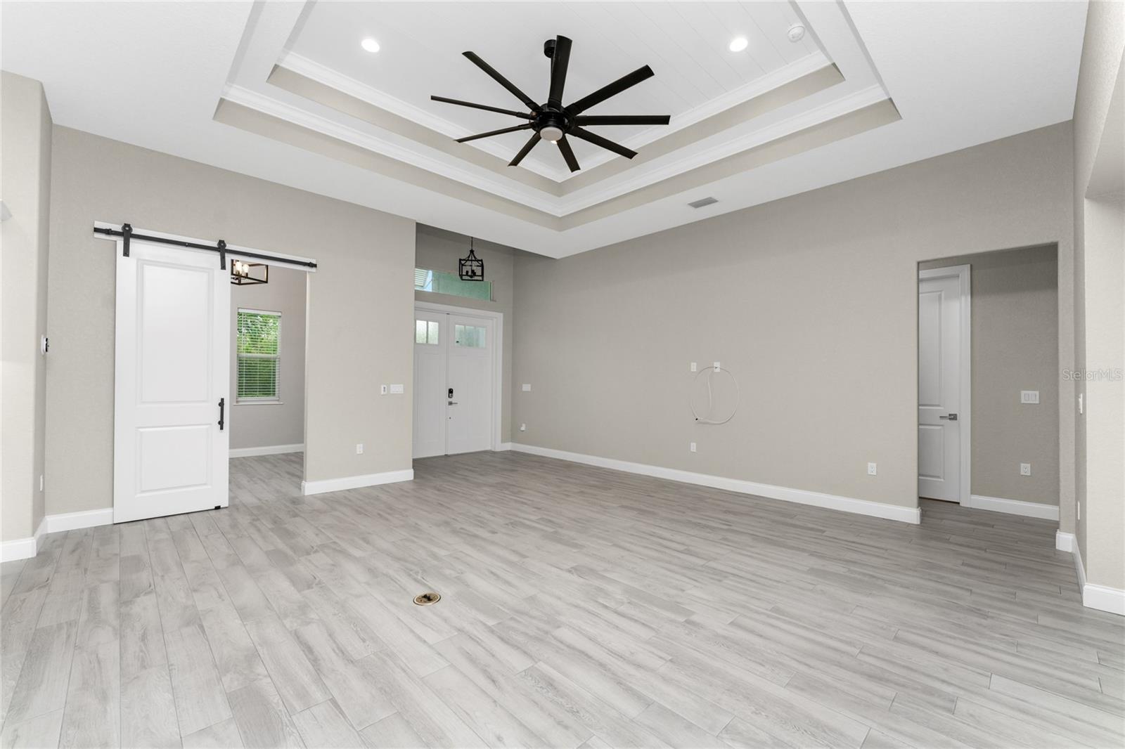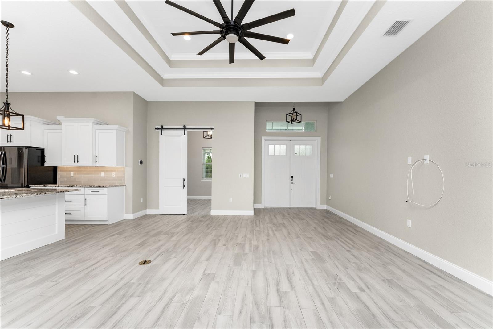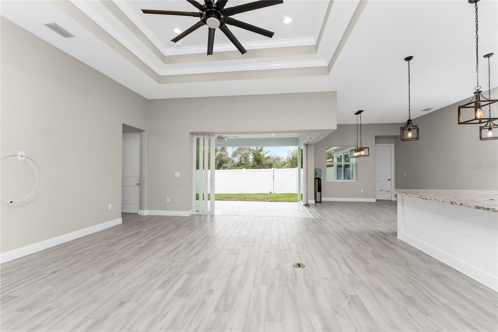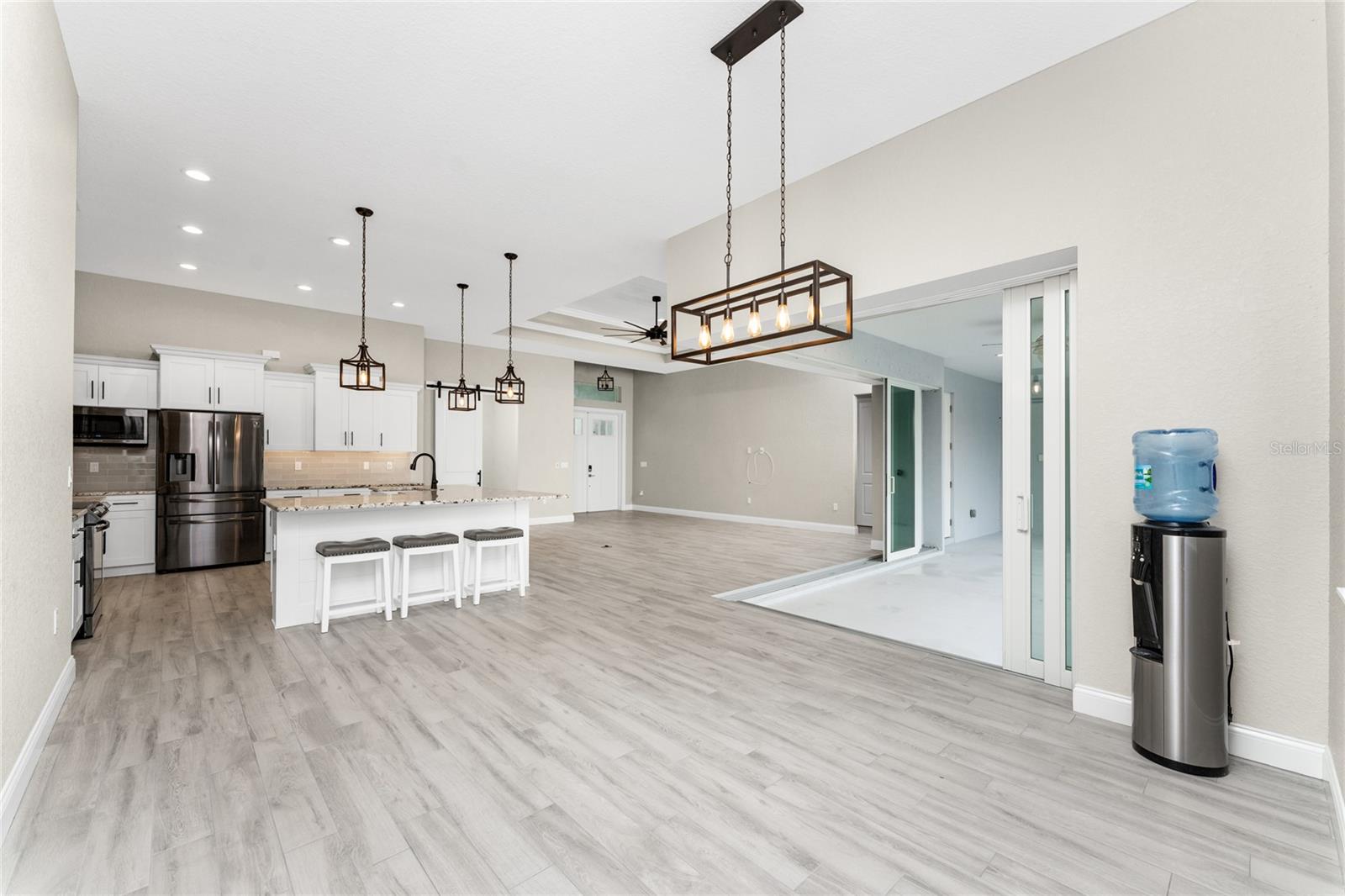 Esta casa de 3 camas 2 Bath +Den 2021 construiu a casa personalizada fica em um hectare, onde você terá amplo espaço e privacidade. A impressionante entrada de hall de entrada de duas portas duplas se abre para os tetos altos com planta baixa que conecta a grande sala, cozinha e área de jantar. A cozinha possui uma grande ilha, balcões de granito, backsplash moderno, utensílios de aço inoxidável e armários brancos de madeira macia e macia. A grande sala apresenta um conjunto de portas deslizantes de vidro e fácil acesso à sua área de pátio. O quarto principal tem um closet grande e o banheiro primário tem uma combinação de chuveiro/banheira de grandes dimensões. O acesso à lavanderia interna da suíte primária fornece conveniência. Mais dois quartos, com armários walk-in, estão localizados no lado oposto da casa, garantindo a privacidade para membros da família ou convidados com o segundo banheiro servindo esses quartos. Um espaço privado de den está situado na frente da casa, que pode ser facilmente dobrada em um quarto quarto, se desejar. Finos atualizados, como tetos de bandeja dupla, molduras de coroa, portas de um metro e oitenta, shiplap, acessórios atualizados e materiais, adicionam estilo e funcionalidade, enquanto a atenção aos detalhes garante uma experiência de vida confortável e moderna. A garagem de três carros anexada oferece amplo espaço e possui pisos recém-epóxios. Completo com um chuveiro externo com uma lanai espaçosa já encanada para uma cozinha ao ar livre, além de pronta elétrica, sem mencionar muito espaço para adicionar uma piscina. Localizado em um hectare (4 lotes) em um beco sem saída, faz deste um local privilegiado. Certificado de elevação removeu a pegada de casa da zona de inundação de AE. Não perca a oportunidade de comprar uma casa mais nova sem a espera de construir novas.