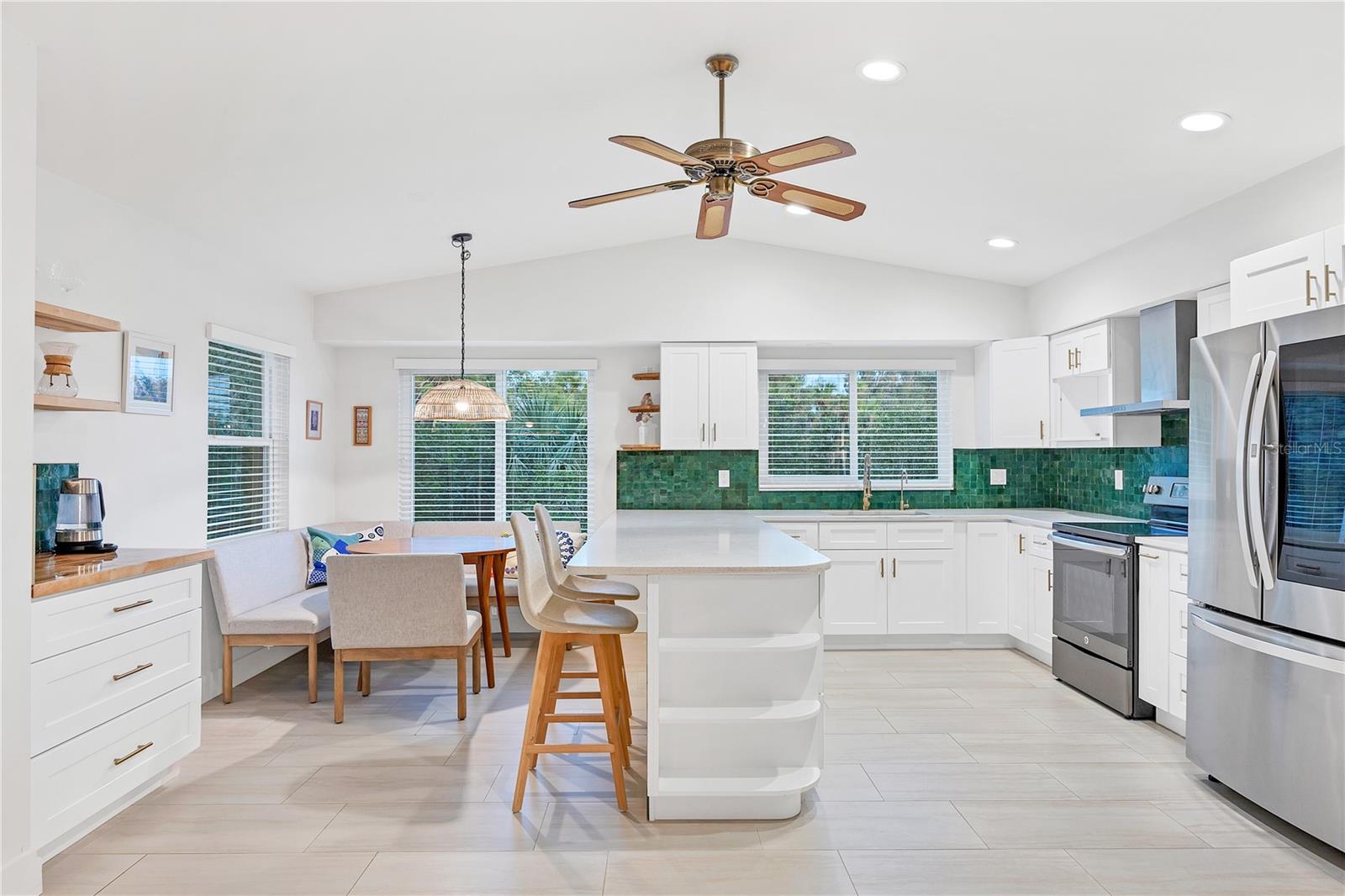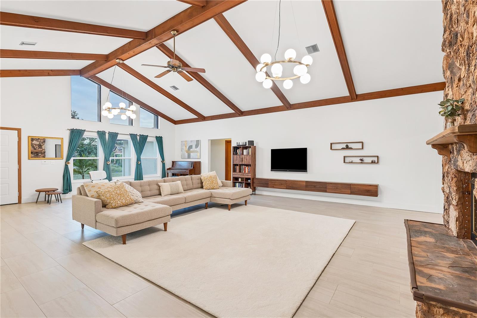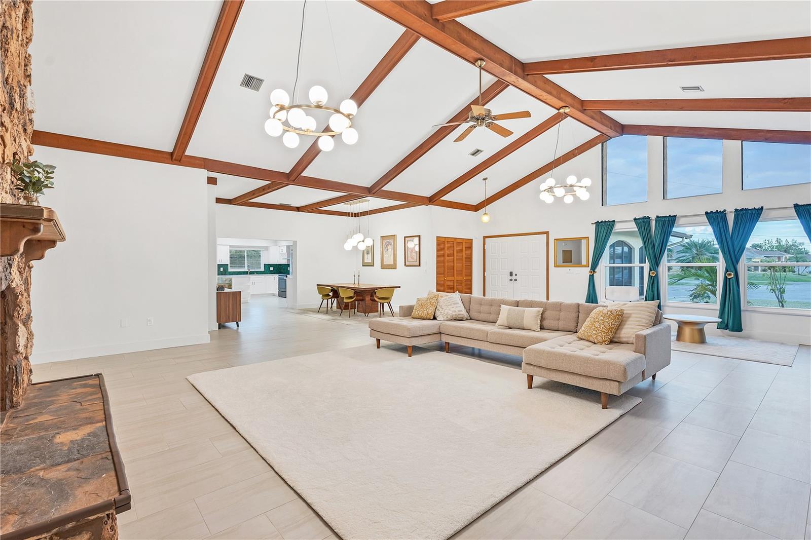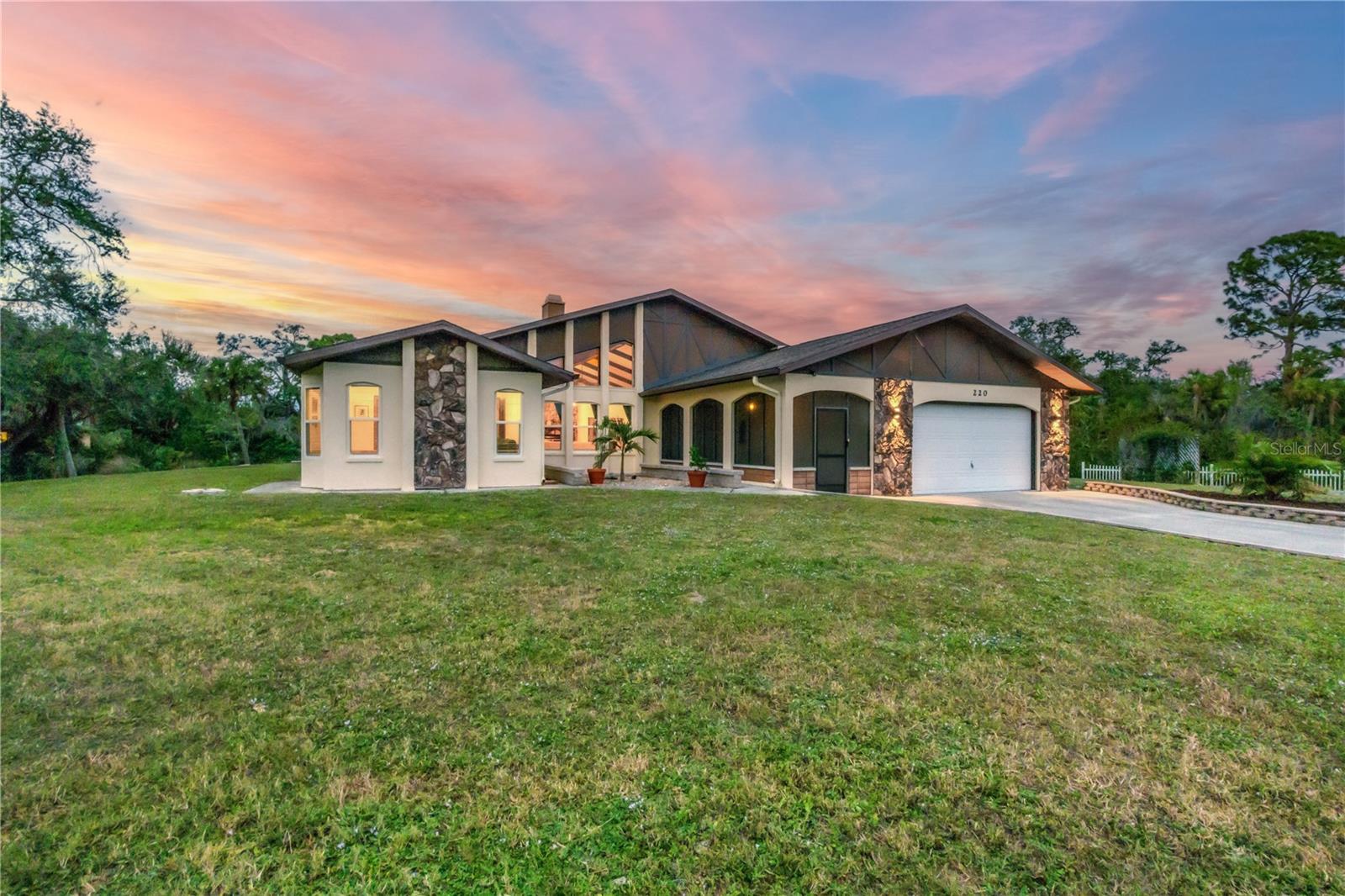 Uma ou mais fotos foram praticamente encenadas. Aninhado no final de um beco sem saída tranquilo, este retiro privado abrange quase meio hectare e possui 260 pés de fachada cênica do rio Myakka. A casa deslumbrante combina habilmente atualizações modernas com a beleza natural de seus arredores, oferecendo privacidade, vistas deslumbrantes e inúmeras oportunidades de vida ao ar livre. O exterior apresenta paisagismo tropical, revestimento de pedra, detalhes em madeira e janelas grandes, criando uma atmosfera convidativa. Ao entrar na entrada frontal exibida, você é recebido por elegantes pisos de ladrilhos modernos, tetos abobadados com vigas de madeira e luminárias atualizadas em todo o espaço. A cozinha recentemente remodelada é o deleite de um chef, exibindo bancadas de quartzo, armários de agitadores, utensílios de aço inoxidável, um backsplash de azulejos de esmeralda, acessórios de ouro, um café, uma área de refeitórios e uma despensa espaçosa. A ampla sala expansiva de 27 'x 36' é cheia de luz natural de janelas de grandes dimensões e apresenta uma deslumbrante lareira de pedra de dupla face e um centro de entretenimento flutuante. A versátil sala da Flórida, que oferece vista para o rio e um mini-divisão A/C, é perfeito para uso como sala de estar formal, escritório, biblioteca ou academia. Saia para a grande varanda coberta de cobertura, projetada para desfrutar do ambiente tranquilo enquanto com vista para a paisagem de Myakka River e exuberante da Flórida. O quintal considerável oferece amplo espaço para uma piscina, e a beira do rio apresenta oportunidades para um lançamento de doca ou caiaque, perfeito para aventuras aquáticas. A suíte do proprietário serve como um paraíso tranquilo, com tetos abobadados, armários duplos e acesso à sala da Flórida. Seu banheiro privativo renovado possui uma banheira independente com um backsplash moderno de ladrilhos, uma vaidade de pia dupla e um chuveiro para passear com ardósia. Localizado na desejável área do porto norte, esta casa fica a poucos minutos das renomadas fontes minerais quentes e da Floresta do Estado de Myakka, onde você pode desfrutar de caminhadas, ciclismo, caiaque e muito mais. Parques próximos, campos de golfe, compras, refeições e opções de entretenimento tornam essa propriedade a mistura perfeita de beleza natural e conveniência cotidiana. Esta é a sua casa perfeita? Reserve uma exibição hoje!