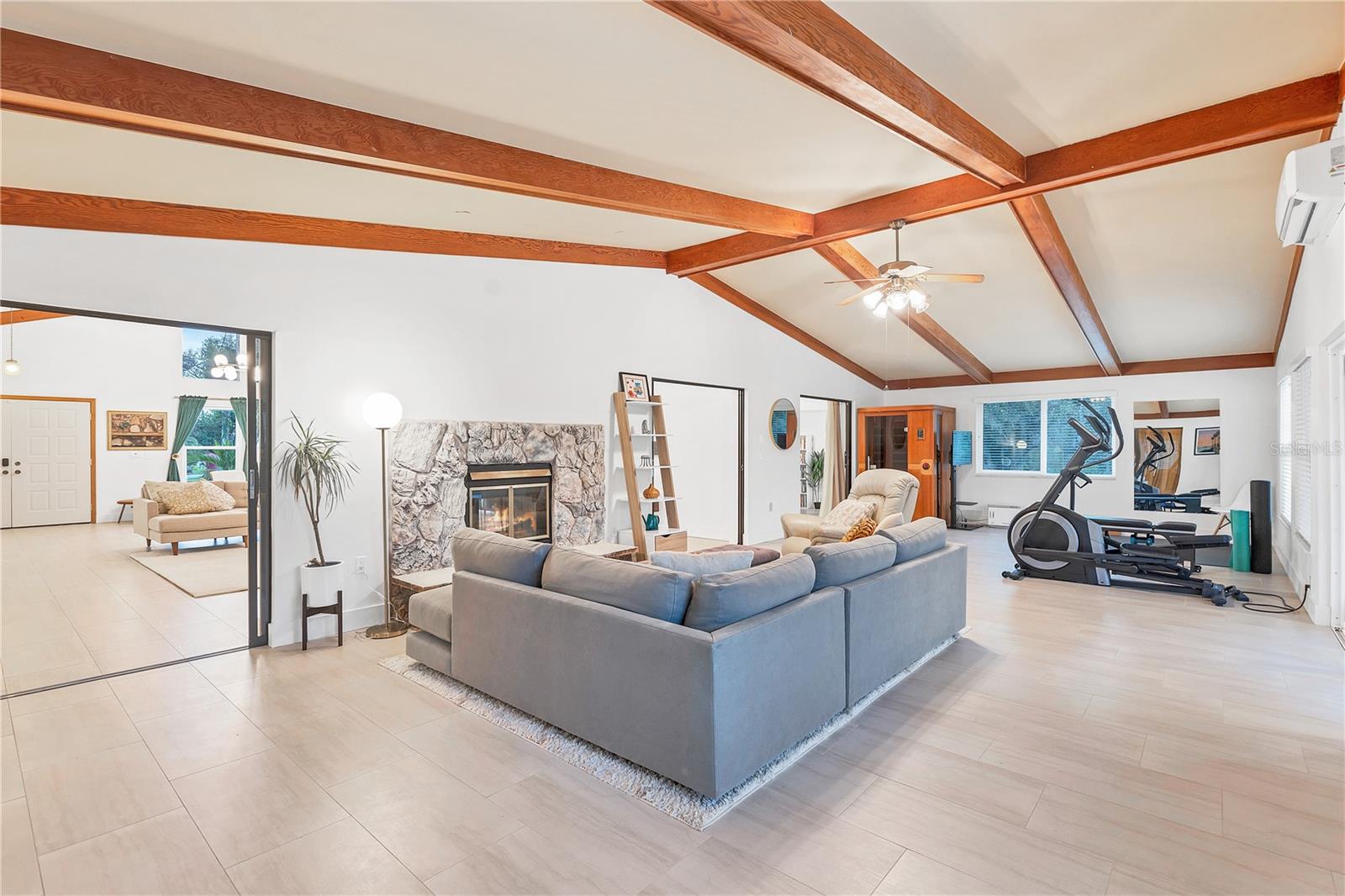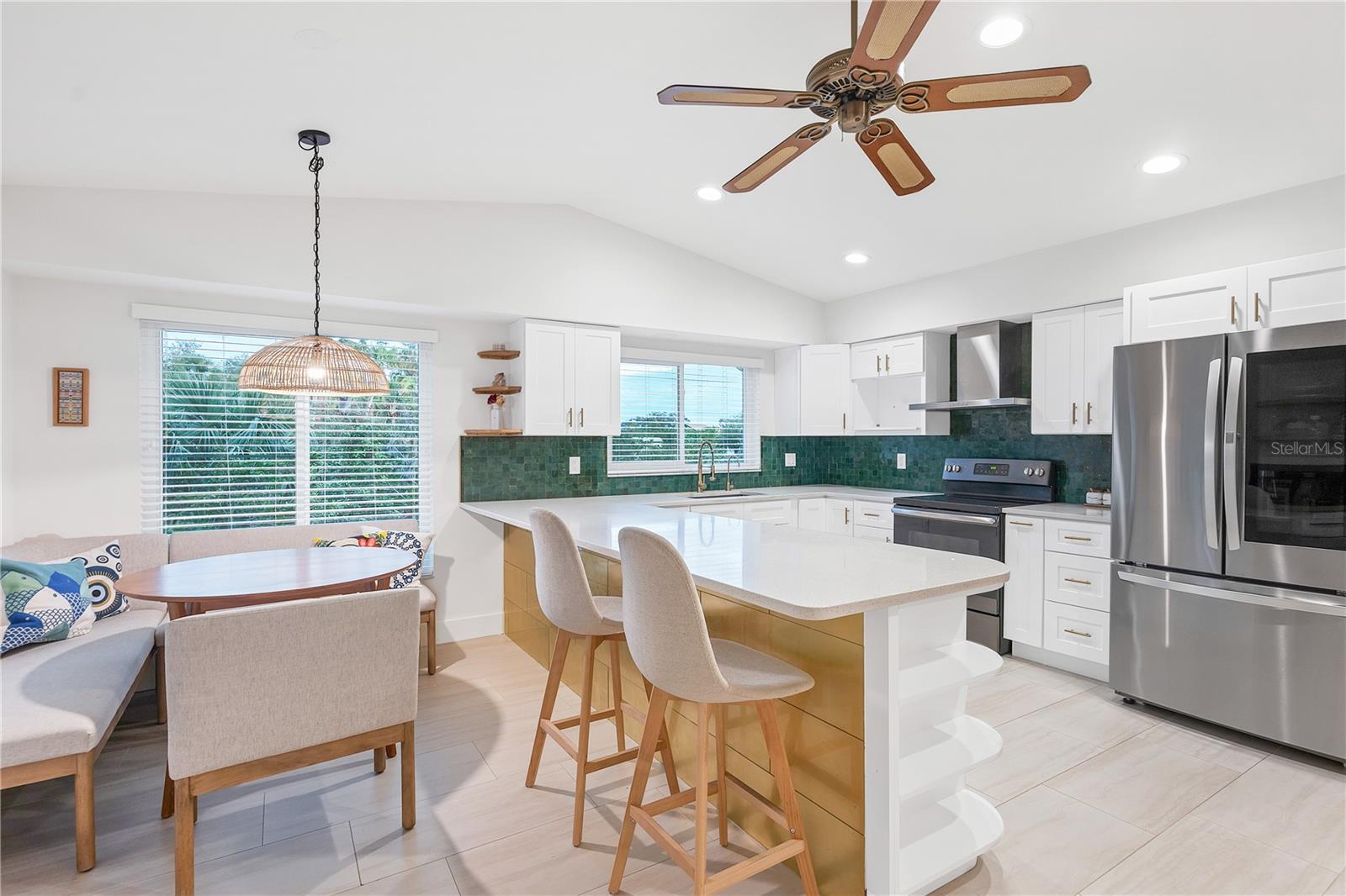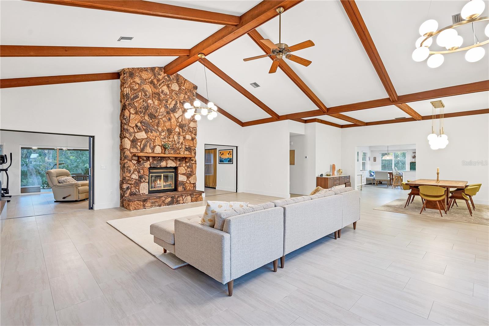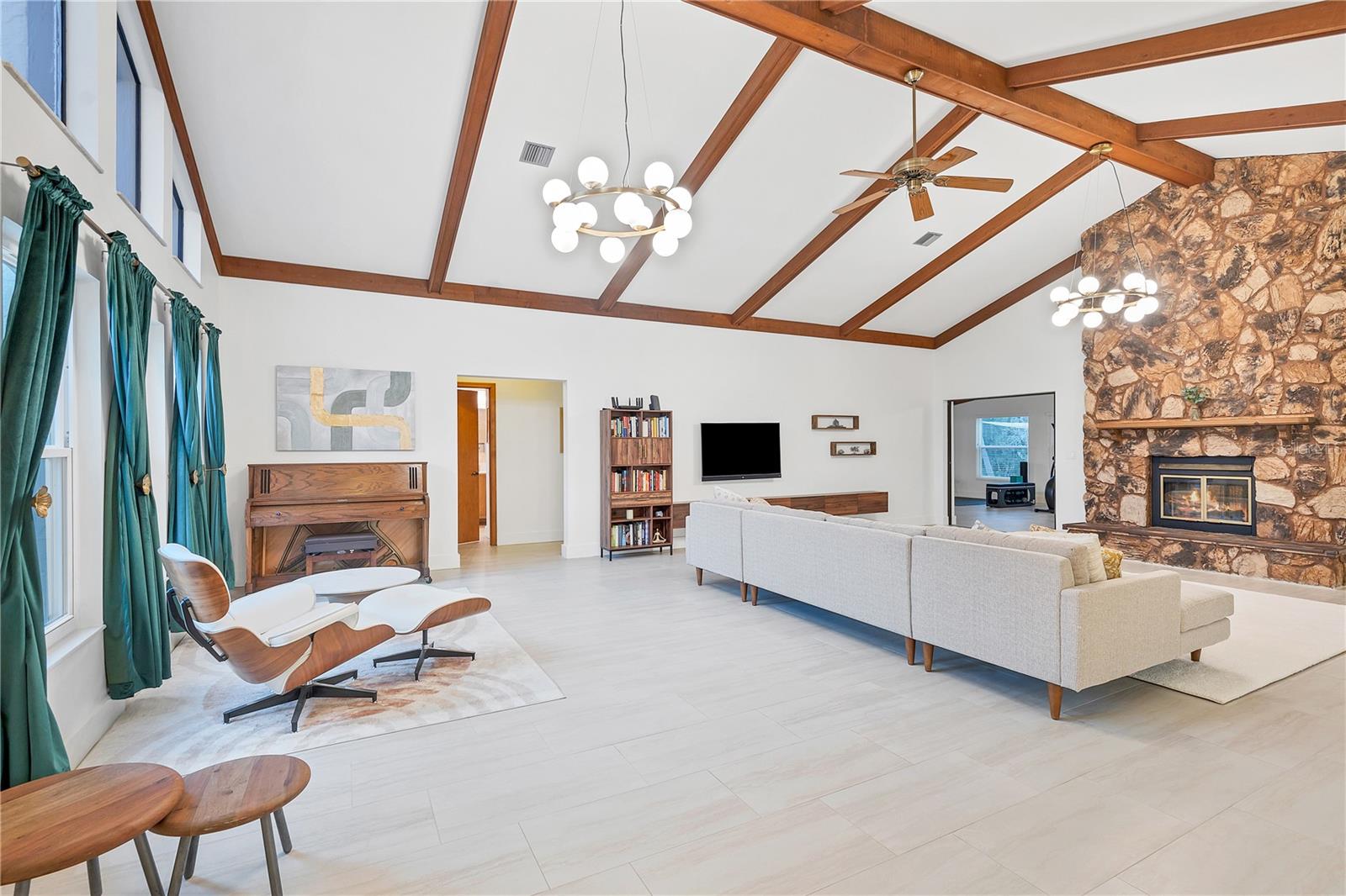 Uma ou mais fotos foram praticamente encenadas. Aninhado no final de um beco sem saída tranquilo, este retiro privado abrange quase meio hectare e possui 260 pés de fachada cênica do rio Myakka. A casa deslumbrante combina habilmente atualizações modernas com a beleza natural de seus arredores, oferecendo privacidade, vistas deslumbrantes e inúmeras oportunidades de vida ao ar livre. O exterior apresenta paisagismo tropical, revestimento de pedra, detalhes em madeira e janelas grandes, criando uma atmosfera convidativa. Ao entrar na entrada frontal exibida, você é recebido por elegantes pisos de ladrilhos modernos, tetos abobadados com vigas de madeira e luminárias atualizadas em todo o espaço. A cozinha recentemente remodelada é o deleite de um chef, exibindo bancadas de quartzo, armários de agitadores, utensílios de aço inoxidável, um backsplash de azulejos de esmeralda, acessórios de ouro, um café, uma área de refeitórios e uma despensa espaçosa. A ampla sala expansiva de 27 'x 36' é cheia de luz natural de janelas de grandes dimensões e apresenta uma deslumbrante lareira de pedra de dupla face e um centro de entretenimento flutuante. A versátil sala da Flórida, que oferece vista para o rio e um mini-divisão A/C, é perfeito para uso como sala de estar formal, escritório, biblioteca ou academia. Saia para a grande varanda coberta de cobertura, projetada para desfrutar do ambiente tranquilo enquanto com vista para a paisagem de Myakka River e exuberante da Flórida. O quintal considerável oferece amplo espaço para uma piscina, e a beira do rio apresenta oportunidades para um lançamento de doca ou caiaque, perfeito para aventuras aquáticas. A suíte do proprietário serve como um paraíso tranquilo, com tetos abobadados, armários duplos e acesso à sala da Flórida. Seu banheiro privativo renovado possui uma banheira independente com um backsplash moderno de ladrilhos, uma vaidade de pia dupla e um chuveiro para passear com ardósia. Localizado na desejável área do porto norte, esta casa fica a poucos minutos das renomadas fontes minerais quentes e da Floresta do Estado de Myakka, onde você pode desfrutar de caminhadas, ciclismo, caiaque e muito mais. Parques próximos, campos de golfe, compras, refeições e opções de entretenimento tornam essa propriedade a mistura perfeita de beleza natural e conveniência cotidiana. Esta é a sua casa perfeita? Reserve uma exibição hoje!