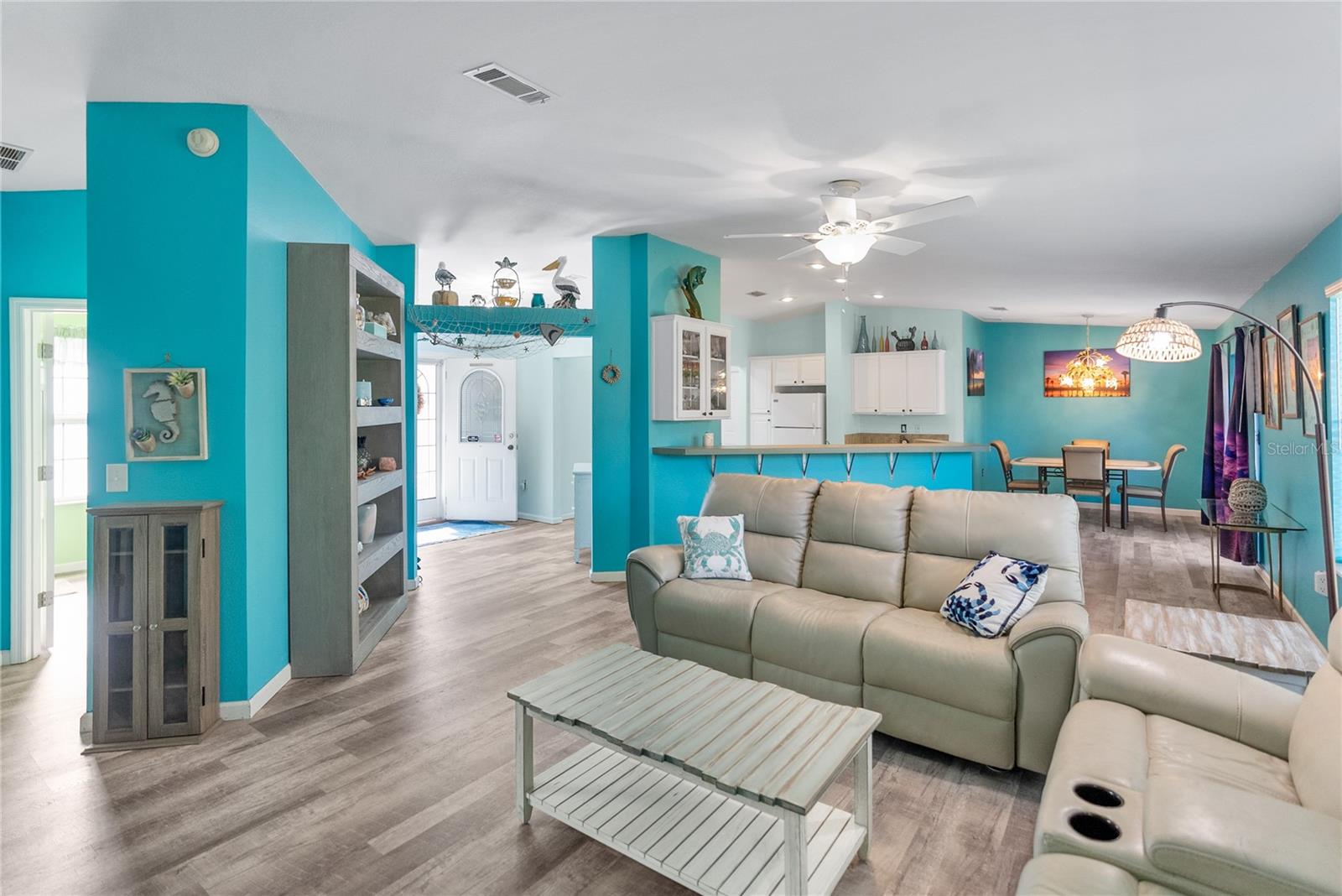 Bem-vindo a esta vibrante casa de 3 quartos e 2 banheiros em North Port, Flórida! Construído em 2004, essa propriedade meticulosamente mantida de 1.753 pés quadrados possui um quarto dividido e um piso plano aberto, fornecendo privacidade e um fluxo acolhedor. O interior foi pintado recém-pintado no ano passado em cores alegres de inspiração oeste, complementando o ambiente brilhante e arejado. Saia para a Lanai exibida na parte de trás da casa, onde você pode relaxar em paz e desfrutar do cenário sereno de um cenário natural de vegetação ao longo da lateral e da parte de trás do quintal. Atualizações recentes tornam esta mudança de casa pronta e eficiente em termos de energia. Um novo telhado e o piso de prancha de vinil de luxo à prova d'água foram instalados em 2023. O tanque de água do poço e o descarte de lixo foram substituídos em 2024. O sistema séptico foi reparado e limpo em 2024, a água suave foi atendida em 2023 e a unidade A/C foi atualizada em 2020. Com painéis solares e persianas de acordeão instaladas em 2019, esta casa é tão eficiente quanto segura. Esta propriedade combina charme, privacidade e conveniências modernas, tornando -o o lugar perfeito para chamar de lar. Não perca a chance de possuir esta jóia do porto norte! O lustre da sala de jantar, a caixa de correio Flamingo e as capas de cena de praia e as capas de troca não transmitem e serão substituídas antes do fechamento. Todas as dimensões da sala são aproximadas e devem ser verificadas pelo comprador.