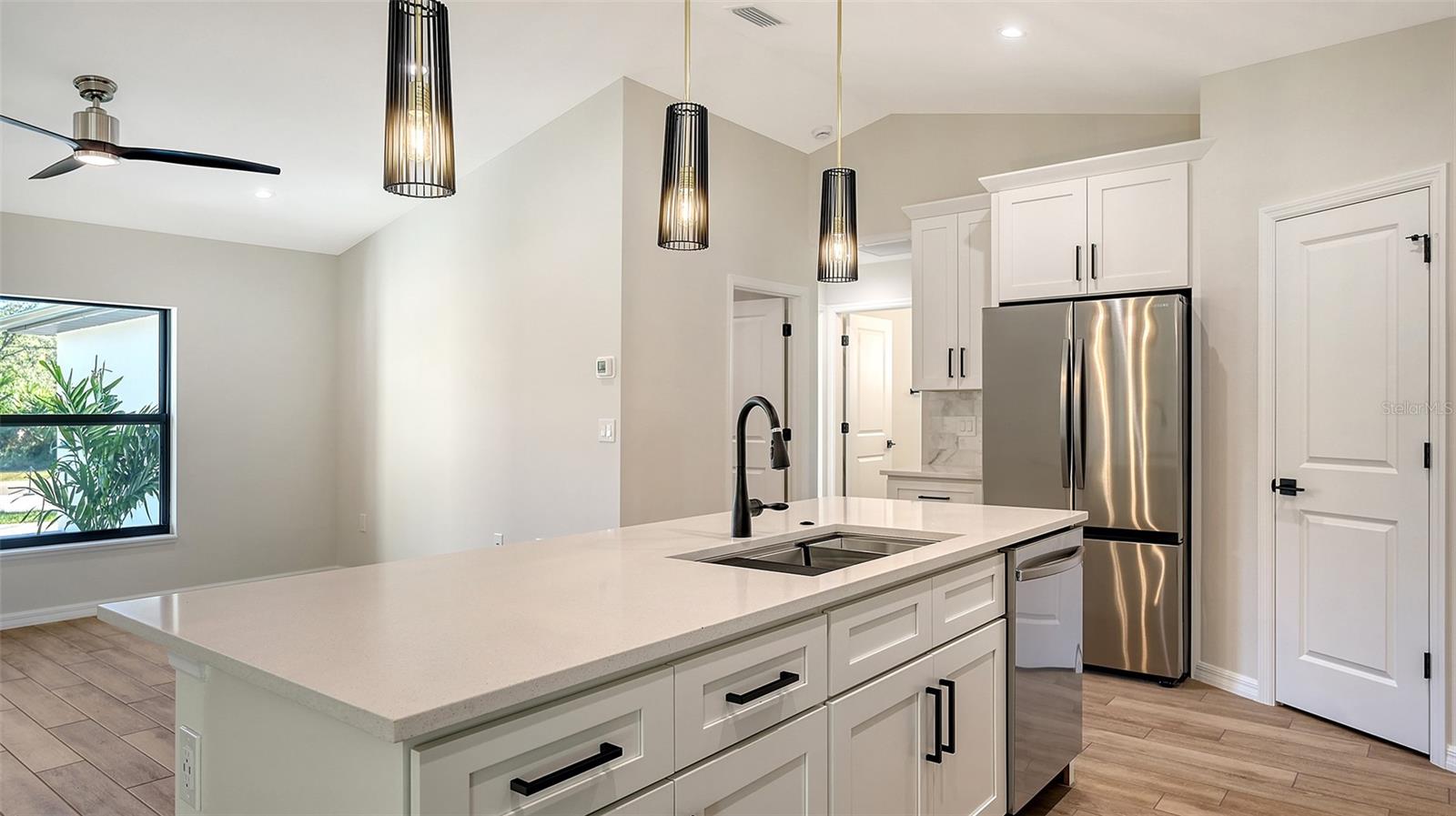 ÁGUA DA CIDADE - NOVA CASA DE CONSTRUÇÃO - CONCLUÍDA E PRONTA PARA MORAR. Você vai se apaixonar por esta linda casa PERSONALIZADA MODERNA de 3 quartos e 2 banheiros completos, onde nada foi esquecido no design e acabamento desta casa. A casa apresenta uma planta aberta e iluminada com tetos abobadados que chegam a mais de 3 metros de altura na área de estar principal. É perfeito para entretenimento. PORCELANATO EM TODA A CASA proporciona um fluxo relaxante que todo proprietário deseja. A cozinha do chef gourmet é um sonho que tem ARMÁRIOS AGITADORES DE MADEIRA SÓLIDA personalizados em dois tons de 42", bancadas de QUARTZO com uma ilha grande, eletrodomésticos de aço inoxidável premium atualizados e uma despensa. O grande quarto principal inclui um teto de bandeja, amplo natural luz, luzes LED e ventilador de teto de design. O banheiro principal da suíte de tirar o fôlego recebe você com azulejos de grande formato no box amplo e vidro sem moldura. porta, balcões de quartzo com pias duplas são realçados com espelhos e iluminação de designer. Esta casa com eficiência energética tem JANELAS E DESLIZADOR DE IMPACTO DE FURACÃO PESADOS, ILUMINAÇÃO RECESSADA LED DE 4" ATUALIZADA com luminárias LED DESIGNER MODERNAS e ventiladores de teto por toda parte. Apresentando pavimentação de estilo europeu na entrada da garagem e na varanda do pátio coberto de grandes dimensões. O sistema de irrigação está incluído nos gramados dianteiros e traseiros. Chern Construction oferece tranquilidade ao proprietário com garantia de 1 ano para o construtor. Localização privilegiada na crescente cidade de Porto Norte, perto de lojas e restaurantes e a uma curta distância de carro das praias! NÃO HOA, NÃO CDD! Agende sua exibição hoje mesmo, esta é IMPERDÍVEL!