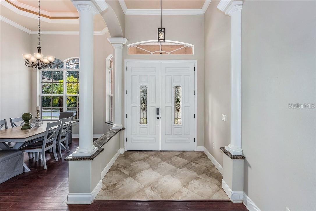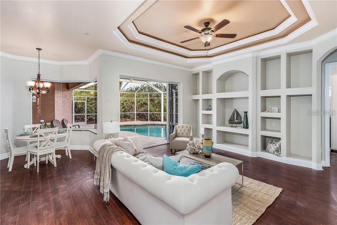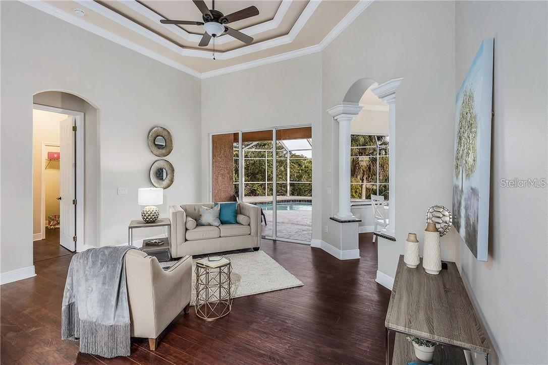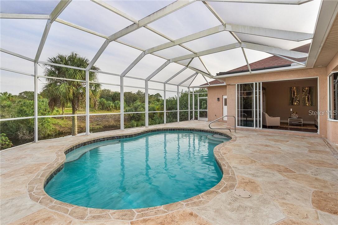 Eleve seu estilo de vida com este santuário de luxo construído para os maiores padrões de furacões, sem HOA e fora da zona de inundação! Você está cansado de frio/nevasca e pronto para experimentar um oásis quente de elegância? Não procure mais, esta residência no Waterfront Resort em North Port, Flórida. Construído para suportar condições adversas, esta casa remodelada oferece uma fuga perfeita dos elementos. Aninhado ao longo de um cinto verde de propriedade da cidade, possui belas vistas para a água, tetos altos, pilares majestosos, acabamentos de grife, granito combinando em todas as áreas úmidas; Parede do caule de 3 pés, janelas do furacão PGT e utilitários subterrâneos. Remodel Full 2019 Inc: Novo A/C, Furno, WH, pisos, acessórios para todas as portas e iluminação, armários refinados, tinta externa/interior e todos os novos aparelhos de aço inoxidável Frigidaire. Novo aquecedor de piscina, capa, sistema de água salgada e tela; abridor de porta de garagem 2022. Não há danos de nenhum furacão. Uso sazonal por 1 pessoa, nunca alugado e muito bem mantido. Lote adjacente à venda por proprietário separado. Acorde todas as manhãs com a serenidade da natureza, desfrute de um mergulho refrescante em sua piscina aquecida de água salgada privada e depois partiu para explorar o Blueway em seu caiaque - ou peixe diretamente da propriedade. Aproveite a visualização da vida selvagem: garças/garças/ibis; Gopher Tartoises e até um lince ocasional! 4 quartos e 3 banheiros oferecem muito espaço para visitantes e família. Se você é um comprador exigente que procura o máximo em luxo, funcionalidade e segurança, esta é a casa dos seus sonhos. Visite o site para explorar detalhes e fotos adicionais: yogaflorida.org/nimbus