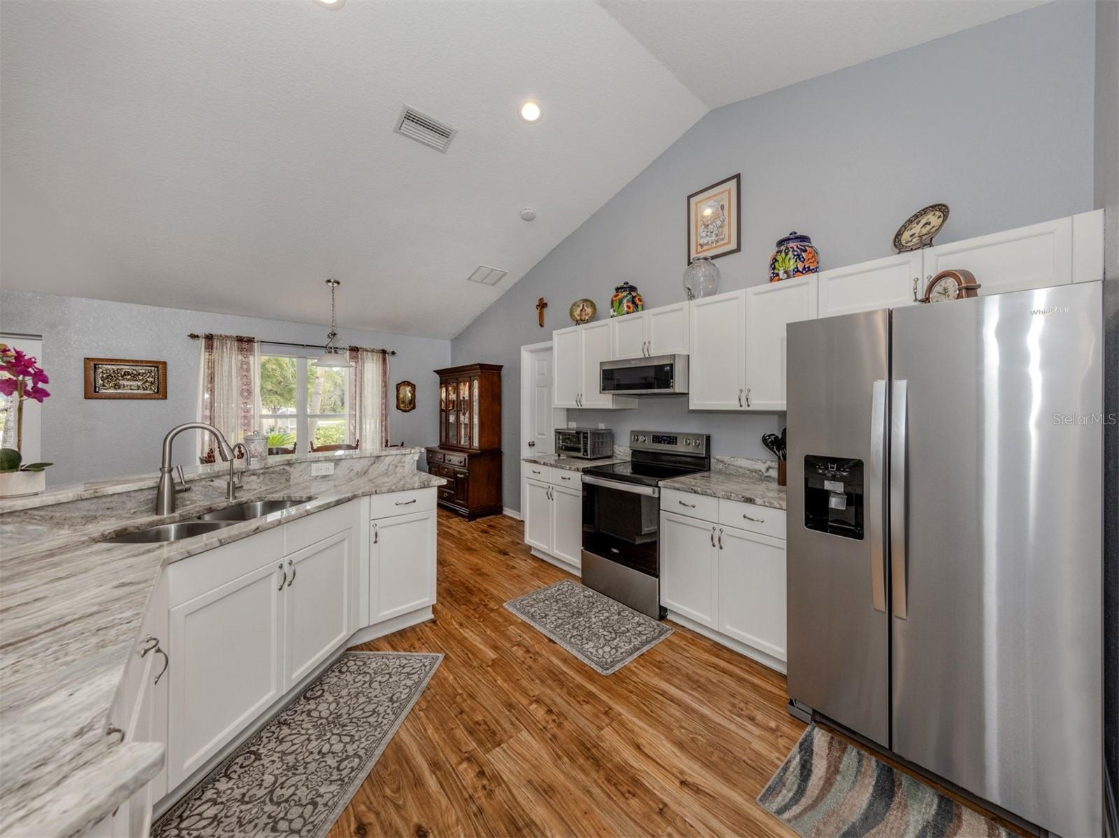 Bem-vindo à casa dos seus sonhos no ensolarado Porto Norte! Esta casa de 3 quartos e 2 banheiros lindamente conservada, construída em 2006, possui um escritório/escritório versátil e fica em um amplo terreno duplo - quase meio acre de espaço para chamar de seu. As atualizações recentes incluem um novo telhado (2022) e um novo ar condicionado (2021), garantindo uma vida sem preocupações. Os recursos adicionais incluem uma nova fossa séptica de fibra de vidro, um sistema de água com bloco de enxofre e venezianas para maior tranquilidade. No interior, você encontrará lindos pisos laminados na maior parte da casa. A cozinha atualizada possui impressionantes bancadas de granito, eletrodomésticos mais novos e sistema de osmose reversa, perfeito para preparar refeições com facilidade. A espaçosa sala grande com tetos abobadados cria uma atmosfera calorosa e convidativa. Saia para desfrutar do quintal enorme, completo com um pátio pavimentado, um toldo para sombra e um galpão de armazenamento. O exuberante paisagismo é apoiado por sistema de sprinklers e aprimorado com iluminação de baixa tensão, oferecendo beleza e praticidade. Esta casa está situada em um bairro de casas novas e terrenos baldios, proporcionando uma sensação de espaço e tranquilidade. Os pais de crianças mais novas irão apreciar a proximidade da Escola Primária Lamarque. Convenientemente localizada perto de lojas, restaurantes e muitas comodidades de North Port, esta casa oferece a combinação perfeita de conforto, estilo e conveniência. Não perca esta oportunidade excepcional!