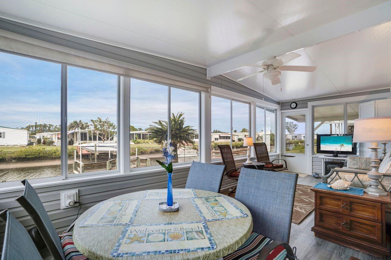 Bem-vindo ao retiro dos seus sonhos À BEIRA-MAR em Harbor Cove, com PREÇO DE VENDA! Descubra conforto e tranquilidade nesta casa atualizada e mobiliada de 2 quartos, 2 banheiros + sala localizada em uma comunidade rica em comodidades com mais de 55 pessoas ao longo do Rio Myakka com acesso ao Golfo do México. Entre em uma área de estar, jantar e cozinha de conceito aberto com muita luz natural que cria uma atmosfera excelente tanto para receber os hóspedes quanto para a vida cotidiana. A cozinha possui bancadas atraentes, gavetas deslizantes de fácil acesso e uma ilha para espaço extra de preparação com uma conveniente mesa de jantar próxima. A espaçosa e convidativa sala de estar é o lugar perfeito para relaxar. Experimente vistas serenas do canal a partir de sua grande varanda fechada com grandes janelas para o exterior (um adicional de 220 SF). Acorde no seu quarto principal com banheiro privativo e desfrute das lindas vistas do mar. Uma sala bônus versátil é ideal para um escritório, estúdio de arte ou espaço extra para dormir. O banheiro de hóspedes e as portas do segundo quarto são largas o suficiente para acomodar uma cadeira de rodas, se necessário. No exterior, o cais privado permite aos entusiastas da pesca e da água saltar para o barco e regressar mais tarde para um churrasco ou relaxar no pátio. Uma garagem coberta acomoda vários veículos e há um prático galpão de 15' x 8'. As atualizações recentes incluem um novo sistema de ar condicionado, lavadora e secadora (2024), novo telhado, tetos e iluminação (2023), caixa de disjuntores atualizada e mini-split de varanda (2022) e muito mais. As baixas taxas mensais de HOA de US$ 150 concedem acesso a duas piscinas, spa, academia, tênis, bocha e picles, além de corte de grama e manutenção de paredão. Divirta-se e faça amigos em bailes, festas e aulas no impressionante clube com vista para a marina. Os amantes da natureza irão desfrutar da paisagem exuberante e das inúmeras oportunidades de observação da vida selvagem. Você estará a uma curta distância de belas praias, restaurantes, mercados de agricultores, festivais de rua, lojas e hospitais. Não perca a chance de chamar este oásis à beira-mar de sua casa - agende uma exibição hoje mesmo!