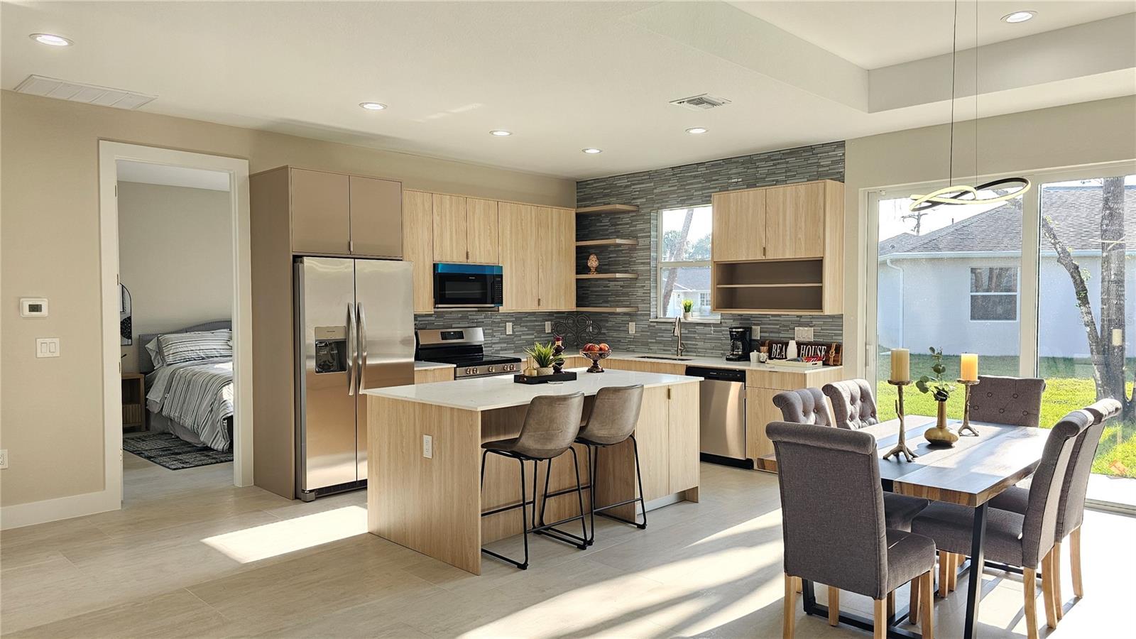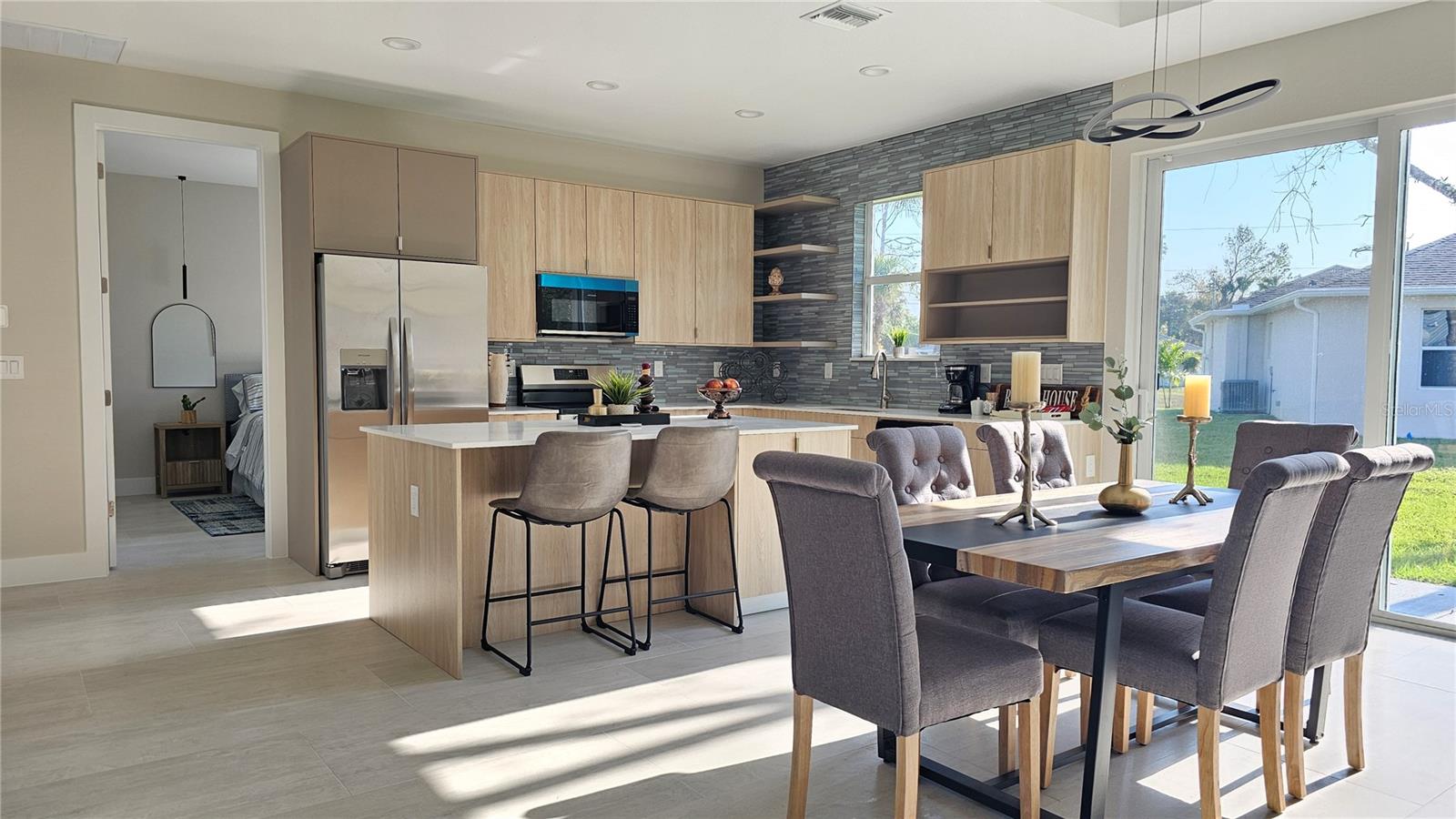Bem -vindo à sua casa de sonho! Esta residência unifamiliar requintada e recém-construída oferece três quartos de tamanho generoso e 2 banheiros lindamente projetados, combinando perfeitamente o conforto moderno com o estilo atemporal. Ao entrar, você será bem-vindo por uma abundância de luz natural que surge através de janelas de impacto por furacões, que também fornecem proteção excepcional. As principais áreas de estar apresentam pisos elegantes de ladrilhos de luxo, criando uma atmosfera acolhedora e convidativa. No coração da casa, você encontrará uma cozinha contemporânea equipada com utensílios de aço inoxidável elegante e uma ilha espaçosa, ideal para hospedar e divertir convidados. A suíte master serve como um retiro privado, completo com um banheiro privativo e um closet. Os dois quartos adicionais são igualmente convidativos, cada um oferecendo amplo espaço no armário. O segundo banheiro é cuidadosamente projetado com uma única vaidade e uma combinação conveniente de chuveiro/banheira. Do lado de fora, você pode relaxar no quintal expansivo ou aproveitar a serenidade de uma lanai coberta - perfeita para sediar reuniões ou desfrutar de noites tranquilas sob as estrelas. Não perca a chance de ver essa casa incrível pessoalmente - escaste sua exibição hoje!