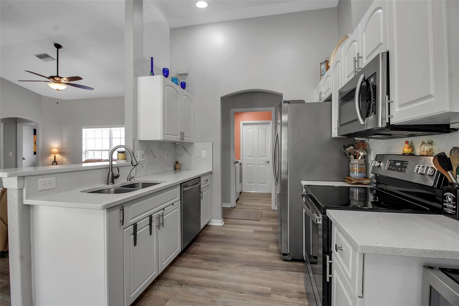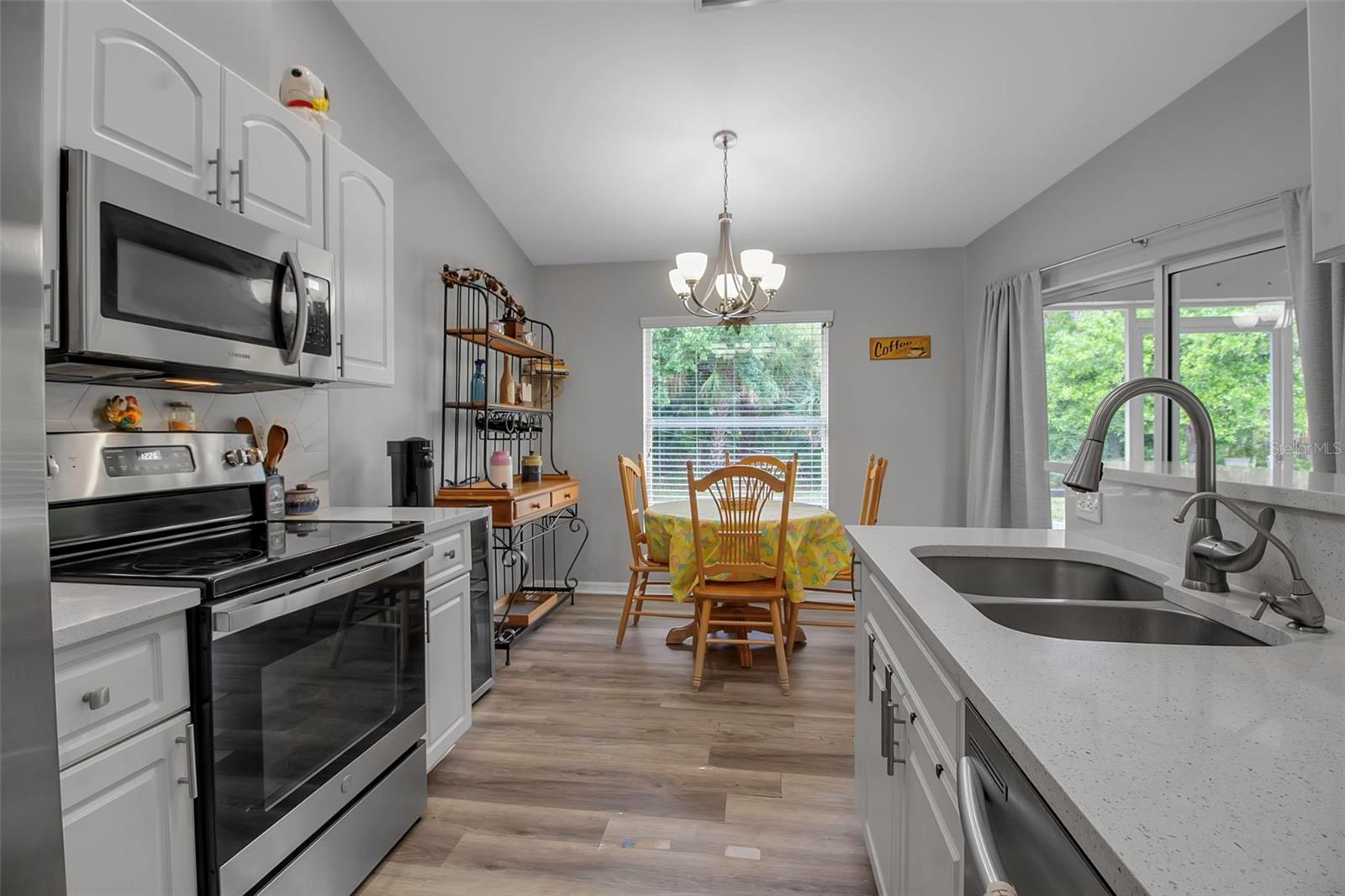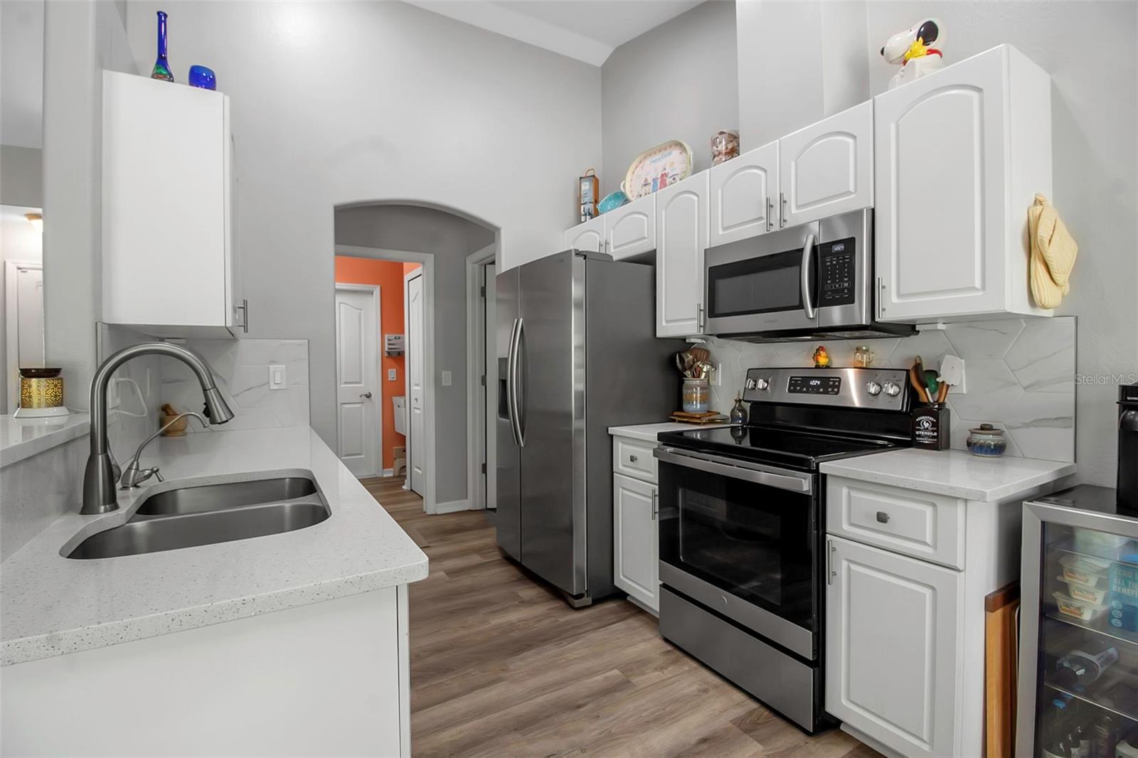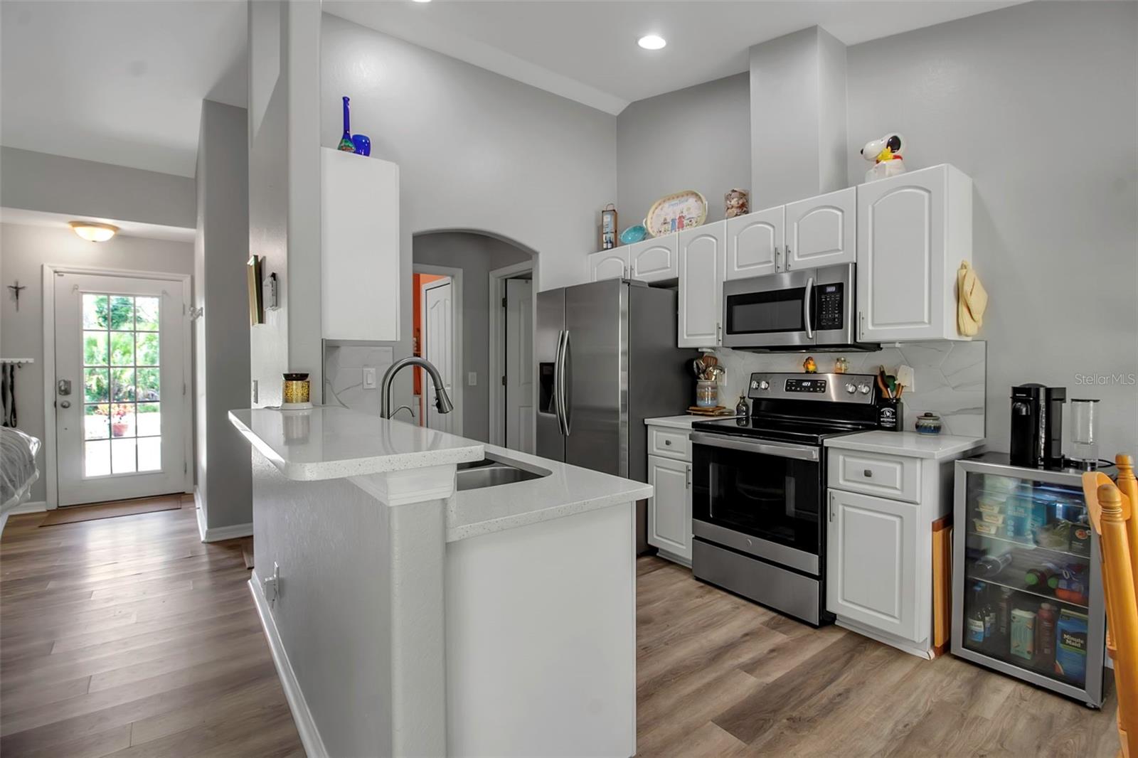 Entre neste lindamente mantido 3 quartos, 2 banheiros em casa com 1.366 pés quadrados de espaço confortável, uma garagem de 2 carros e sem HOA !!! Ao entrar, você é recebido por um piso plano aberto com tetos abobadados e uma espaçosa sala de estar cheia de luz natural, completa com portas deslizantes que se abrem para uma vista tranquila e quintal. A cozinha se conecta perfeitamente à área de jantar e possui bancadas de granito, utensílios de aço inoxidável, uma pia de aço inoxidável dupla, uma nova gama de vidro e uma área de contador de comer para refeições diárias. A grande janela da sala de jantar fornece vistas pacíficas do quintal sereno, criando o cenário ideal para refeições diárias ou entretenimento. A planta baixa oferece privacidade, com a suíte master de tamanho generoso localizado em um lado da casa com um closet e um banheiro privativo, que apresenta um chuveiro. No lado oposto, há dois quartos adicionais que compartilham um banho completo com uma banheira. A garagem foi cuidadosamente convertida em espaço extra com um mini sistema de A/C dividido, tornando -o ideal para uma sala de jogos, academia em casa ou sala de mídia. Saia até a exibida em Lanai e relaxe enquanto você aprecia o quintal tranquilo e arborizado, que é perfeito para animais de estimação ou mesmo para uma futura piscina. Recursos adicionais incluem pisos de vinil de luxo novos por toda parte, um amaciador de água inteira substituído em 2022 e uma nova lavadora e secadora inteligente LG ThinQ. Esta casa oferece flexibilidade incrível, atualizações modernas e infinitas possibilidades sem o ônus das restrições do HOA. Esta casa também está convenientemente localizada perto de escolas, compras, restaurantes e as impressionantes praias do Golfo, com fácil acesso à I-75 em Nápoles ou Tampa. Não perca a oportunidade de possuir esta casa lindamente projetada e comece seu estilo de vida da Flórida!