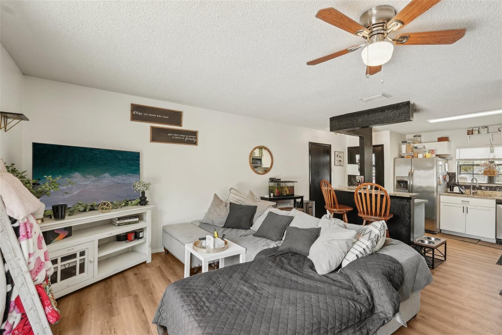 MOVIMENTO PRONTO | 2018 telhado | 2021 HVAC | Sem restrições de ação | Espaço para uma piscina Bem-vindo a esta casa lindamente atualizada de 2 quartos e 2 banheiros, oferecendo a mistura perfeita de conforto, estilo e conveniência. Apresentando um telhado de 2018 e 2021 HVAC, esta casa está realmente pronta para a mudança com grandes atualizações já em vigor. Ao entrar, você será recebido por uma planta baixa e brilhante que cria uma atmosfera espaçosa e convidativa. O interior mostra o piso de tábuas de vinil com aparência de madeira de luxo por toda parte e uma paleta de cores limpa e neutra que combina com qualquer decoração. A cozinha é elegante e funcional, com bancadas em granito, utensílios de aço inoxidável, uma área de comer e assentos de barra que abre para a sala de estar de grandes dimensões. O layout acomoda facilmente uma área de jantar e espaço para lounge - ou adaptar -o para se encaixar no seu estilo de vida. A suíte primária, localizada na frente da casa, possui um banho privado de banheiro privativo com um chuveiro de azulejos e vaidade atualizada. O segundo quarto é generosamente de tamanho e tem vista para o quintal, enquanto o banheiro do salão inclui uma banheira/chuveiro de azulejos e uma vaidade moderna. Saia para aproveitar o grande quintal totalmente cercado, que oferece amplo espaço para uma piscina, jardim ou área de recreação. Localizado em um local central, você está a menos de 1,4 quilômetros de restaurantes, compras, supermercados e farmácias. Além disso, desfrute de fácil acesso a Venice Beach, Englewood Beach e outros destinos da Costa do Golfo - todos dentro de 28 quilômetros. Sem restrições de ação, ótima localização e mudança de movimento-esta é uma casa imperdível!