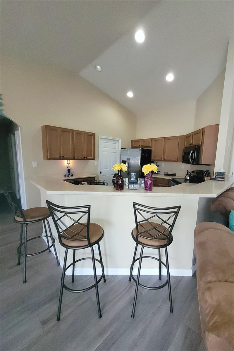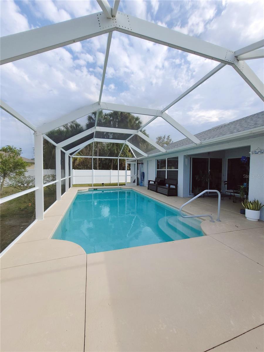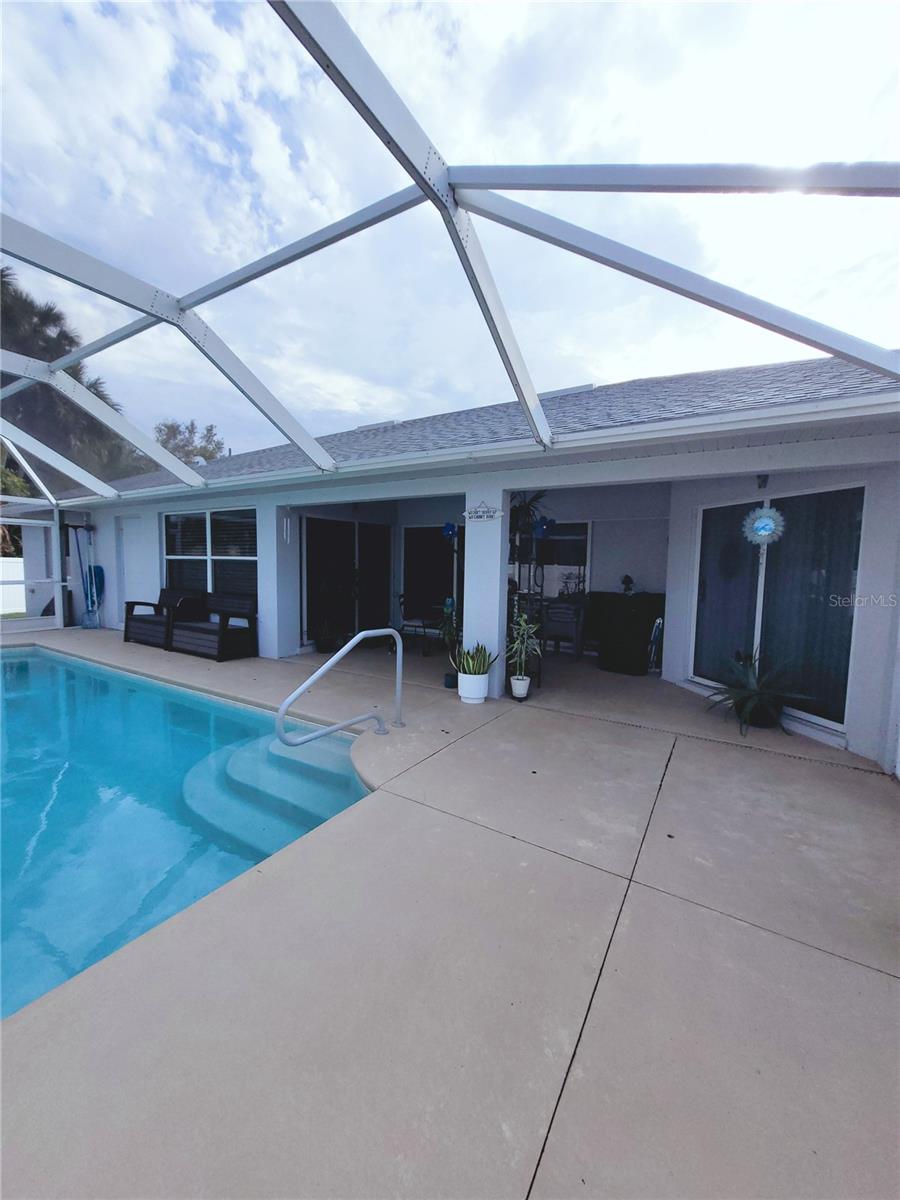 Linda piscina em casa no belo lote de canto de grandes dimensões. Acesso com portas deslizantes a Lanai enjaulada e piscina do quarto principal, sala de estar e sala de jantar. Great Room com tetos abobadados tem portas francesas que levam a Den. O plano dividido fornece privacidade com um grande quarto principal com armários duplos. Recentemente atualizado o banheiro principal com uma bela banheira de imersão e caminhe pelo chuveiro. Lavanderia interior e despensa, com armário adicional de despensa no corredor. Recentemente atualizado em 2023: telhado, unidade CA, banheiro principal. Também incluiu o sistema de filtragem de água Kinetico, aquecedor de piscina com eficiência energética, conversor de água salgada de duas velocidades da bomba de piscina.