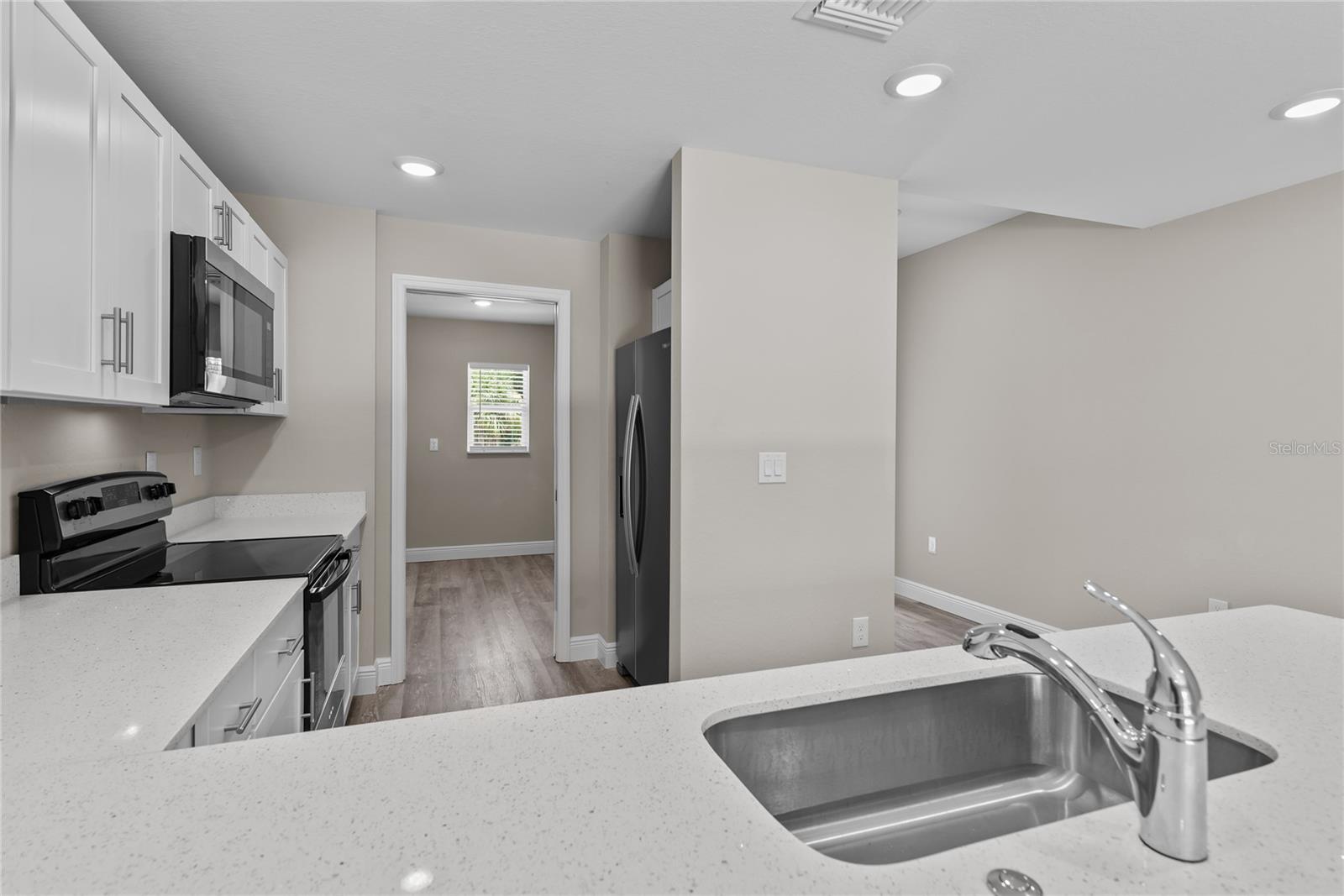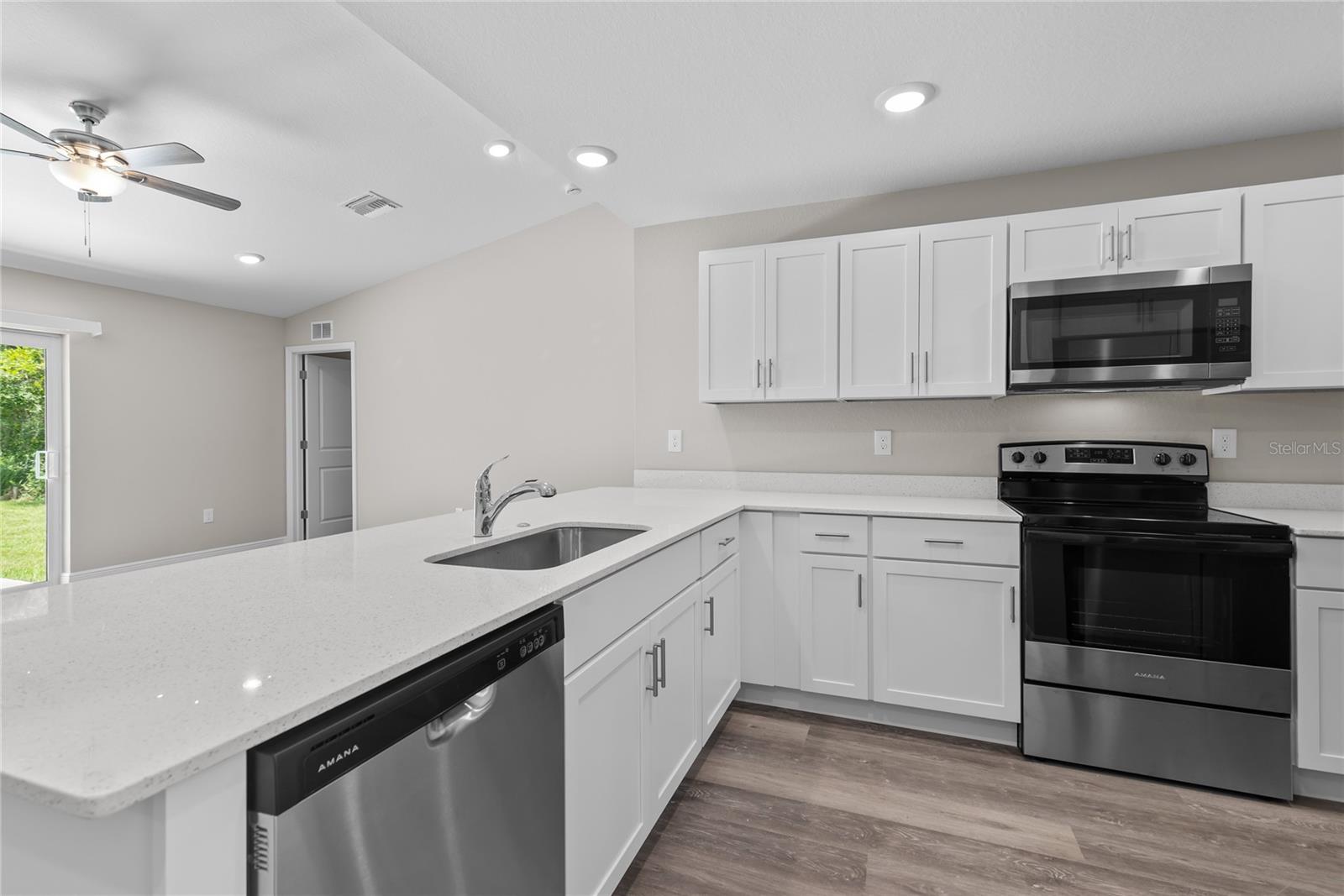 Em construção. Nova construção, a ser concluída em abril de 2024. Esta casa lindamente decorada possui 1353 pés quadrados de área de estar com três quartos e dois banheiros completos. A cozinha apresenta bancadas de quartzo com um backsplash de quatro polegadas, aparelhos inoxidáveis e armários de estilo agitador. Home apresenta amplos rodapés de estilo colonial e laminado luxuoso por toda parte, as características externas incluem janelas de impacto de furacões, garagem de concreto, Bahia Sod e um pacote de paisagem do quintal da frente. Ótima casa para iniciantes para a família jovem ou ideal para uma família aposentada.