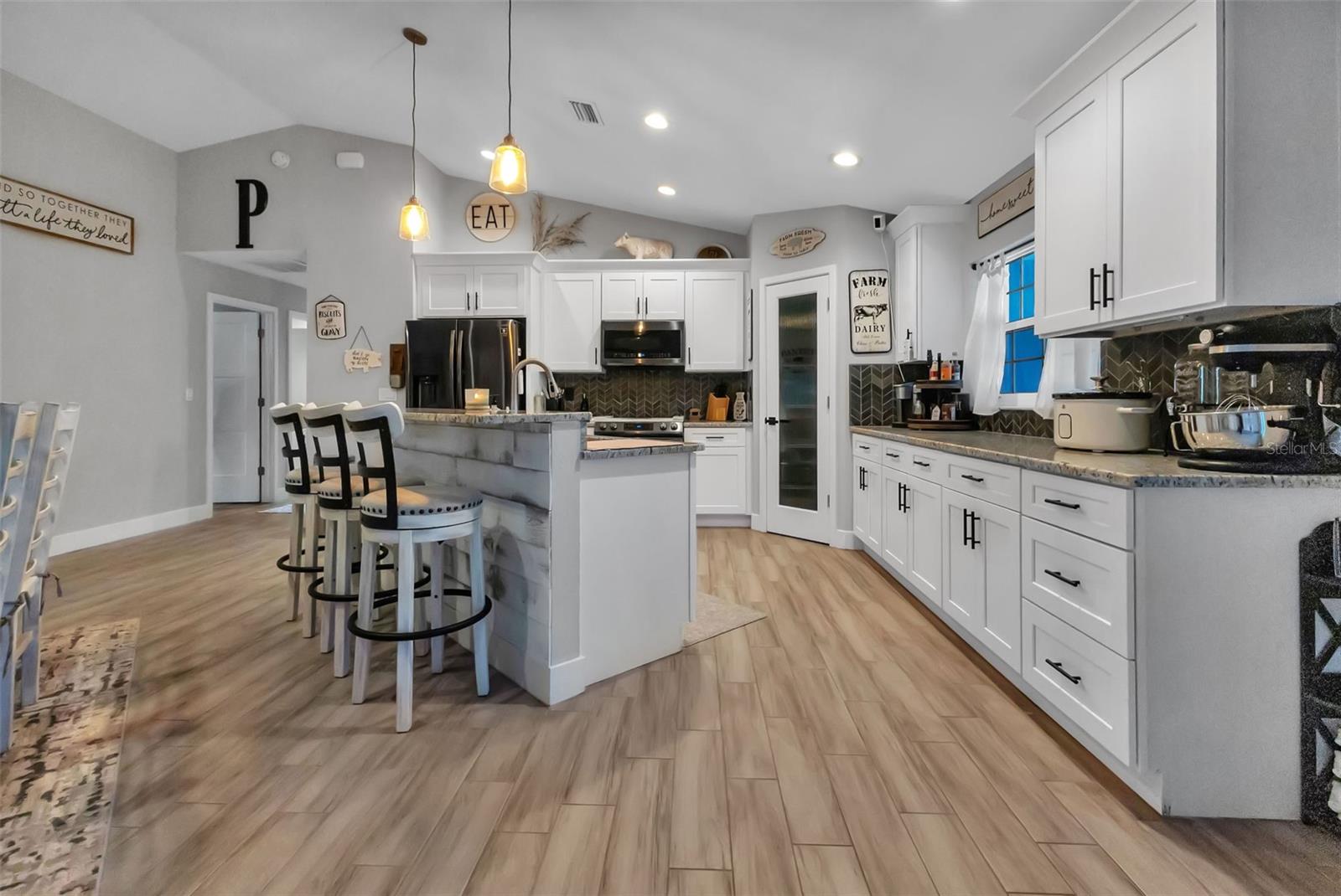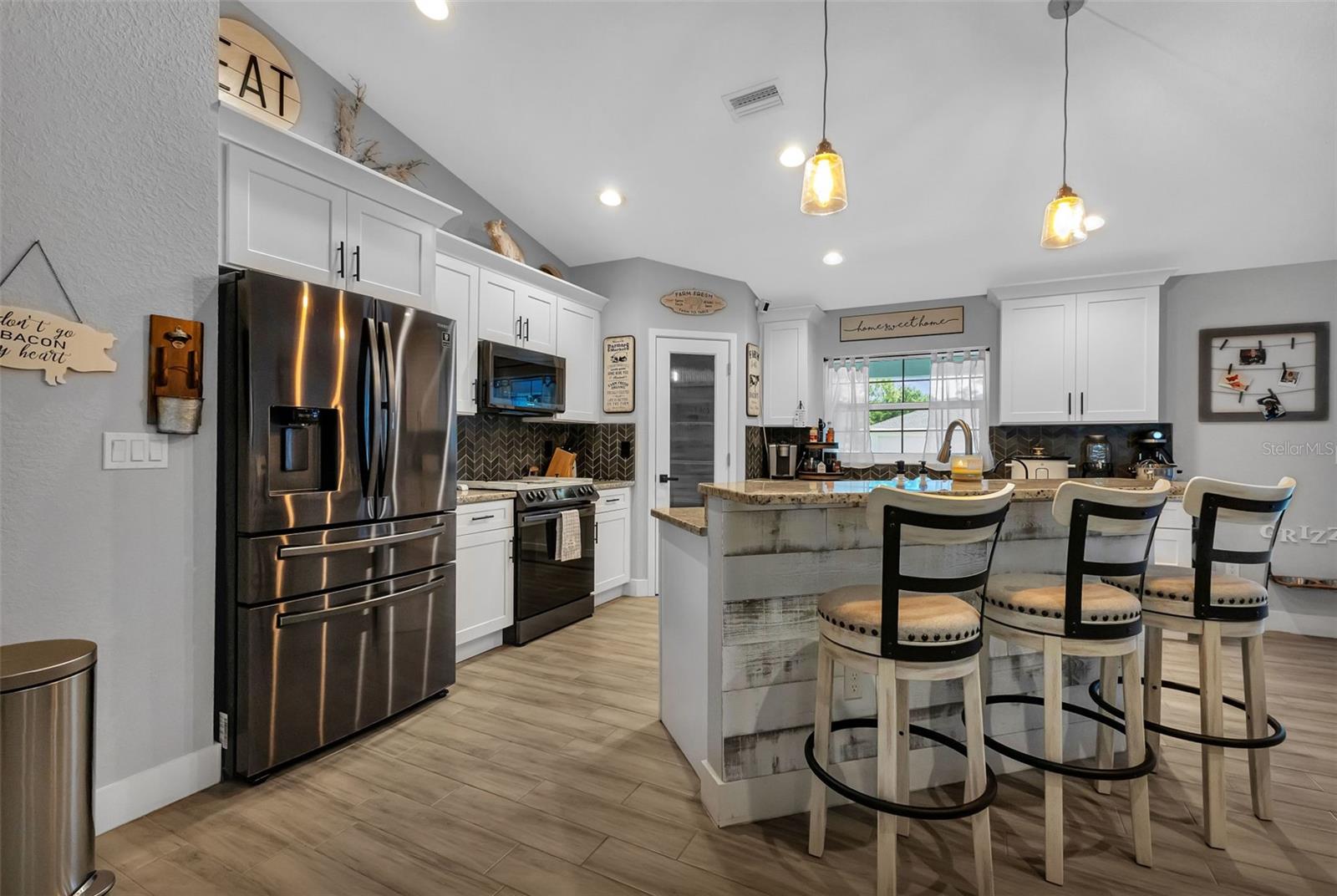 Bem -vindo à sua casa de sonho! Essa beleza personalizada, construída em 2020, oferece o epítome do conforto e do luxo modernos. Situado em um estacionamento espaçoso, esta cama de 3 camas, 2 banheiros, 2 carros de garagem, possui 1.842 pés quadrados sob o ar, proporcionando amplo espaço para uma vida graciosa. Ao entrar, você será recebido por pisos de ladrilhos de prancha que fluem perfeitamente por toda a casa, criando um ambiente elegante e contemporâneo. O coração da casa é a cozinha deslumbrante, adornada com bancadas em granito, utensílios de aço inoxidável atualizados e uma ilha expansiva perfeita para empreendimentos culinários. A planta aberta conecta sem esforço a grande sala, a área de jantar e a cozinha, tornando o entretenimento. A suíte master é um verdadeiro santuário, ocupando todo o lado esquerdo do lar para a privacidade final. Aqui, você encontrará os armários dele e dos seus armários, dele e de granito dela, um chuveiro totalmente azulejo dele e do passeio, uma luxuosa banheira independente e uma área de banheiro privativo. Os tetos compartilhados acrescentam um toque de elegância, enquanto as portas francesas na grande sala levam ao Lanai traseiro, convidando a vida interior-outdoor. Lá fora, uma cerca de vinil envolve a propriedade, oferecendo privacidade e segurança. O impacto do furacão atualizado portas e janelas francesas acrescentam um toque sem preocupações durante a temporada de furacões. Desfrute da Flórida que vive o seu melhor na varanda da frente expansiva, esticando-se com 60 pés de comprimento ou relaxe na faixa traseira sob um telhado de treliça para grelhar e apreciar o pôr do sol. Dois quartos adicionais apresentam tetos compartilhados, amplo espaço no armário e luz natural abundante, tornando -os ideais para membros da família ou convidados. O segundo banheiro possui um chuveiro e pias duplas e penteado em granito, proporcionando conveniência e conforto para todos. Com seu design atencioso, acabamentos sofisticados e layout atencioso, esta casa oferece uma mistura perfeita de estilo e funcionalidade. Não perca a chance de tornar essa residência requintada a sua, agende sua exibição agora! Tipo de armário do quarto: Closet (quarto primário).