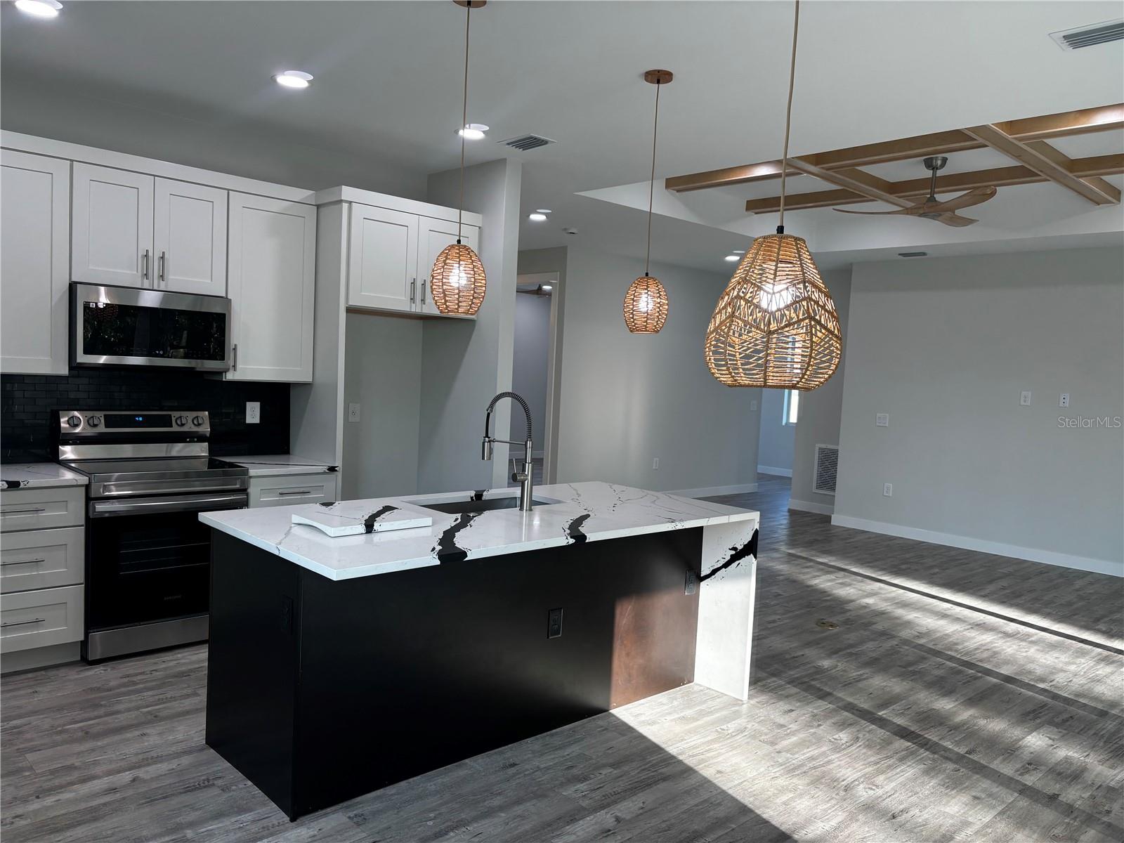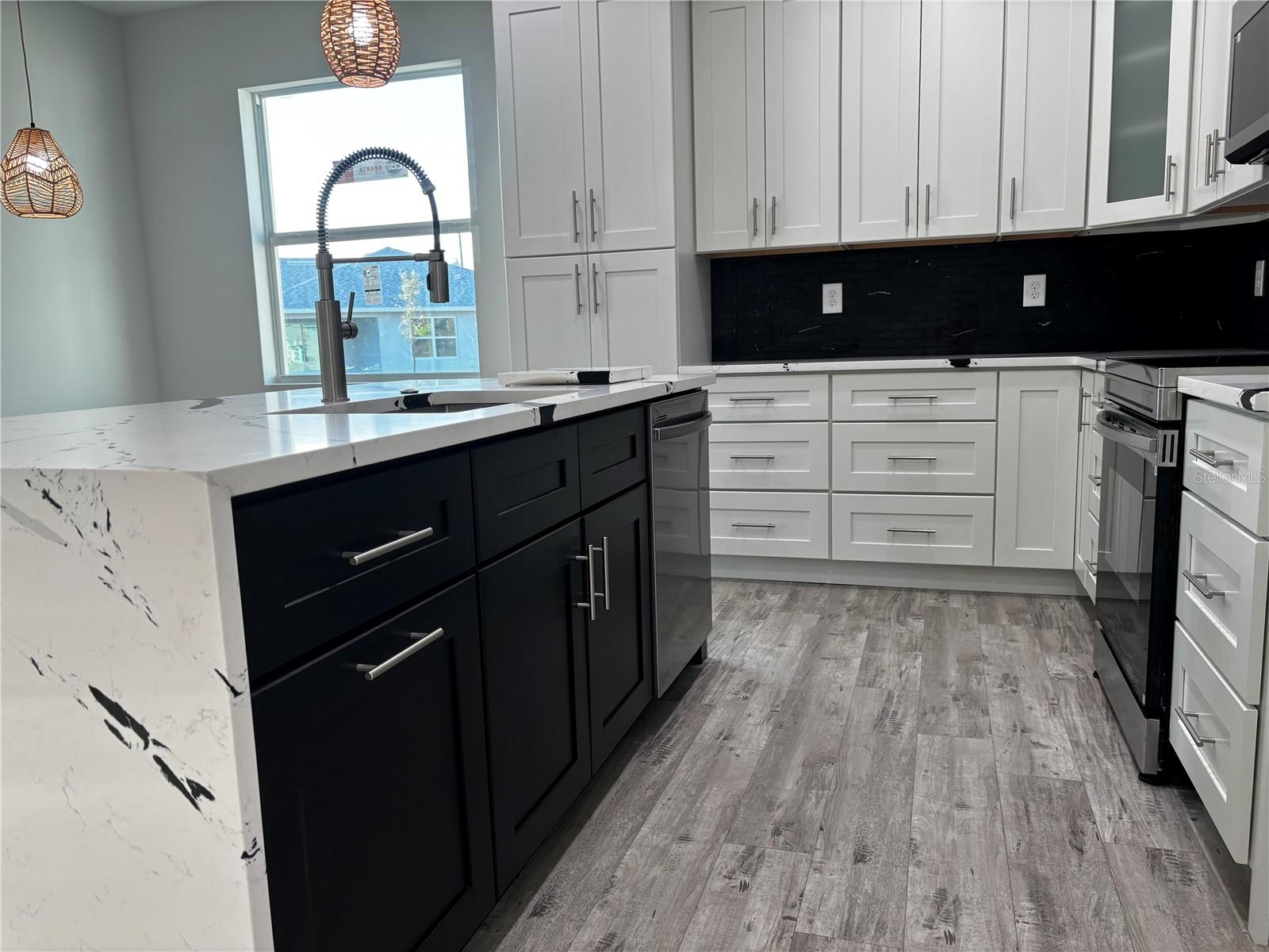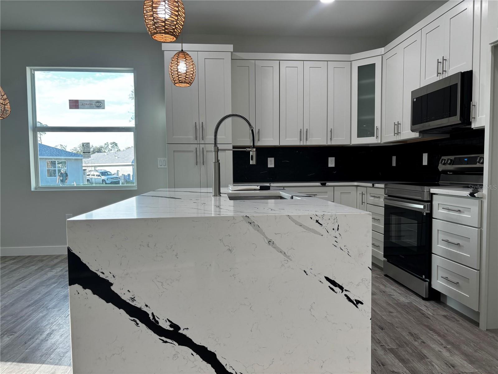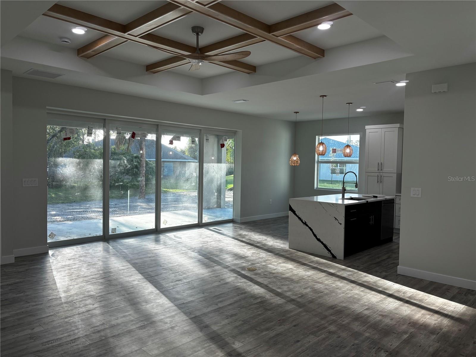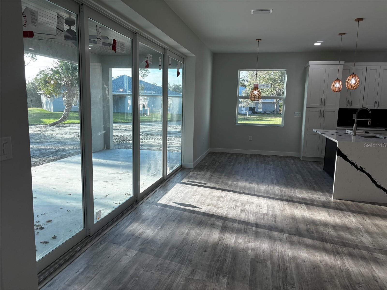 Esta linda casa SEMI PERSONALIZADA NOVA CONSTRUÇÃO única está pronta para um proprietário. Entre na elegância moderna nesta residência de 3 quartos e 2 banheiros, projetada para maximizar linhas simples e luz natural. armários de cozinha de madeira personalizados dão o tom, centrados em torno de uma elegante ilha de quartzo em cascata, e estão incluídos eletrodomésticos de aço inoxidável. Pisos de vinil luxuosos e azulejos elegantes realçam o estilo elegante e moderno da casa. A suíte master oferece um verdadeiro santuário, com closet com armários embutidos e estantes, ao lado de um banheiro master adornado com chuveiro com efeito de chuva e piso de cerâmica envelope. Cada quarto serve como um retiro tranquilo com amplo closet e grandes janelas, enquanto um hall de entrada luminoso recebe você na entrada, dando um tom gracioso por toda parte. Uma espaçosa lavanderia possui armários de madeira para maior comodidade. A garagem para 3 carros inclui uma porta dupla lateral e uma terceira porta que dá para o quintal, garantindo fácil acesso e ampla arrumação para veículos e pertences. O amplo quintal privado oferece amplo espaço para futuras adições, como piscina e oásis ao ar livre, perfeito para lazer e relaxamento. Para maior tranquilidade, todas as janelas são à prova de furacões, garantindo segurança e proteção. Idealmente localizada no coração de North Port, perto da I-75, esta casa fica a apenas 30 minutos de carro de belas praias, bem como convenientemente perto de opções de compras e restaurantes. Não perca a oportunidade de personalizar esta propriedade excepcional.