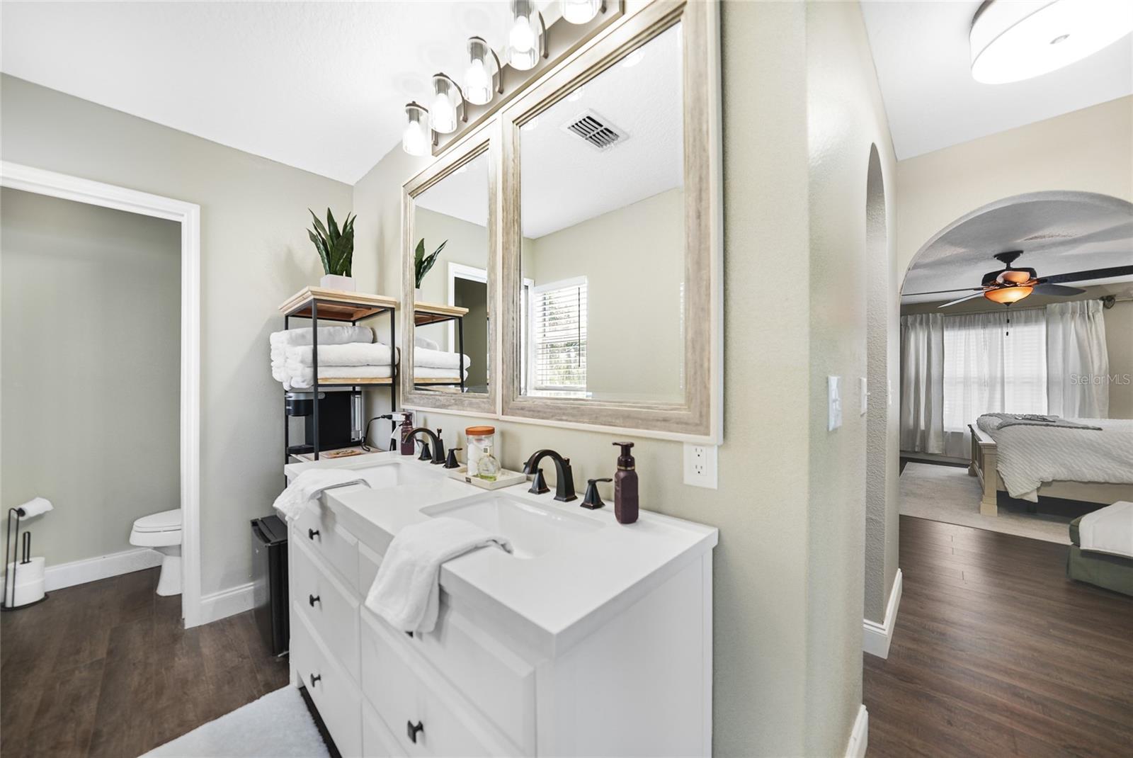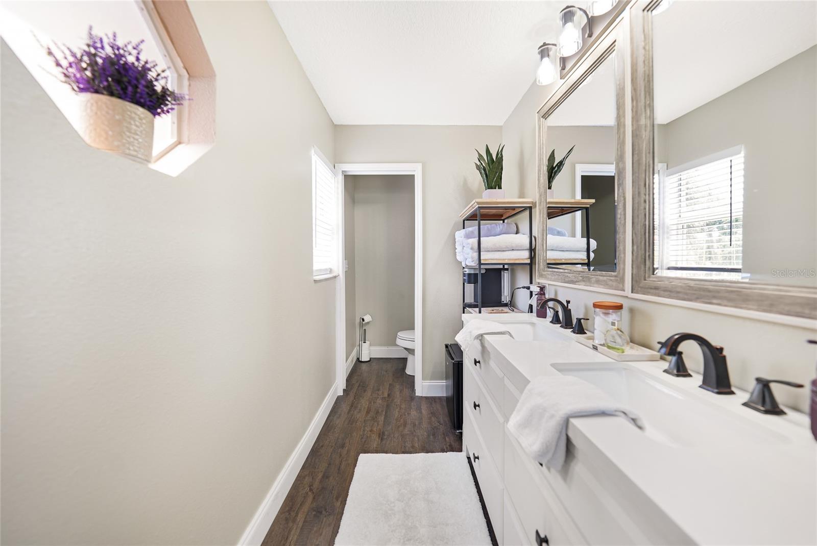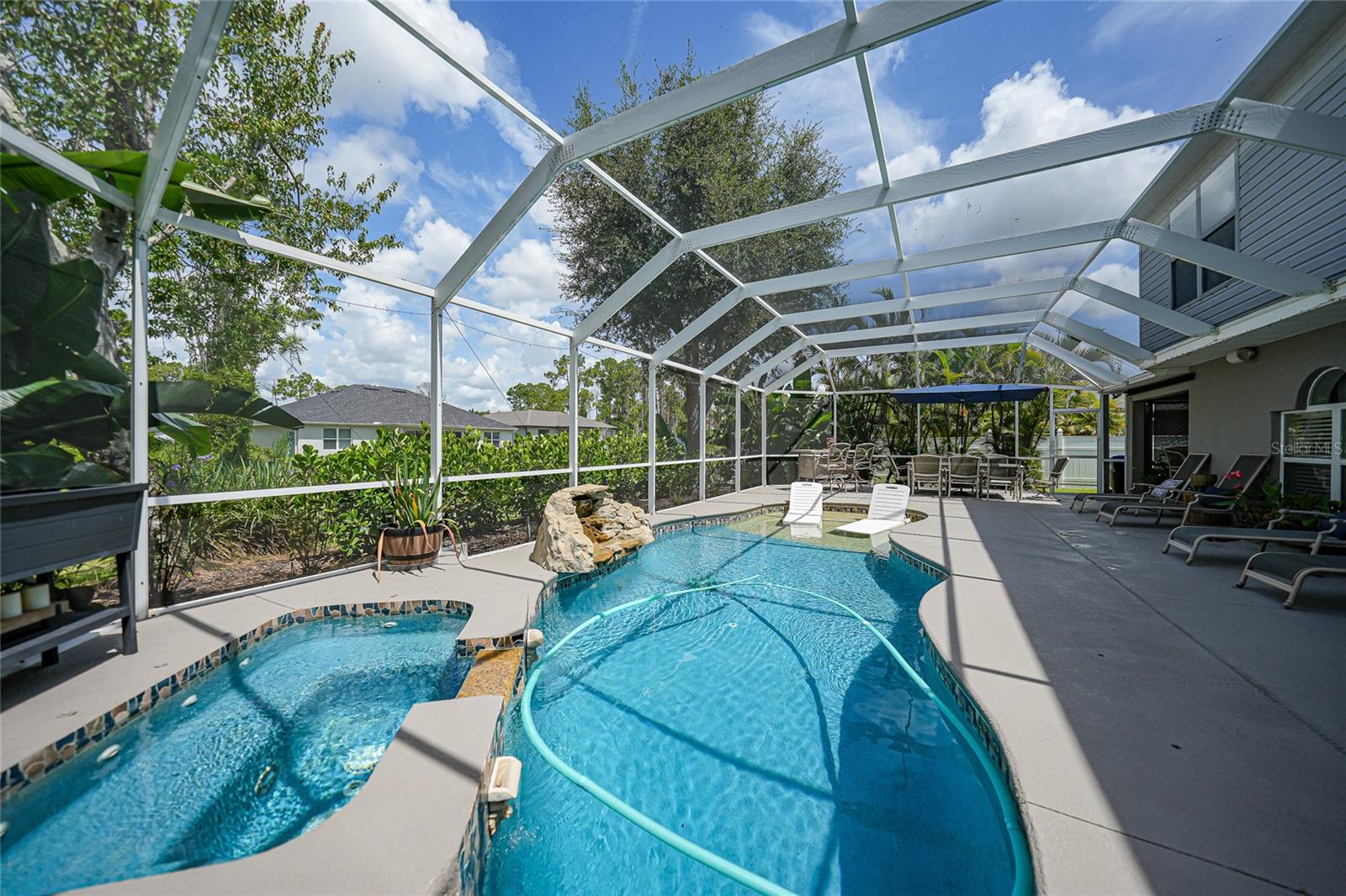 Bem -vindo ao seu Oasis! Apresentando uma grande piscina aquecida e spa com uma entrada de praia + varanda lateral coberta que faz desta a área perfeita para relaxar, entreter e relaxar. Sem HOA, sem restrições de ação. Esta casa de dois andares tem todo o espaço que você precisa em 4 quartos, 2,5 banheiros, garagem de 3 carros e uma grande sala de den/flex. Inclui uma cozinha encantadora com uma ilha de açougueiro e pia mais recente, utensílios de aço inoxidável, despensa dupla, recanto do café da manhã fora de kitchen e uma sala de jantar formal. O quarto principal é muito espaçoso e apresenta seus e seus armários que levam ao banheiro atualizado que possui um piso de pedra e cinco chuveiros e luzes LED. (2023 telhado e mais recente AC) Cerca de privacidade em ambos os lados da propriedade. A casa está conectada para o som surround e os recursos construídos em alto -falantes. Esta propriedade fica a menos de 10 minutos de compras, supermercados, médicos e muito mais. Marque sua consulta hoje, não podemos esperar que você veja esta casa!