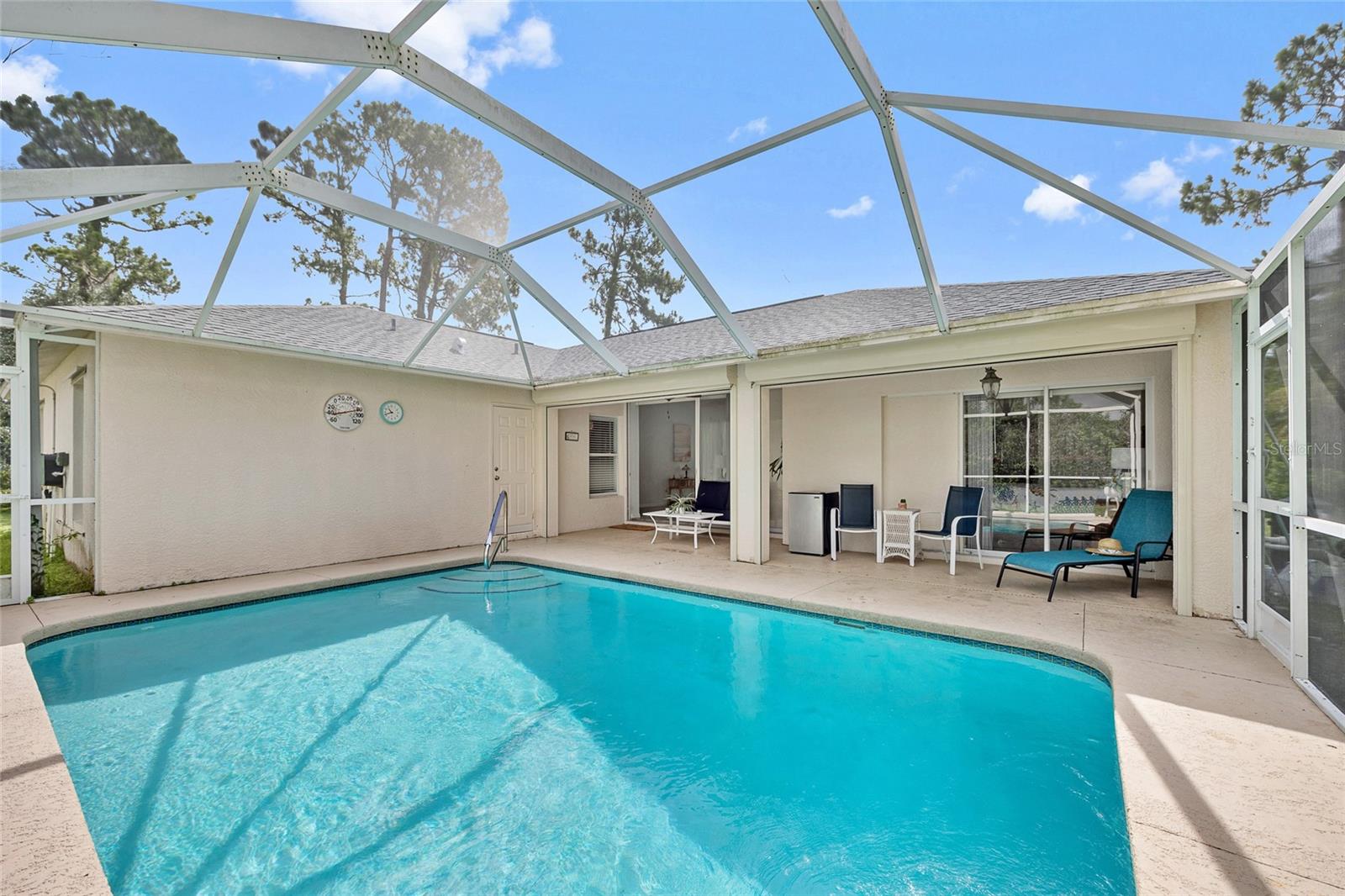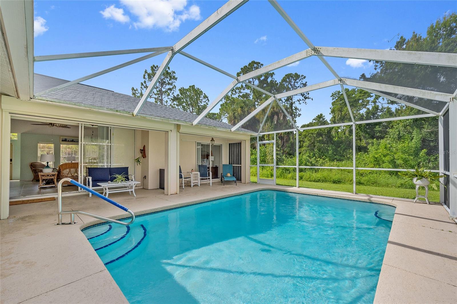 Vendedor motivado! Triple Lot! Linda casa de 3 quartos, 2 banheiros, piscina de garagem de 2 carros, aninhada no meio de um lote de grandes dimensões, oferecendo muita privacidade no porto norte! A planta baixa leve e brilhante apresenta tetos altos, cores suaves, sala de estar com controle deslizante de bolso de vidro triplo para Lanai, trazendo o ar livre e o piso de azulejos de cerâmica na área de estar principal. A cozinha apresenta amplos armários e contra -espaço, aparelhos de aço inoxidável mais recentes e bar de café da manhã. O quarto primário possui piso laminado e banho atualizado com nova vaidade com pias de tigela dupla e chuveiro de azulejos personalizados com cabeça de chuveiro. A planta baixa permite que a empresa tenha seu próprio espaço e acesso ao acúmulo através do banho de hóspedes. A área de entretenimento ao ar livre possui lanai coberto, piscina de 17 'x 25', com vista para o grande quintal com churrasco, fogo e muito espaço para jogos e amigos peludos para passear. Desfrute de lindos pôr do sol SWFL com a exposição do noroeste. Seller updates and additional features include brand new front door, new roof and water heater in 2022, new well pump, pool pump and water filtration system in 2024, just added ionic system to well, freshly painted interior, new ceiling lights and fans, new lanai screen, electric roll down storm screen for lanai, metal hurricane shutters, security system, automatic sprinkler system,12’ x 20’ shed with electric for extra storage, landscaped exterior and private Muito com muito poucos vizinhos. Ótima localização, com fácil acesso à I-75, restaurantes, compras, escolas, parques, golfe e uma curta viagem de carro para as praias de Veneza, além de pescar e passear de barco no rio Myakka. Não perca esta oportunidade de tornar esta casa sua nova residência permanente ou retiro da Flórida. Agende sua exibição particular hoje!