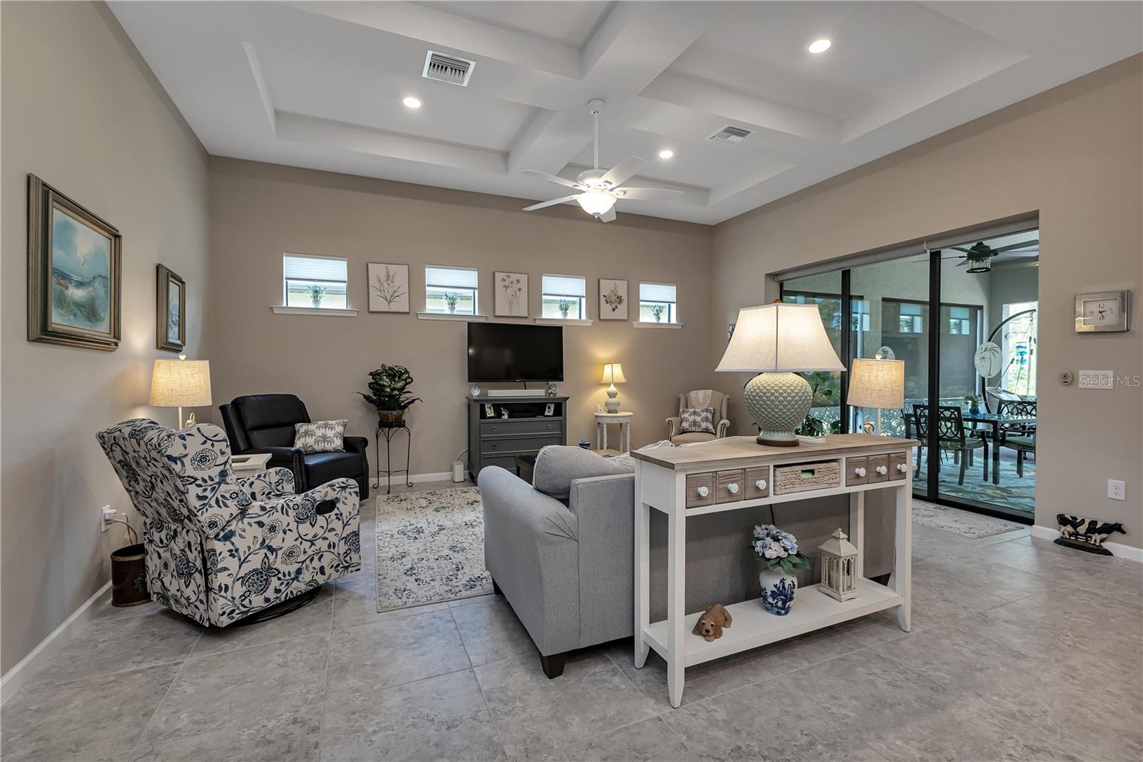 Se você está procurando uma comunidade bonita com mais de 55 anos, é isso! Esta casa foi construída em 2021 e está pronta para o seu novo proprietário! Bem-vindo à casa dos seus sonhos na procurada comunidade de Cypress Falls! Esta deslumbrante casa de 2 quartos e 2 banheiros, com uma sala versátil, oferece o que há de melhor na vida moderna. Entre para descobrir uma planta aberta que conecta perfeitamente as áreas de estar, jantar e cozinha. A sala principal possui piso de cerâmica e um impressionante teto em caixotões. A sala é iluminada e arejada, com um controle deslizante de bolso que se abre para a varanda, perfeita para ambientes internos e externos. A cozinha é uma delícia para o chef, ostentando uma ilha central com armários em cada extremidade, bancadas de quartzo, eletrodomésticos de aço inoxidável, closet e despensa e filtro RO na pia da cozinha. Adjacente à cozinha, a zona de refeições proporciona um espaço acolhedor para refeições em família. O quarto principal é um retiro espaçoso com banheiro privativo. Você vai adorar o amplo box amplo com banco, pias duplas, armário de roupa de cama e área de banheiro privativo. O quarto de hóspedes é mobiliado e o banheiro de hóspedes inclui uma conveniente combinação de banheira/chuveiro. As características adicionais incluem uma grande lavanderia equipada com lavadora e secadora de tamanho normal, pia e muito espaço de armazenamento. Saia para a ampla varanda com tela, onde você encontrará áreas cobertas e expostas ao sol com persianas personalizadas. Este espaço oferece uma vista serena do jardim de flores bem cuidado e da paisagem arborizada tropical. É o local perfeito para relaxar e desfrutar do ambiente tranquilo. A garagem para 2 carros possui uma geladeira adicional e prateleiras suspensas para armazenamento adicional. Há também um amaciante de água atendido pela Culligan. O condomínio é voltado para adultos ativos, oferecendo comodidades com acesso a clubhouse, quadras de tênis, centro comunitário e duas piscinas aquecidas. Há também atividades comunitárias, incluindo quadras de pickleball, bocha, bilhar, pingue-pongue, ferraduras, biblioteca, cibercafé, artesanato, bridge, pôquer, euchre, ioga, tai chi, hidroginástica e mahjong. Marque uma consulta hoje para ver esta linda casa em um condomínio incrível!