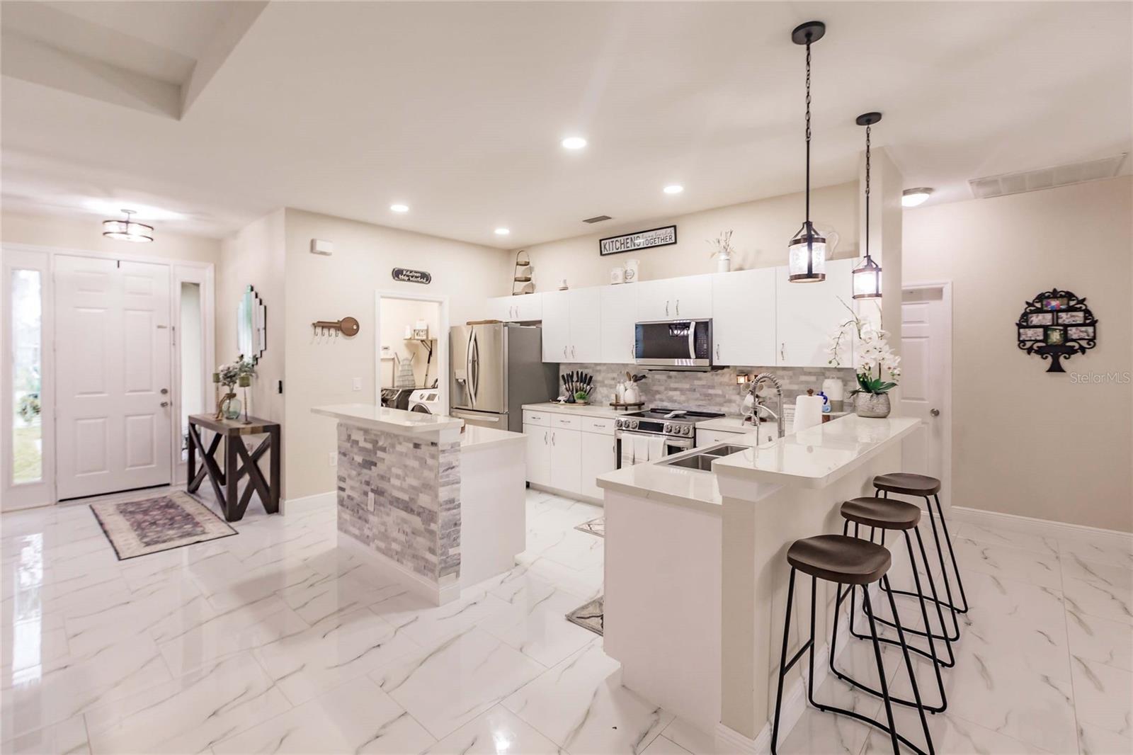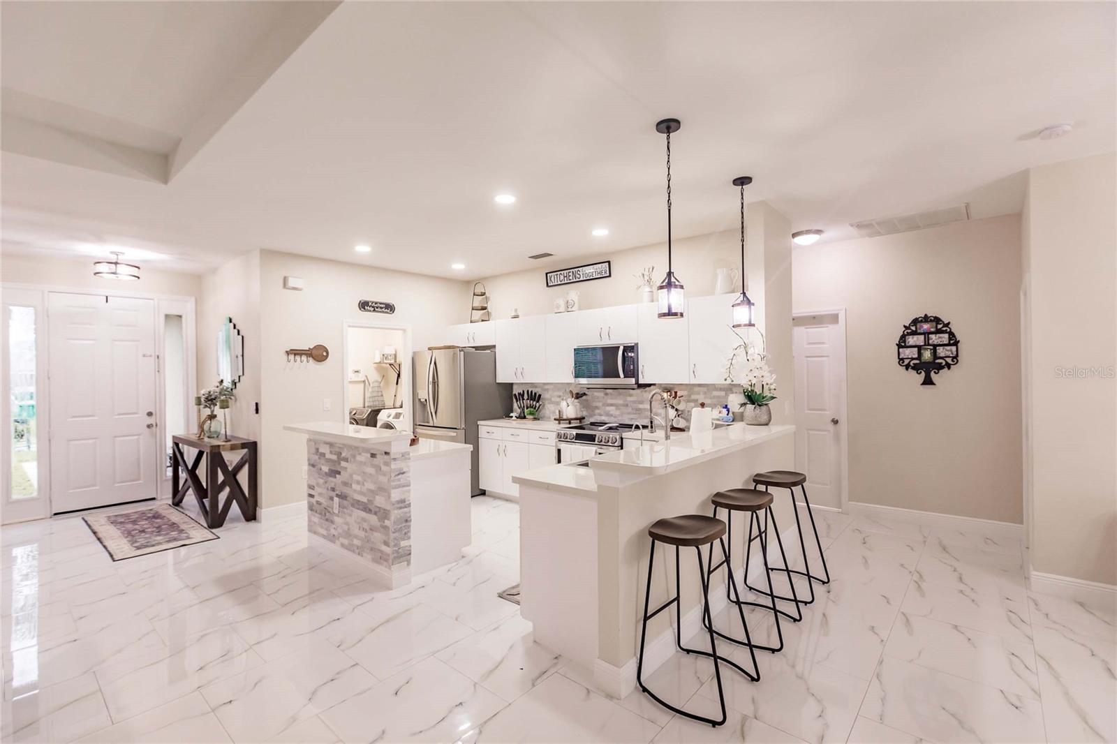 Bem -vindo à 3229 Worthington Ave, uma casa lindamente remodelada em North Port, FL, onde a elegância encontra a conveniência moderna. Esta residência requintada foi projetada para impressionar, com tetos altos que aumentam a sensação de espaço e luz em toda a planta aberta. Desde o momento em que você entra, você apreciará a atenção meticulosa aos detalhes na remodelação recente. O interior possui uma paleta elegante e acabamentos contemporâneos, criando uma mistura harmoniosa de estilo e conforto. As espaçosas áreas de estar são perfeitas para a vida familiar descontraída e o elegante entretenimento. A cozinha, uma verdadeira peça central, foi atualizada com aparelhos de ponta, bancadas elegantes e armários personalizados. É um refúgio culinário que convida a criatividade e prazer. Adjacente à cozinha, os espaços de jantar e de convivência fluem perfeitamente, tornando as reuniões agradáveis e sem esforço. O layout da casa inclui uma luxuosa suíte master com um banheiro privativo lindamente renovado, oferecendo um retiro privado com equipamentos modernos e um closet. Quartos adicionais são bem-grandes e projetados com conforto em mente, cada um contribuindo para o apelo geral da casa. Uma das características de destaque desta propriedade é a sua localização - livre das restrições de uma associação de proprietários de casas (HOA) e situada fora de uma zona de inundação. Isso aumenta a sensação de liberdade e segurança, permitindo que você desfrute do quintal espaçoso e lindamente paisagístico. Esteja você hospedando um churrasco ou simplesmente relaxando em seu espaço ao ar livre privado, o quintal é uma área versátil que aprimora o charme da casa. Localizado em um bairro amigável e bem estabelecido, a 3229 Worthington Ave oferece a combinação perfeita de elegância, funcionalidade e conveniência. Experimente a facilidade da vida moderna em uma casa que foi cuidadosamente atualizada para atender às suas necessidades, preservando seu fascínio clássico. Vendedor disposto a cooperar com os custos de fechamento do comprador!