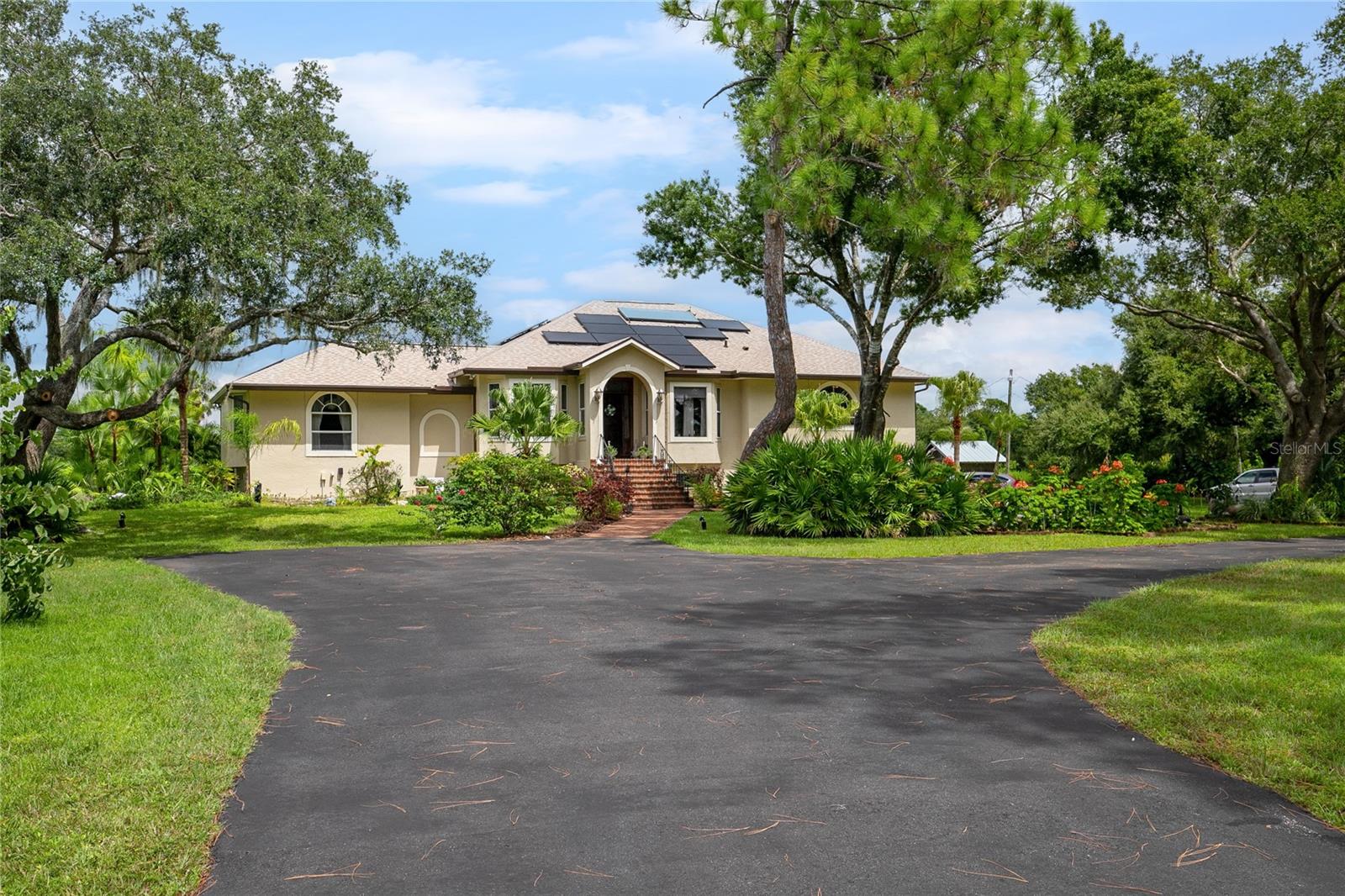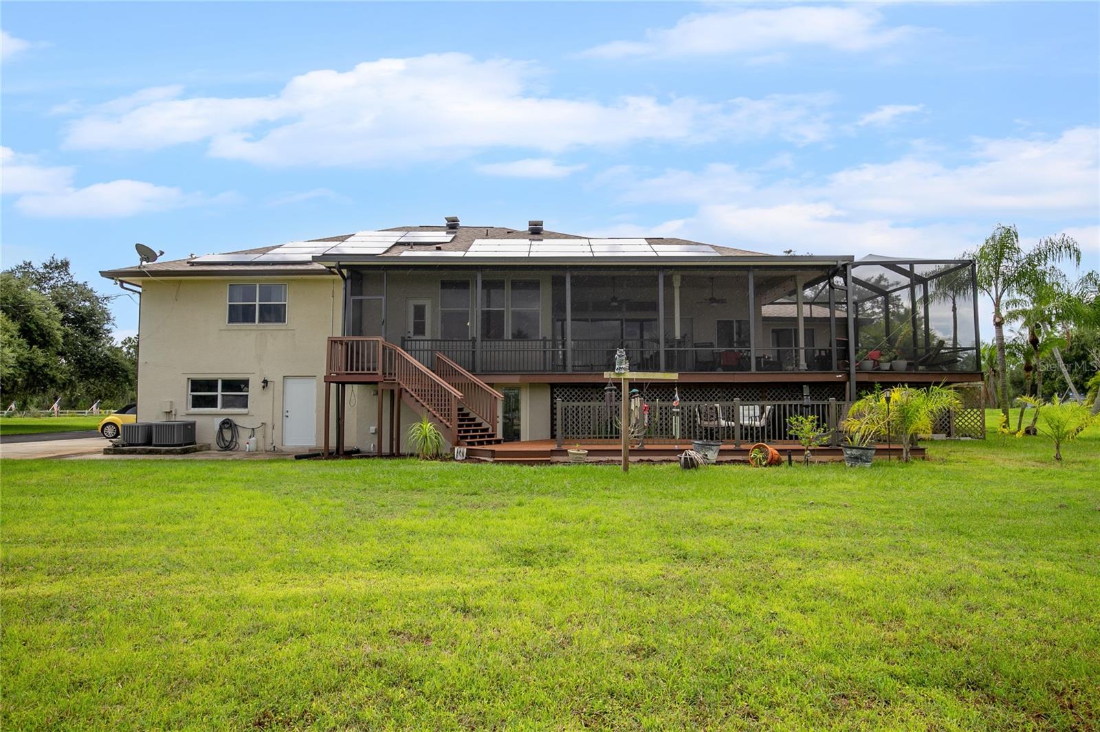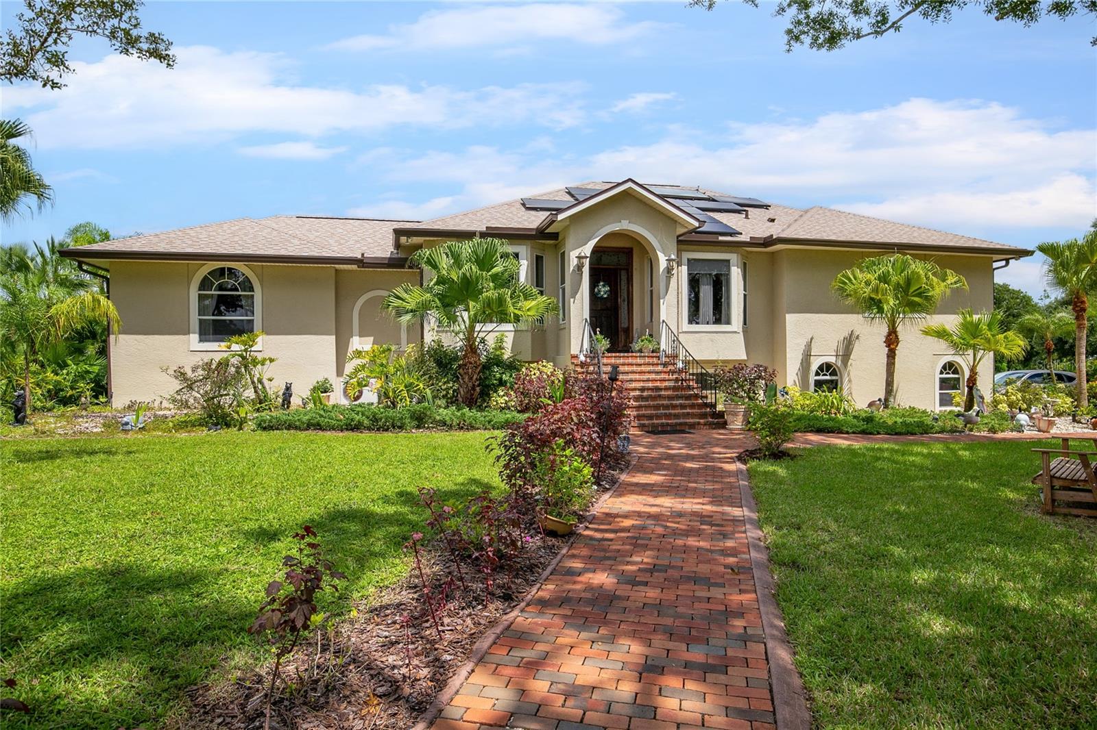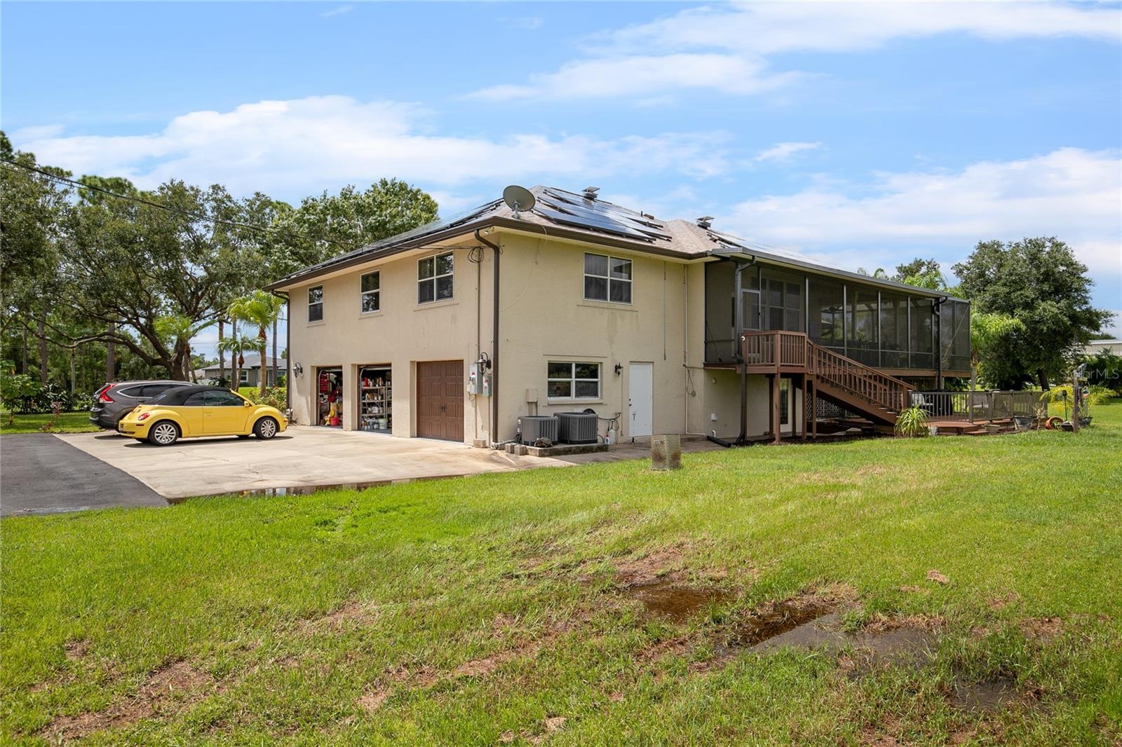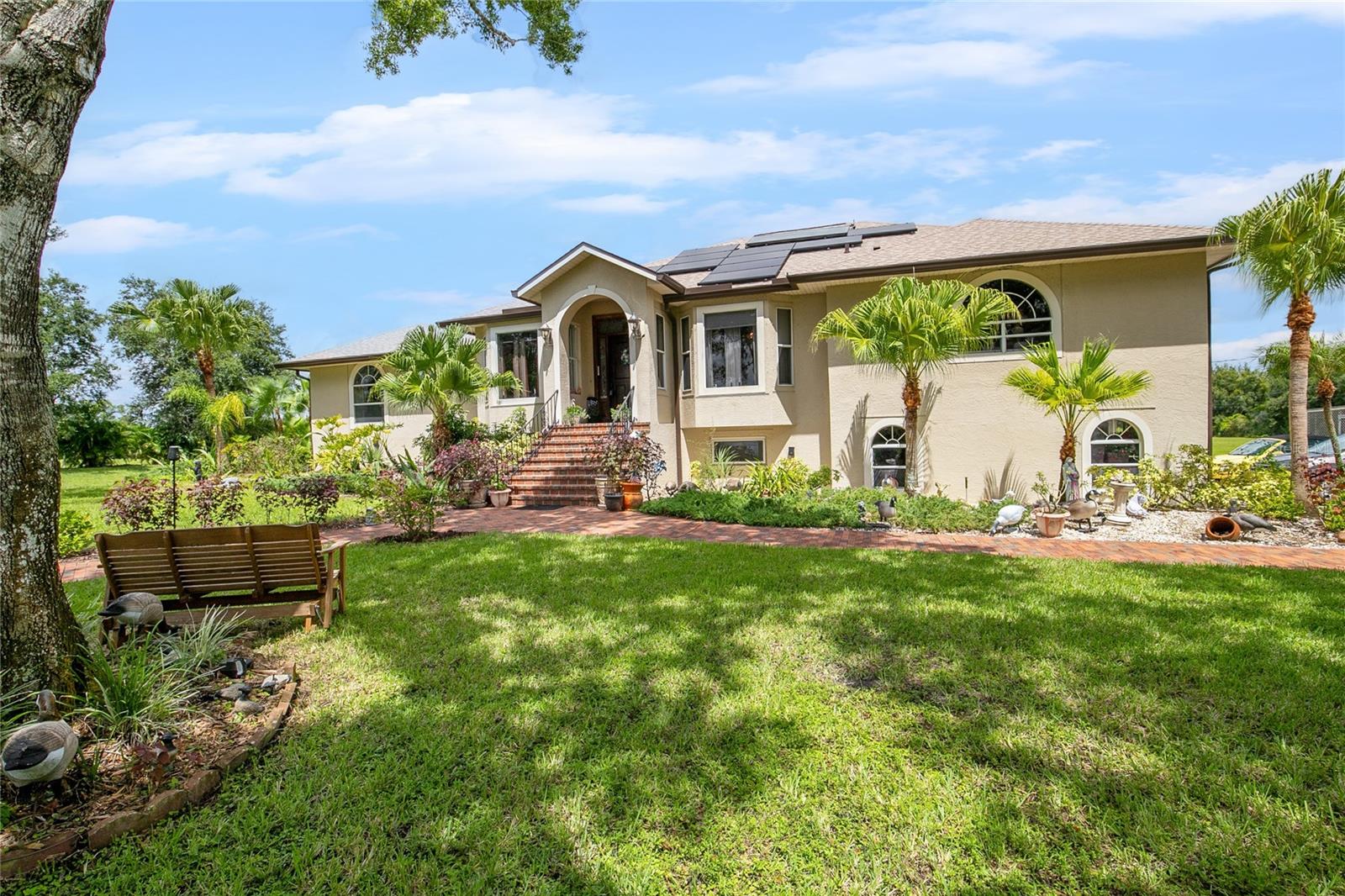 LINDA CASA PERSONALIZADA DE 3 QUARTOS + ESCRITÓRIO, 2,5 BANHOS, GARAGEM PARA 3 CARROS, Aninhada em mais de 4 ACRES EM NORTH PORT CHARLOTTE ESTATES! Paz e serenidade abundam no deck dos fundos, observando os peixes pularem em seu lago privado ou os cervos brincarem no amplo quintal ou apenas olhando as estrelas do deck inferior. Esta casa excepcional possui aprox. 3.000 pés quadrados de área útil com ESPAÇOSO APARTAMENTO BÔNUS NO 1º ANDAR OU ÓTIMA SUÍTE DE SOGRO. Entre e seja recebido por tetos altos, impressionantes pisos de jacarandá boliviano, escritório separado e área de estar com portas de correr que dobram o tamanho da sala quando se trata de entretenimento, combinando perfeitamente os espaços internos e externos. A cozinha é o sonho de um chef com armários de cerejeira, balcões de granito, backsplash de azulejos, eletrodomésticos de aço inoxidável, balcão para café da manhã e uma grande copa com uma parede de janelas com vista para vistas calmantes. A sala familiar separada oferece espaço ainda mais flexível para a casa. A espaçosa suíte principal oferece acesso à varanda e possui um banheiro atualizado com bancadas de granito, armários personalizados, pias duplas, banheira de hidromassagem e box amplo com azulejos personalizados. O apartamento bônus no primeiro andar, perfeito como suíte de sogro ou mancava, possui piso de cerâmica, ar condicionado mini-split, ampla área de estar/jantar, cozinha, quarto, banheiro e lavanderia. Aproveite o novo deck superior Trex com tela e o deck inferior aberto, ótimos espaços para hospedar familiares e amigos. Outras atualizações dignas de nota incluem novo piso nos quartos de hóspedes, um novo telhado, calhas e telas de gabinete atualizadas em 2022, bem como novas portas de garagem resistentes a furacões com piso de epóxi. Esta casa está equipada com um sistema solar voltaico para toda a casa para eficiência energética e poupança na sua electricidade mensal, isolamento de 18”, duplo HVAC, sistema de osmose inversa para toda a casa, aspiração central, dois aquecedores de água quente (um solar e um híbrido) , proteção contra furacões, cerca invisível para cães e sistema de irrigação de poço com purificador de poço e galpão no quintal. Uma nova bomba de depósito e um exuberante paisagismo tropical com iluminação externa realçam a beleza da propriedade, especialmente à noite. Convenientemente localizado perto da I-75, este oásis privado oferece fácil acesso a restaurantes, lojas, parques e às belas praias de Veneza. Abrace o estilo de vida luxuoso e explore todas as comodidades que o sudoeste da Flórida tem a oferecer nesta propriedade requintada. Agende sua exibição privada hoje mesmo!