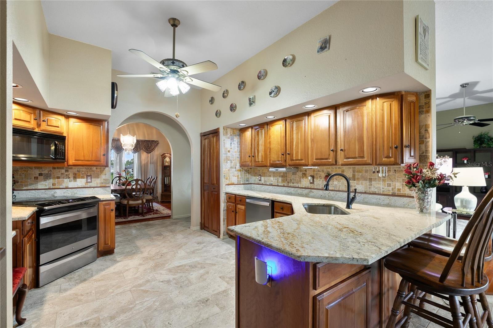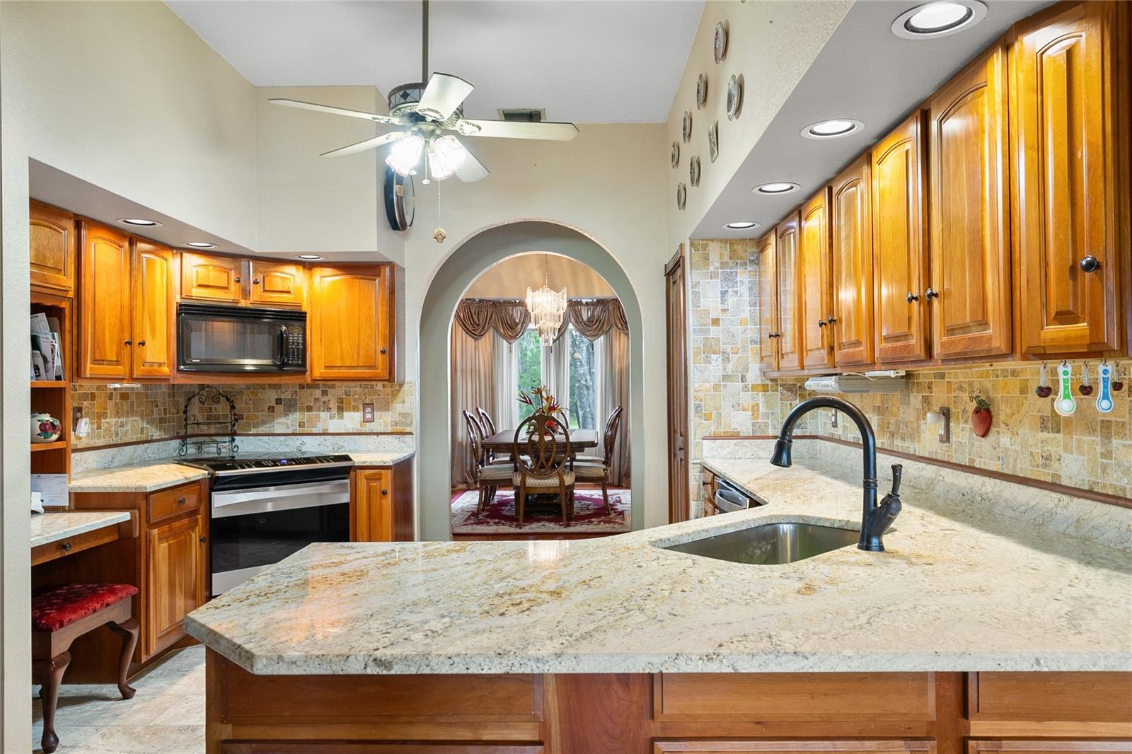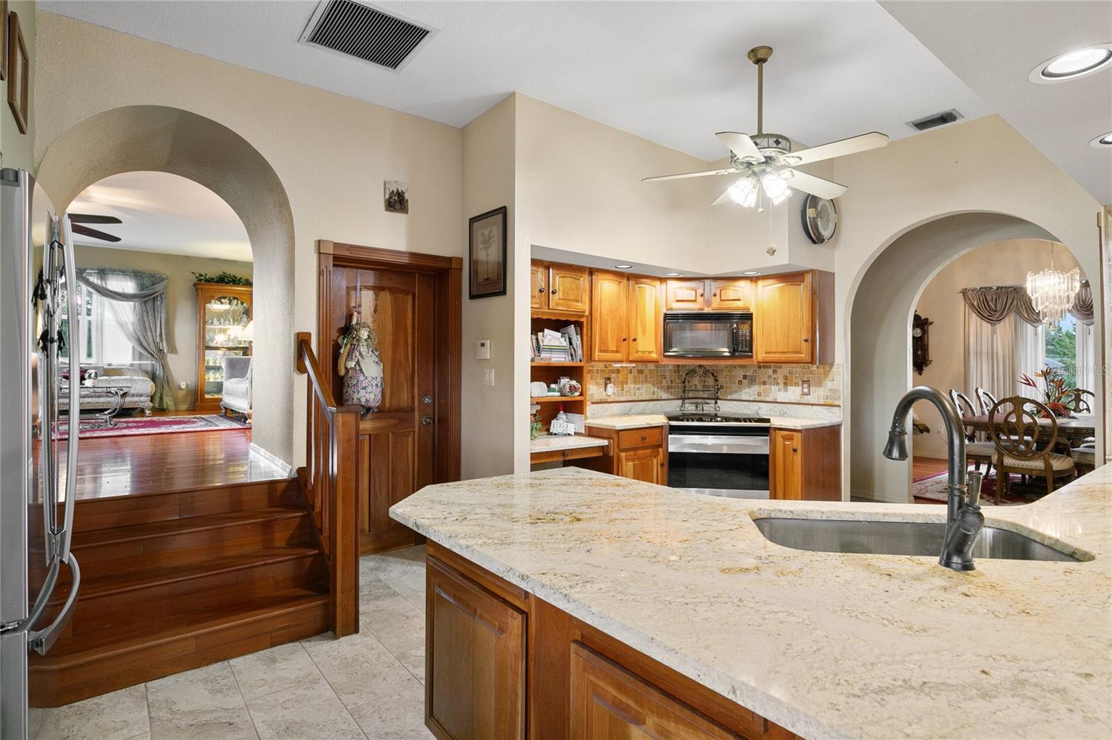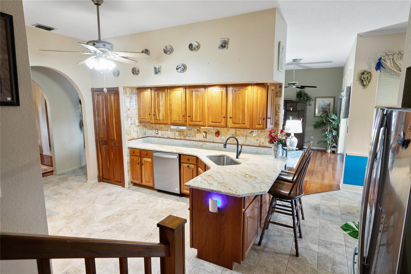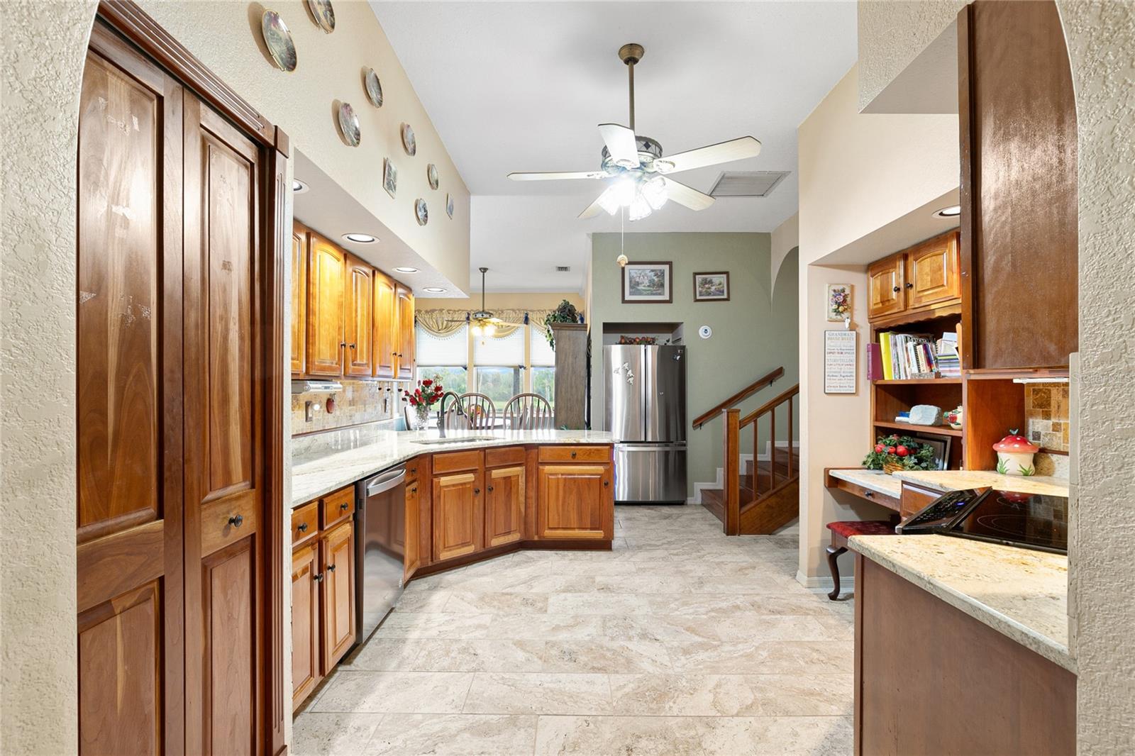 LINDA CASA PERSONALIZADA DE 3 QUARTOS + ESCRITÓRIO, 2,5 BANHOS, GARAGEM PARA 3 CARROS, Aninhada em mais de 4 ACRES EM NORTH PORT CHARLOTTE ESTATES! Paz e serenidade abundam no deck dos fundos, observando os peixes pularem em seu lago privado ou os cervos brincarem no amplo quintal ou apenas olhando as estrelas do deck inferior. Esta casa excepcional possui aprox. 3.000 pés quadrados de área útil com ESPAÇOSO APARTAMENTO BÔNUS NO 1º ANDAR OU ÓTIMA SUÍTE DE SOGRO. Entre e seja recebido por tetos altos, impressionantes pisos de jacarandá boliviano, escritório separado e área de estar com portas de correr que dobram o tamanho da sala quando se trata de entretenimento, combinando perfeitamente os espaços internos e externos. A cozinha é o sonho de um chef com armários de cerejeira, balcões de granito, backsplash de azulejos, eletrodomésticos de aço inoxidável, balcão para café da manhã e uma grande copa com uma parede de janelas com vista para vistas calmantes. A sala familiar separada oferece espaço ainda mais flexível para a casa. A espaçosa suíte principal oferece acesso à varanda e possui um banheiro atualizado com bancadas de granito, armários personalizados, pias duplas, banheira de hidromassagem e box amplo com azulejos personalizados. O apartamento bônus no primeiro andar, perfeito como suíte de sogro ou mancava, possui piso de cerâmica, ar condicionado mini-split, ampla área de estar/jantar, cozinha, quarto, banheiro e lavanderia. Aproveite o novo deck superior Trex com tela e o deck inferior aberto, ótimos espaços para hospedar familiares e amigos. Outras atualizações dignas de nota incluem novo piso nos quartos de hóspedes, um novo telhado, calhas e telas de gabinete atualizadas em 2022, bem como novas portas de garagem resistentes a furacões com piso de epóxi. Esta casa está equipada com um sistema solar voltaico para toda a casa para eficiência energética e poupança na sua electricidade mensal, isolamento de 18”, duplo HVAC, sistema de osmose inversa para toda a casa, aspiração central, dois aquecedores de água quente (um solar e um híbrido) , proteção contra furacões, cerca invisível para cães e sistema de irrigação de poço com purificador de poço e galpão no quintal. Uma nova bomba de depósito e um exuberante paisagismo tropical com iluminação externa realçam a beleza da propriedade, especialmente à noite. Convenientemente localizado perto da I-75, este oásis privado oferece fácil acesso a restaurantes, lojas, parques e às belas praias de Veneza. Abrace o estilo de vida luxuoso e explore todas as comodidades que o sudoeste da Flórida tem a oferecer nesta propriedade requintada. Agende sua exibição privada hoje mesmo!
