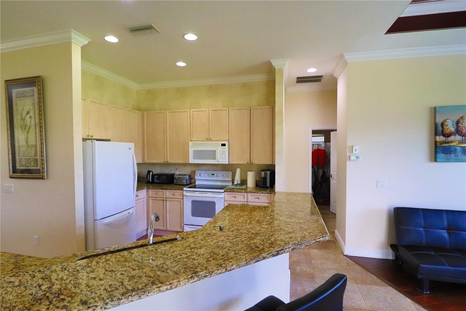Esta casa de 3 quartos, 2 casas de banho e garagem para 2 carros oferece exposição a sul e espaço para piscina. A calçada de tijolos leva a uma entrada de porta dupla. Tetos altos, sancas e uma cozinha aberta com armários de madeira e bancadas de granito fluem para a família e as salas de estar. O quarto principal inclui armários para ele e para ela, banheiro estilo spa com pia dupla, banheira de imersão, box amplo e vaso sanitário. Aproveite a varanda com tela e a conveniência de uma lavanderia interna. As principais atualizações incluem um novo telhado e aquecedor de água (2021). Conectada à água da cidade, esta casa está pronta para morar e não está em uma zona de inundação.