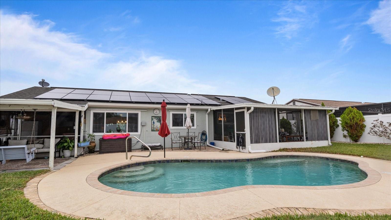 *** Tour virtual interativo 3D *** Apresentando esta casa excepcional de 3 quartos e 2 banheiros, cuidadosamente projetada para o conforto e a vida moderna. Localizado em um bairro conveniente, esta propriedade oferece uma variedade impressionante de recursos que a diferenciam. Entre para encontrar quartos espaçosos e cheios de luz com um painel elétrico atualizado, garantindo um uso eficiente de energia. O exterior é igualmente impressionante, destacado por um telhado de 8 anos, calhas perfeitas e um quintal totalmente cercado que garante privacidade e segurança. Aproveite o luxo de uma piscina de água salgada aquecida, perfeita para relaxamento e divertido durante todo o ano. A propriedade também possui painéis solares, fornecendo economia de energia e sustentabilidade. Um sistema de irrigação alimentado por um poço mantém o paisagismo exuberante vibrante sem os custos de utilidade adicionais. Todas as novas janelas de impacto reduzirão o seguro do seu proprietário e fornecerão proteção contra tempestades. Com o Serviço de Água da Cidade e as recentes atualizações modernas, esta casa está pronta e ideal para compradores que buscam uma mistura de conveniência, eficiência e estilo. Não perca a chance de possuir esta casa meticulosamente mantida e com eficiência energética! Aproveite o Walk-through Virtual Matterport ... então ligue para sua exibição particular hoje. Você não vai querer deixar passar esta piscina acessível em casa.