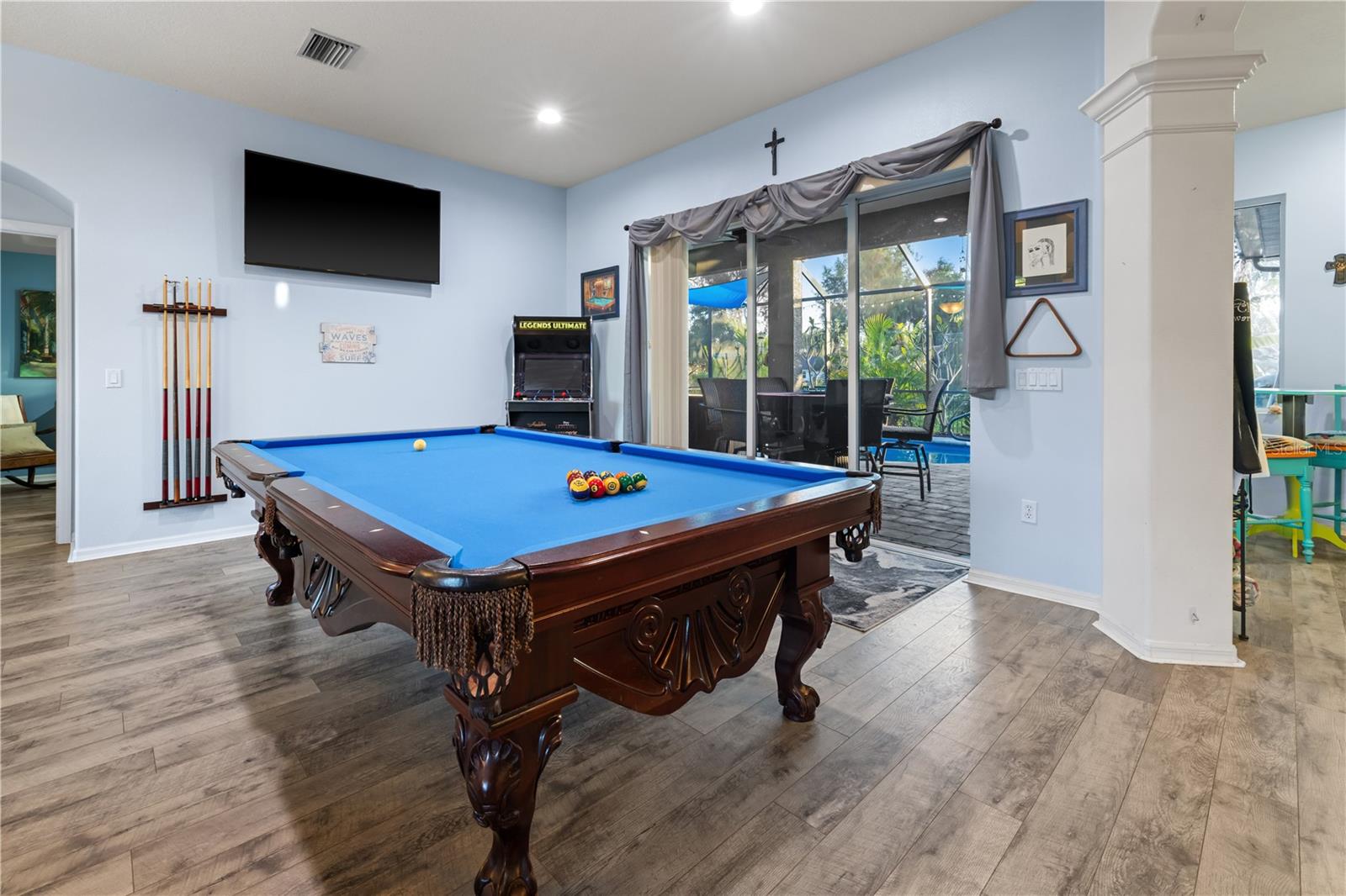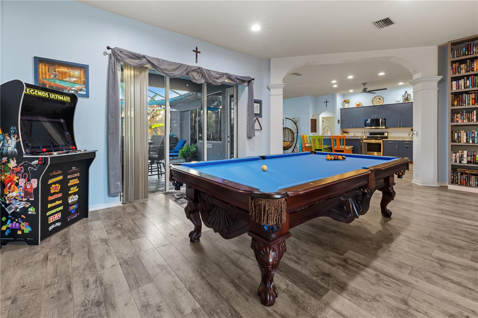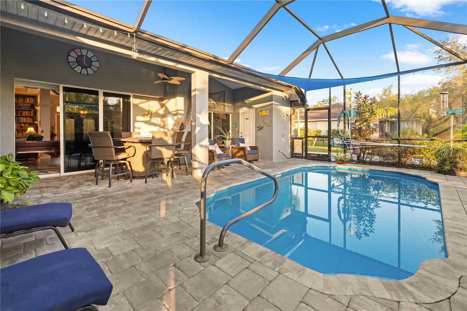 Seu oásis tropical aguarda! Esta piscina pitoresca em casa fica em um lote duplo meticulosamente mantido. Ao entrar pelas portas duplas, você notará imediatamente o conceito aberto e terá uma visão da piscina. A sala construiu prateleiras para abrigar todos os seus livros ou knacks. Desfrute de um bom livro no seu banco de bancada embutido. Você pode ver o quão espaçoso é a sala de jantar que atualmente tem uma grande mesa de bilhar com espaço suficiente para qualquer tiro de truque !! A cozinha possui bancadas em granito, utensílios de aço inoxidável e uma despensa. Esta cozinha tem um ótimo triângulo de trabalho e amplo espaço para todas as suas necessidades de cozinha e cozimento. Há barreiras construídas para proteger a integridade da obra -prima que você criará (ou apenas mantendo as crianças / animais de estimação enquanto cozinha). Desfrute do café da manhã em sua ilha de cozinha ou na área de Dinette, com vista para a piscina. A sala da família é grande e tem uma excelente vista da piscina. O quarto principal, localizado em um lado da casa, inclui dois armários de caminhada, uma banheira de imersão, caminhada no chuveiro e banheiro privativo. Existem dois quartos e banheiro. A área da piscina tem meio banho e muito espaço para relaxar. Se você está frio e não quer dar um mergulho na piscina, pode se aquecer com sua fogueira de pedra. Esta parte do quintal é cercada para manter as crianças ou animais de estimação próximos enquanto você gosta de Smores. O galpão de armazenamento tem muito espaço para colocar suprimentos para o equipamento de piscina ou gramado. Banana, uma árvore de limão, uma árvore de abacate e plantas de abacaxi adicionam ao ambiente tropical e fornecem frutas frescas. A garagem de 3 carros tem amplo espaço para armazenamento, espaço de trabalho ou muito estacionamento. A casa tem um teto de aço, não é uma zona de inundação (zona d) e não tem HOA. Bem -vindo em casa !!