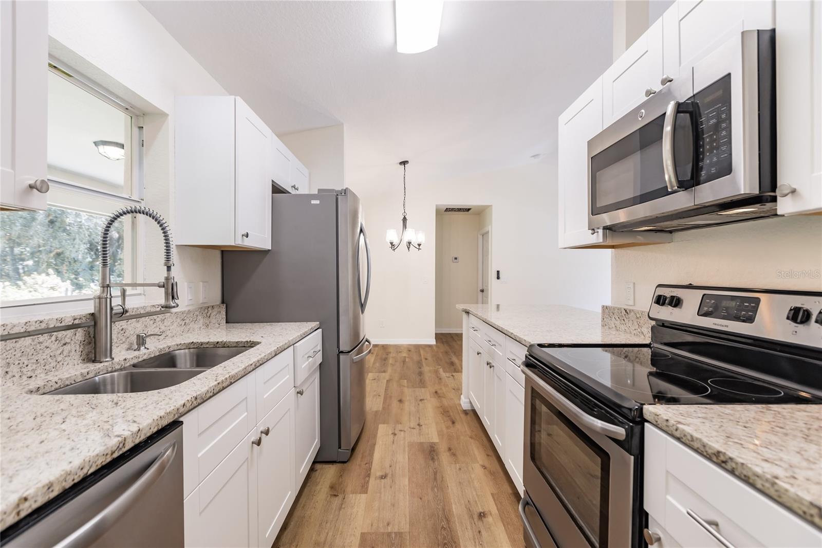 Bem-vindo a esta ZONA X FLOOD LINDAMENTE ATUALIZADA, com TELHADO 2022! No Sunny North Port, cada detalhe foi cuidadosamente renovado para uma vida moderna nesta casa perfeita! Ao entrar, você é imediatamente saudado pelo calor do novo piso de madeira laminada que percorre toda a casa. O espaço de conceito aberto flui perfeitamente para a cozinha atualizada, o que é um verdadeiro destaque. Com elegantes bancadas de granito, armários novos e eletrodomésticos de aço inoxidável (todos instalados nos últimos dois anos), é um espaço perfeito para cozinhar e se divertir. A luz natural que entra pelas janelas ilumina toda a área, criando uma sensação acolhedora e arejada. Percorrendo a casa, você encontrará dois banheiros atualizados, ambos com elegantes pias de granito que complementam os acabamentos modernos. A suíte master oferece muito espaço para relaxar, enquanto os quartos adicionais são de tamanho generoso e perfeitos para famílias ou convidados. Ao sair para o quintal, você ficará agradavelmente surpreso com o oásis tranquilo e privado que o espera. O quintal dá acesso a uma área arborizada serena, oferecendo vistas tranquilas e ampla privacidade. Uma varanda protegida é o local perfeito para o café da manhã ou para relaxar à noite, proporcionando um ótimo espaço para desfrutar do ar livre o ano todo, independentemente do clima. A casa foi meticulosamente cuidada, com um novo telhado instalado em 2022, um novo esquentador em 2024 e um novo sistema HVAC em 2022, garantindo conforto e tranquilidade nos próximos anos. Todos os aparelhos foram novos nos últimos dois anos, então você pode mudar sabendo que tudo está em ótimas condições. Esta casa é a mistura perfeita de atualizações modernas e ambientes tranquilos, oferecendo o melhor dos dois mundos. Está realmente pronto para morar e esperando que você o personalize. Não perca a chance de ver pessoalmente – agende sua exibição hoje mesmo!