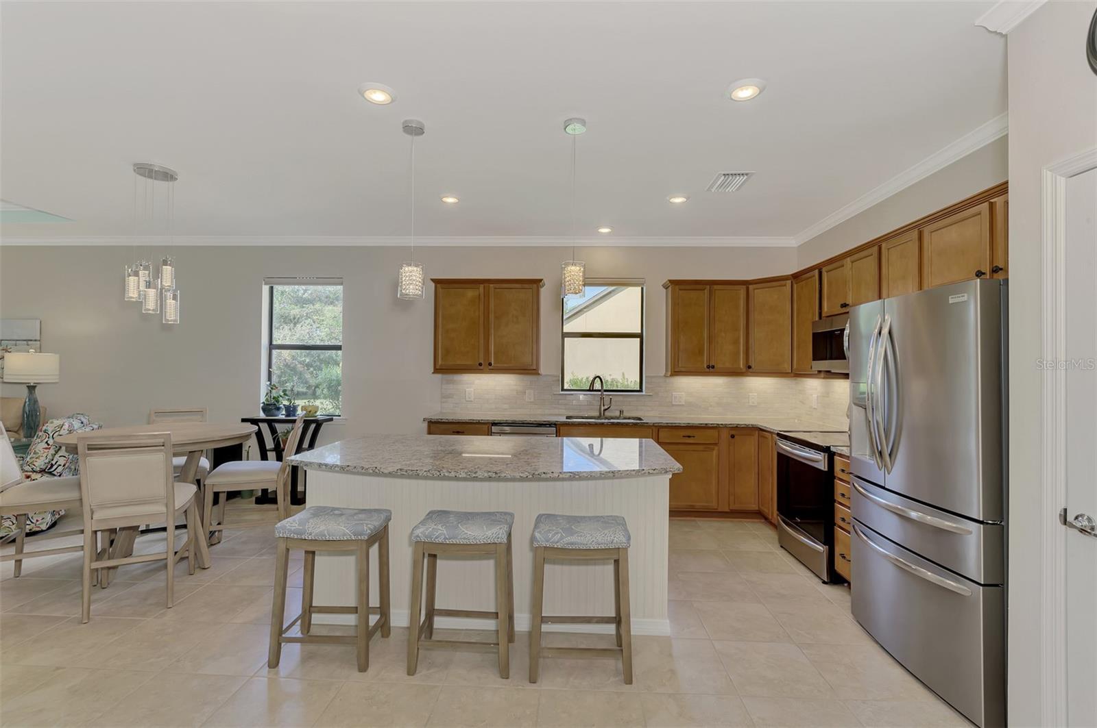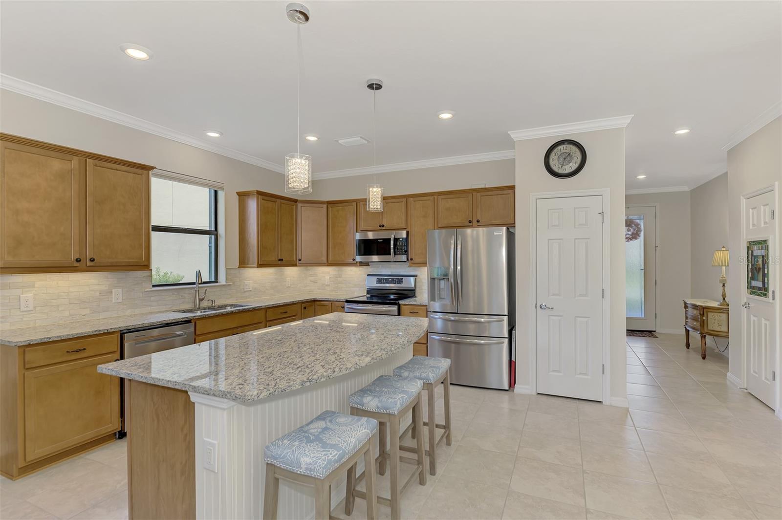 Bem-vindo ao lar e bem-vindo ao Cedar Grove!! Situado em uma das principais e mais procuradas comunidades de North Port, fica esta linda casa com 3 quartos, 2 banheiros e um quarto Flex! Esta casa foi meticulosamente mantida e recebeu nosso status de Certified Move-In Ready, pois foi totalmente inspecionada antes de ser anunciada. Localizado em um dos maiores lotes que este condomínio espetacular tem a oferecer, você vai adorar o cenário tranquilo e o espaço que o acompanha. Esta fantástica casa apresenta uma das plantas mais desejáveis do construtor. Este layout oferece grande espaço e utilidade com uma sala flexível perfeitamente posicionada que pode ser usada como sala de jantar formal, escritório, escritório ou até mesmo um 4º quarto temporário, se necessário. A grande cozinha em forma de L possui uma grande quantidade de lindos armários de madeira revestidos com requintadas bancadas de granito. Não se esqueça de conferir os novos eletrodomésticos de aço inoxidável com garantia! Grandes azulejos fluem pelas principais áreas de estar, onde se encontram com lindos pisos de tábuas nos quartos. Tetos altos e grandes janelas proporcionam muita luz natural em todo o interior da casa. O espaçoso quarto principal com teto próprio e amplo closet certamente agradará. A suíte principal apresenta um amplo box amplo com vidro transparente e uma pia dupla com armários de madeira e tampo de granito. Se você quer upgrades, então esta é a casa para você! Atualizações e atualizações notáveis incluem: Uma atualização de elevação da varanda frontal espetacular, telhado totalmente novo (23'), moldura de coroa personalizada em todas as áreas de estar principais, backsplash de cozinha, rodapés grandes, tetos de trevo na sala de estar e no quarto principal, luz atualizada e encanamentos por toda parte, persianas deslumbrantes, persianas automáticas na cozinha, prateleiras de madeira na despensa, sistema de purificação de água, paisagismo maduro com meio-fio de concreto personalizado, venezianas sanfonadas, pintura externa nova, garagem pintada piso, vidro de impacto na porta da frente, tomadas adicionais por dentro e por fora, luzes de varanda art déco, protetor contra surtos no painel, novas calhas ao redor, laje de varanda expandida e muito mais!! A única coisa que falta nesta casa é VOCÊ! Então não deixe que a casa dos seus sonhos vire o endereço de outra pessoa, agende hoje mesmo a sua exibição!