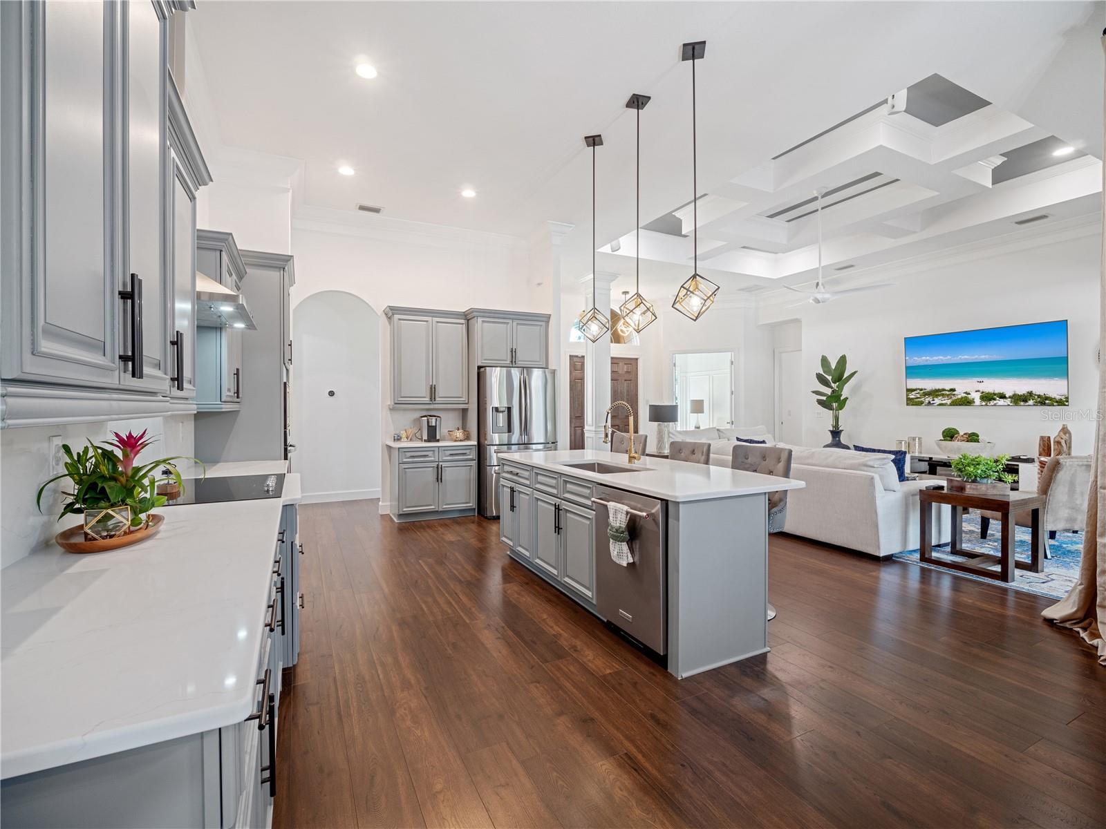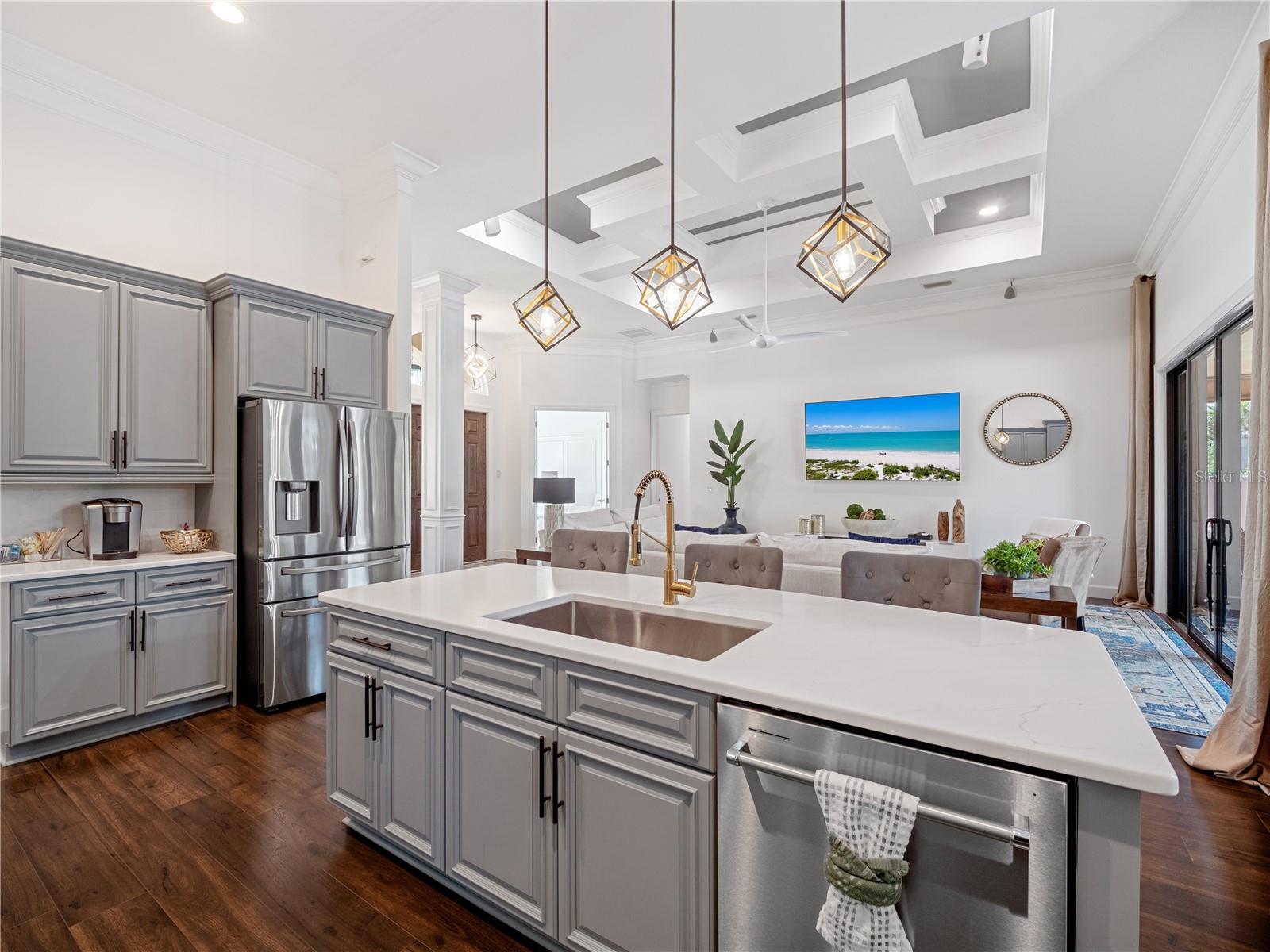 Aja rápido, este tem preço de venda! Linda casa com piscina de água salgada personalizada, cercada em quase ¾ acre (3 lotes). Novo em 2022 Grande edifício Morton separado de 28x23 com porta de garagem motorizada de 12' pronta para grande trailer ou barco completo com serviço totalmente elétrico de 50 A e iluminação LED. Como as regras do condado mudaram em torno destes grandes edifícios metálicos, esta é uma rara oportunidade de possuir uma loja antiga! Sistema de poço totalmente novo (incluindo eliminador de enxofre, condicionador de água limpa e tanque de pressão), uma nova unidade Bryant AC. Esta grande planta baixa aberta de 2235 oferece tetos de 12' com portas de 8', sancas e base duplamente empilhadas, coluna personalizada e teto em caixotões, vários tetos de bandeja por toda parte. Esta casa Zwiercan personalizada foi amplamente atualizada este ano com uma nova pintura interna personalizada (portas, paredes, acabamentos, tetos, bandejas, base e armários). Todos os novos acessórios, ventiladores, torneiras e espelhos atualizados. A grande cozinha do chef tem bancadas de quartzo totalmente novas com backsplash completo, novo cooktop de vidro de 42”, nova pia única Franke com torneira de latão sem toque, novo exaustor de aço inoxidável, novos acessórios sobre a ilha e nova iluminação de teto LED adicionada em toda a casa . Linda recepção com portas francesas e janelas salientes. Os banheiros possuem novas bancadas/pias/torneiras de quartzo e espelhos. Todos os quartos possuem piso LVP novo. Dois dos 3 lotes são totalmente irrigados com grama floratam. Há uma nova iluminação paisagística lv na parte de trás para destacar a piscina tecnológica de seixos de água salgada construída em 2019 com luz que muda de cor. Cerca de vinil circunda a piscina para total privacidade. Cerca decorativa e paisagismo no segundo lote que também inclui um galpão de 160 pés quadrados para mais armazenamento. Dentro de 3 km a 75, inúmeras lojas, instalações de emergência e proximidade (30-40 min) de várias praias e parques, esta casa irá superar suas expectativas!