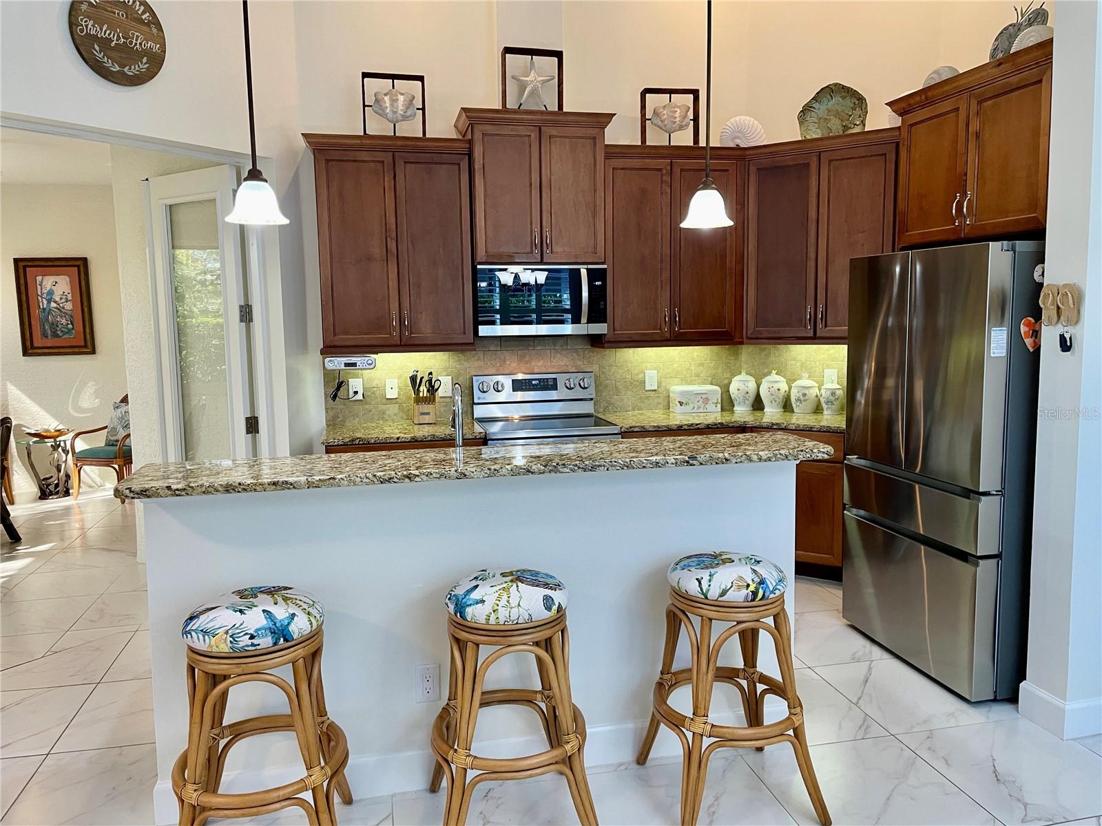 A impressionante unidade final, 3/2/2, 2013 construída, planta dividida, a villa 1471SF está localizada na comunidade fechada, sem manutenção, sem manutenção, villas de Turnberry Trace. Com tetos altos, persianas de plantações e ladrilhos de porcelana grandes por toda parte, mostra como um modelo. The kitchen has 42" tall wood, soft close cabinetry, under cabinet lighting, granite counter tops and new stainless appliances with a breakfast bar/island. The Casual Dining shares the space with the Kitchen and Great Room. Being a corner unit, the many tinted windows to allow soft light into the home. You have access to the enclosed lanai through double doors off of the Kitchen. The Lanai has plexiglass sliding windows along the outside wall, sun shades to help Mantenha a sala, adicione a privacidade e um fã de teto. Para trás. Os contadores de granito e armários combinam em toda a casa. O segundo quarto fica na frente da casa; Ele olha para o quintal da frente e a lagoa da comunidade. O terceiro quarto/covil. Está localizado na entrada da frente, com o quintal lateral. Possui portas duplas, janelas grandes e um armário. Este é um ótimo espaço multiuso. O banheiro de hóspedes, o armário de lavanderia e a garagem estão localizados perto do segundo quarto na frente da casa. O banheiro de hóspedes tem uma banheira/chuveiro com uma cabeça de chuveiro e barras de garagem, é muito espaçosa. Há um armário de linho e um grande armário de armazenamento adicional no corredor indo em direção ao espaço principal. O armário de lavanderia tem acesso através de portas duplas. Existem ventiladores de teto na maioria dos quartos. A garagem de 2 carros é pintada e possui luz natural das janelas na porta aérea. A almofada de acesso à mola da porta e da garagem foi substituída. Há uma garagem de pavimentadora e passarela para a porta da frente. A porta da frente é uma porta de impacto do furacão. A casa também tem persianas de furacões. O aquecedor de água quente foi substituído em 2022. Refrigerador, microondas, alcance e descarte substituídos em 2024. A máquina de lavar louça substituiu 2019. A lavadora e a secadora substituíram 2025. O teto substituiu 2024 de acordo com o proprietário. Os TVs e suportes transmitem com a casa. Alguns móveis estão disponíveis em um contrato separado. Esta é uma comunidade encantadora, com várias atividades e reuniões, um centro de fitness e uma piscina comunitária. Carrinhos de golfe elétricos são permitidos. Ciclos e caminhões motores são permitidos. Esta comunidade está na água e no esgoto da cidade e está na rede elétrica do hospital. Perto de 75, Hwy 41 para facilitar o acesso às viagens, perto de compras, assistência médica, restaurantes, compras em North Port, Veneza, Port Charlotte, Englewood e Down Town Punta Gorda. Passeios, pesca, ciclismo e praias estão a uma curta distância. Venha conferir e se apaixonar!