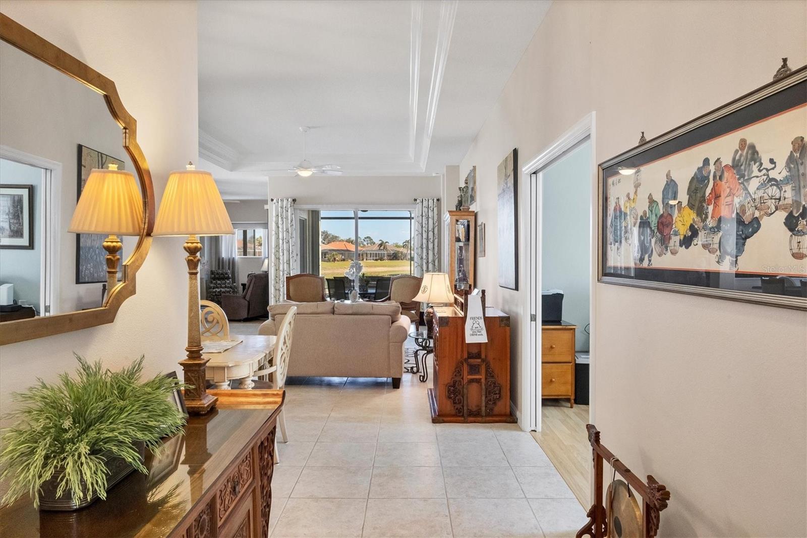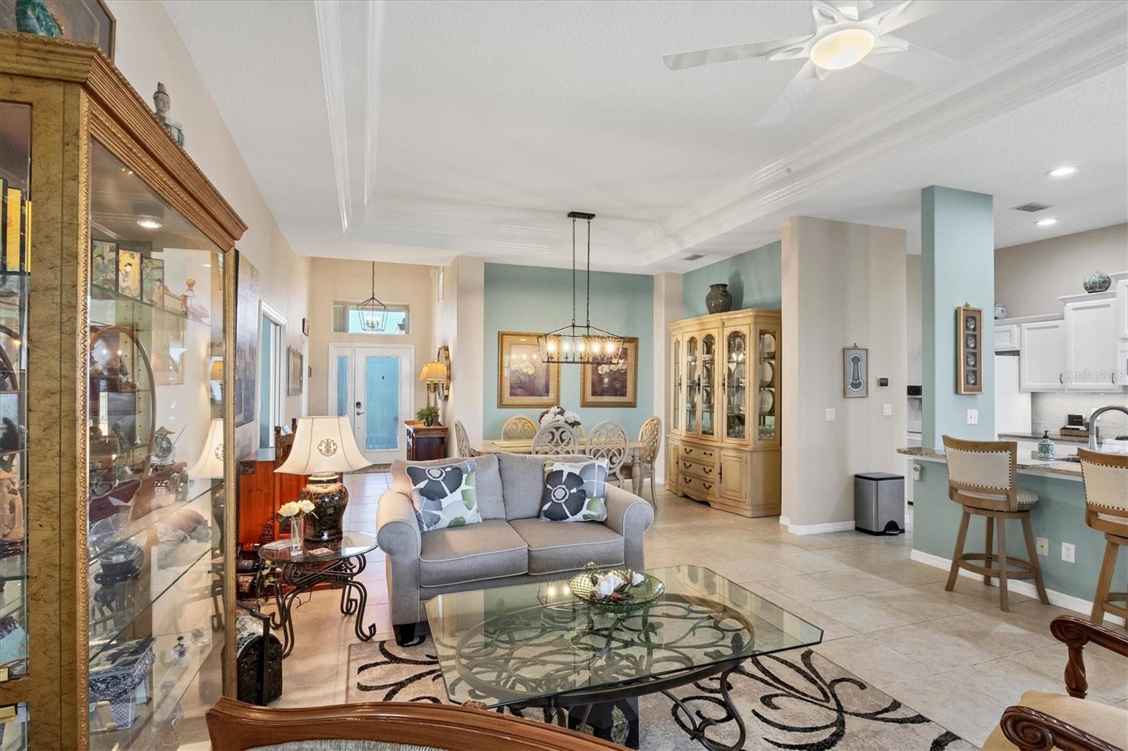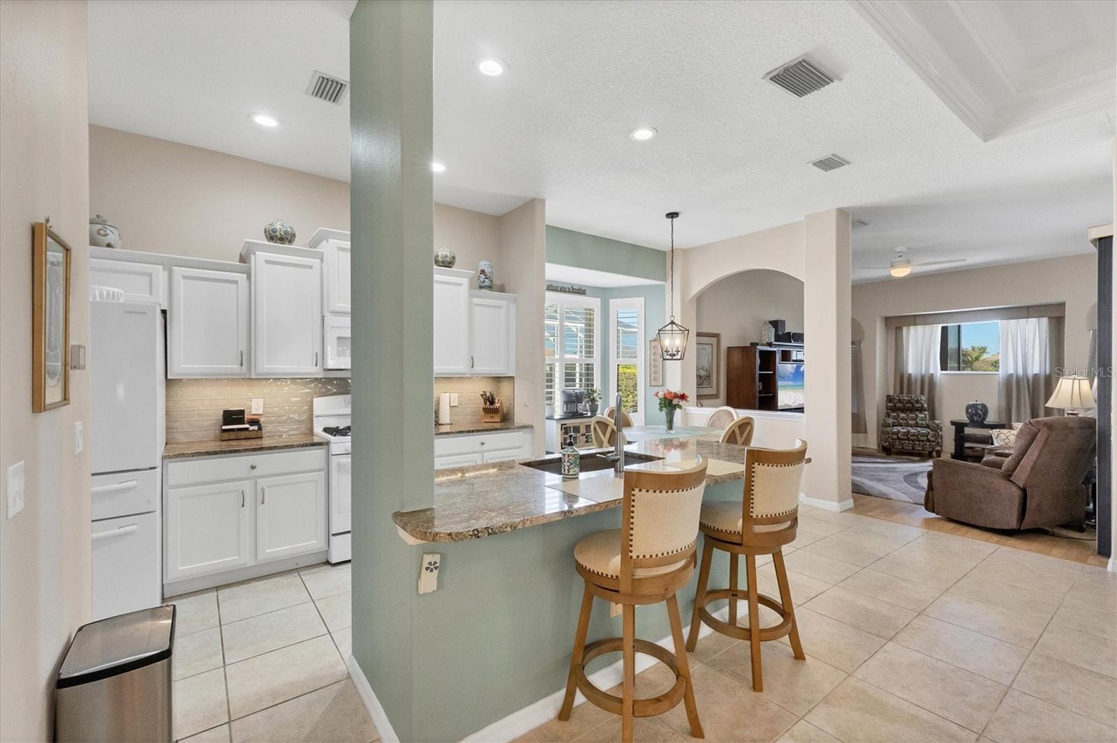 Descubra esta casa lindamente mantida na comunidade fechada de bobcat, oferecendo vistas deslumbrantes do lago e uma planta baixa, cuidadosamente projetada. Esta residência de 2 quartos e dois banheiros também possui um covil versátil, além de uma espaçosa sala de bônus, perfeita para uma sala de família, espaço para hobby ou acomodações adicionais. A sala possui um teto de bandeja dupla com elegante moldagem da coroa, criando uma atmosfera sofisticada e convidativa. A cozinha atualizada oferece lindas bancadas em granito, armários de madeira pintados recentemente, um elegante backsplash de telha, duas despensas e um fogão a gás. Retire-se para o conjunto primário expansivo (27x13), com um grande armário, um armário de linho e dois armários embutidos adicionais para armazenamento abundante. O banheiro privativo oferece pias duplas, um chuveiro generoso e uma banheira de jardim separada para o relaxamento final. O layout de quartos divididos garante a privacidade, com uma espaçosa suíte de convidados escondida para conforto. Aproveite o estilo de vida da Flórida o ano todo na extensa Lanai, onde você pode receber vistas serenas do lago. A propriedade também possui uma garagem ampliada (por 6 pés) para uma conveniência extra. As principais atualizações recentes incluem um novo telhado (dezembro de 2023), novo A/C (2023), aquecedor de água quente (2020) e persianas de acordeão para a paz de espírito. O exterior foi pintado recentemente e os destaques adicionais incluem novas luminárias, novos banheiros, calhas e amplo armazenamento por toda parte. A Bobcat Trail é uma comunidade fechada e principal, localizada centralmente no Porto North. Você estará perto da I-75 para facilitar o deslocamento e a apenas 15 minutos do Downtown Wellen Park e do Atlanta Braves Spring Training Stadium. Desfrute de um dia nas lindas praias do Golfo do México, a apenas 25 minutos da sua porta ou explore campos de golfe próximos, compras locais e restaurantes. O Centro Comunitário Rico de Comodidade oferece uma piscina aquecida durante todo o ano e uma banheira de hidromassagem, quadras de tênis e pickleball, fitness center, biblioteca, clube grande com atividades sociais mensais planejadas para todas as idades! O melhor de tudo é que esta casa não está localizada em uma zona de inundação e possui taxas super baixas de HOA - apenas US $ 218 por mês, o que inclui cuidados com o gramado e manutenção de irrigação! A taxa do CDD está incluída na conta de imposto sobre a propriedade. Venha explorar esta casa hoje e veja se é a casa dos sonhos que você está procurando!