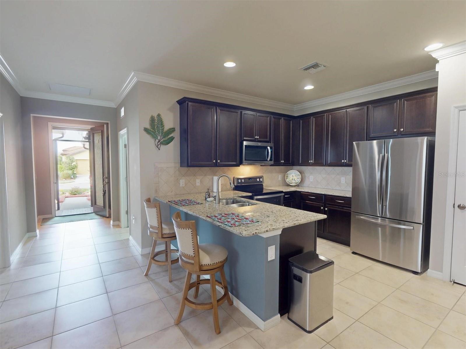 Cypress Falls nunca inundou e não sofreu grandes danos de tempestades/furacões recentes! Bem-vindo a esta encantadora vila de 2 quartos e 2 banheiros com um escritório/covil dedicado, aninhado em uma vibrante comunidade ativa de mais de 55 anos. Esta casa lindamente mantida oferece uma planta baixa convidativa com luz natural abundante, perfeita para relaxamento e divertido. A cozinha é uma delícia de chef, com aparelhos modernos, amplo armazenamento de armários e uma despensa no estilo de armário. Uma barra de café da manhã conveniente conecta perfeitamente a cozinha ao jantar e à sala de estar, criando uma atmosfera acolhedora e convidativa para reuniões. A área de estar é brilhante e arejada, com grandes portas de vidro deslizantes que trazem luz natural e oferecem vistas do quintal pacífico. Desfrute de paz e privacidade sem vizinhos traseiros, permitindo que você aprecie completamente o Lanai estendido - um local perfeito para café da manhã, jantar ao ar livre ou simplesmente relaxando no ambiente sereno. A espaçosa suíte primária apresenta um closet e banheiro de suíte, enquanto o segundo quarto e o banheiro proporcionam conforto para os hóspedes. O Office/Den oferece flexibilidade para trabalhos remotos, hobbies ou um recanto de leitura aconchegante. Localizado em uma comunidade procurada com comodidades de estilo resort, atividades sociais e acesso conveniente a compras, restaurantes e recreação, esta villa é o local ideal para chamar de lar.