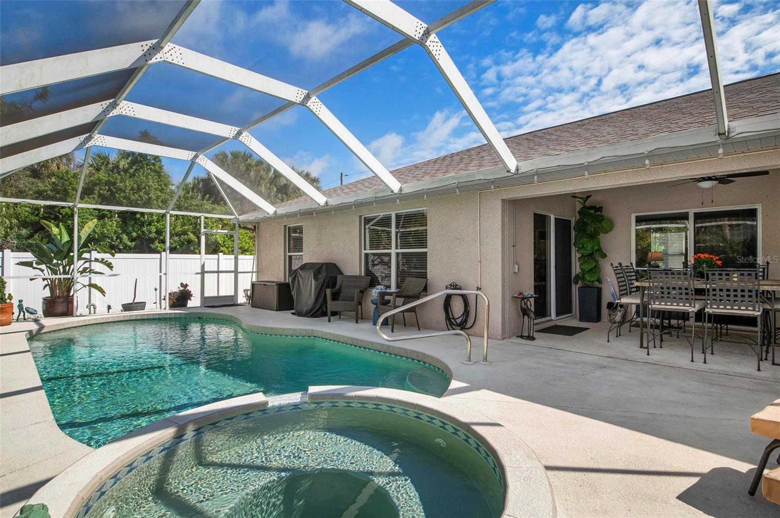Água da cidade de “lote duplo” !!! Deve ver este! Bem-vindo a esta impressionante casa de 3 quartos e 2 banheiros, perfeitamente situada em um lote de grandes dimensões, com lote incluído ao lado e longa calçada espaçosa, proporcionando privacidade inigualável e espaço extra. Desfrute da Flórida que vive no seu melhor com uma piscina aquecida e spa, fechada em uma gaiola de piscina e um lanchones, ideal para relaxamento e entretenimento durante todo o ano. Uma nova bomba de piscina garante manutenção sem complicações, enquanto o sistema de segurança incluído e o telhado mais recente (2022) fornecem tranquilidade. No interior, você encontrará um interior atualizado com bom gosto, com acabamentos modernos, incluindo o raro Cambria Quartz - bancadas Blue Skye na cozinha, um banheiro atualizado de Jack & Jill e a opção de ser negociado móvel parcial. A garagem possui piso epóxi e armazenamento conveniente, enquanto a lavanderia convertida foi atenciosa em uma grande despensa com armários que transmitem com a casa. O expansivo quintal cercado é um paraíso tropical, mostrando árvores frutíferas cuidadosamente mantidas, oliveiras e plantas vibrantes-o espaço perfeito para diversão ao ar livre ou retiros pacíficos. Com a água da cidade e um layout projetado para conforto e conveniência, esta casa está realmente pronta. Oportunidades como essa são raras - não perca a chance de possuir um oásis privado com espaço para crescer! Agende sua turnê privada hoje! Perto de I 75 e US 41, ótima localização!
